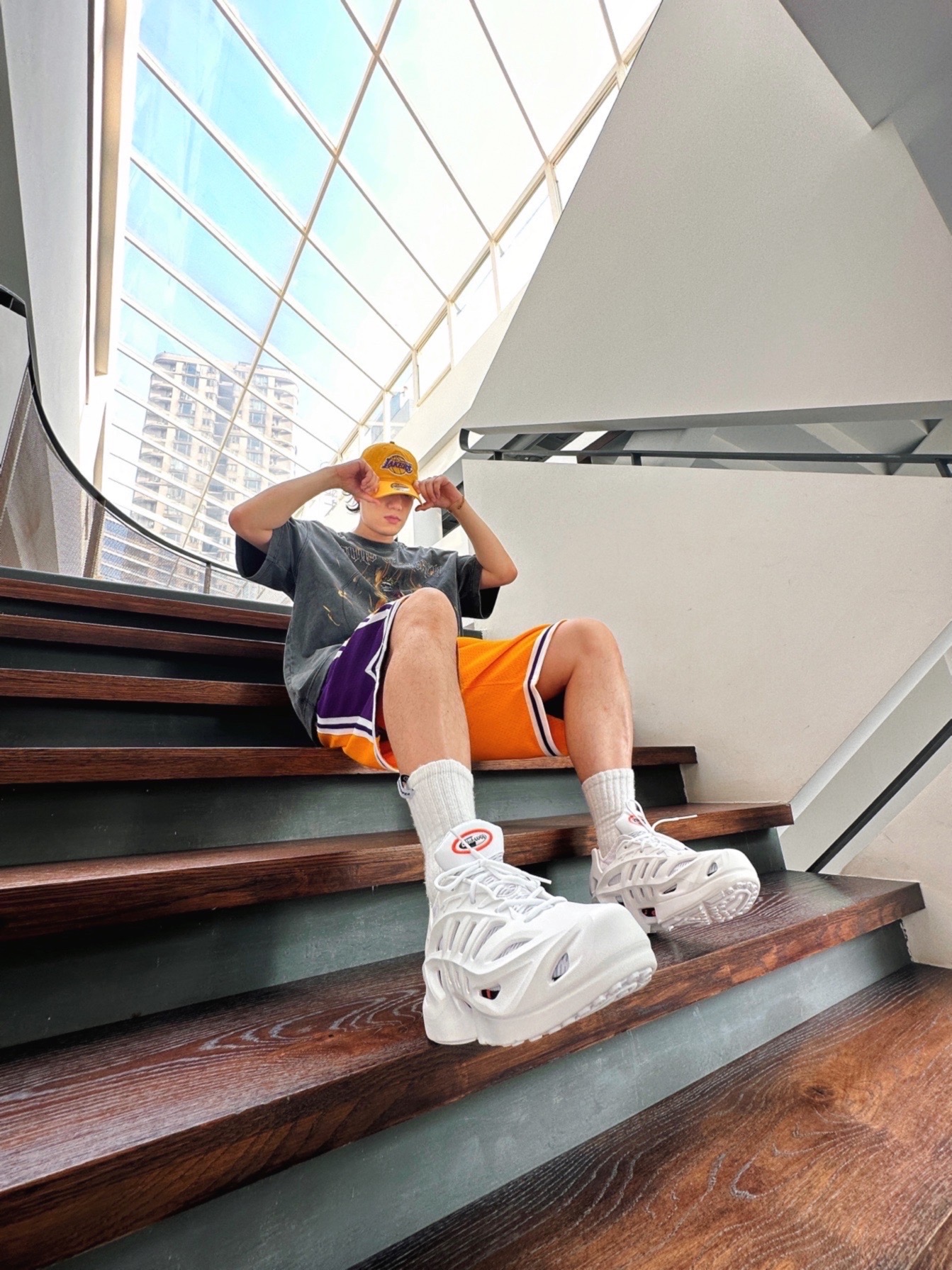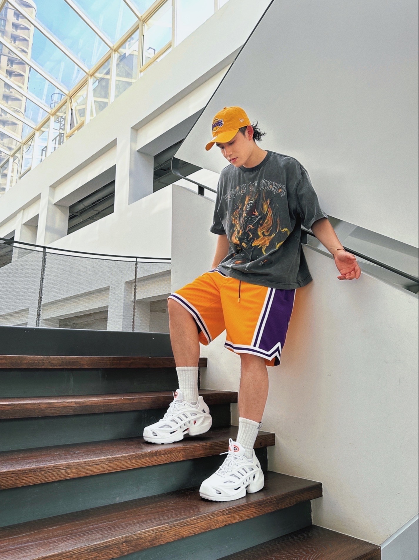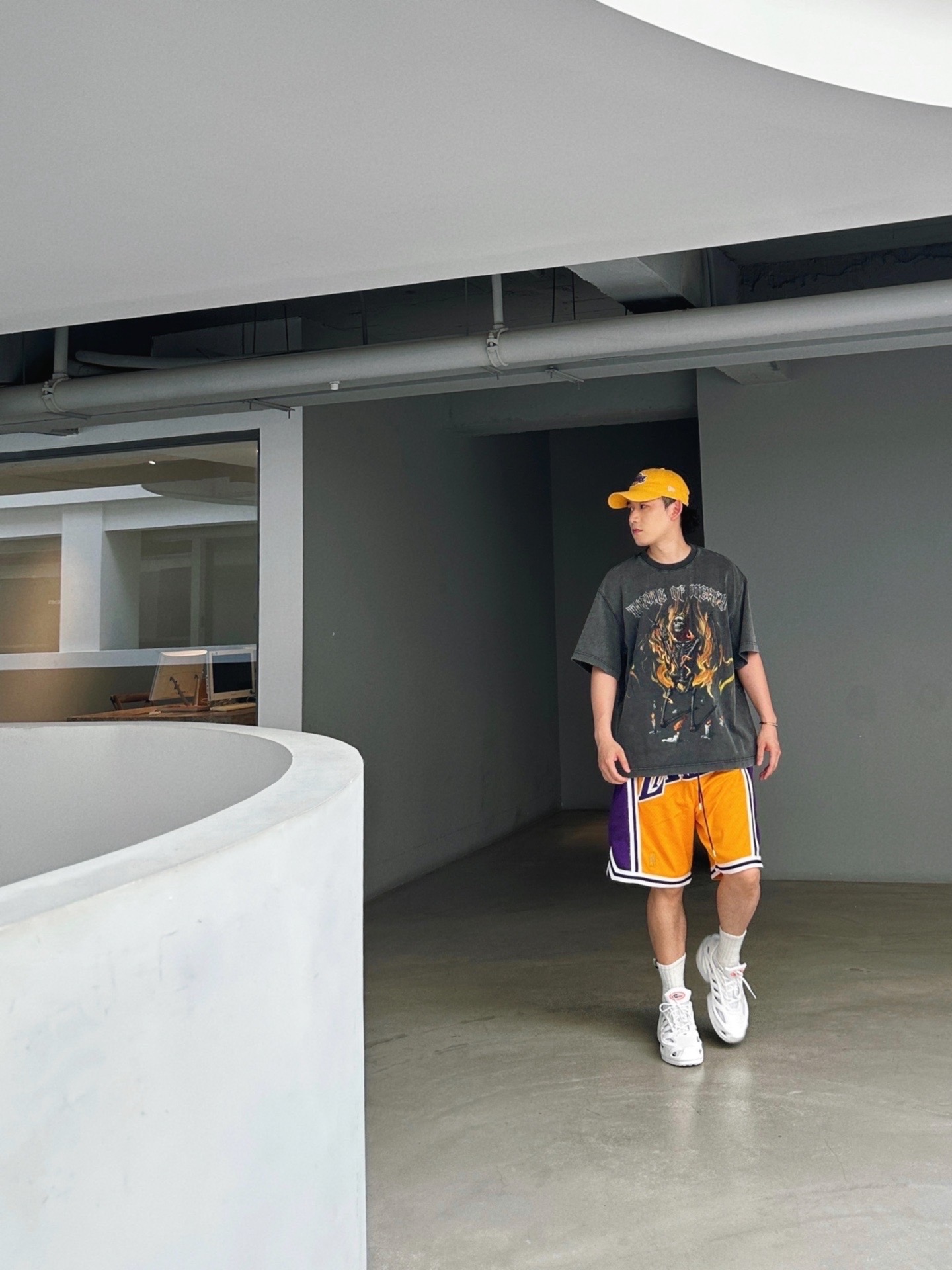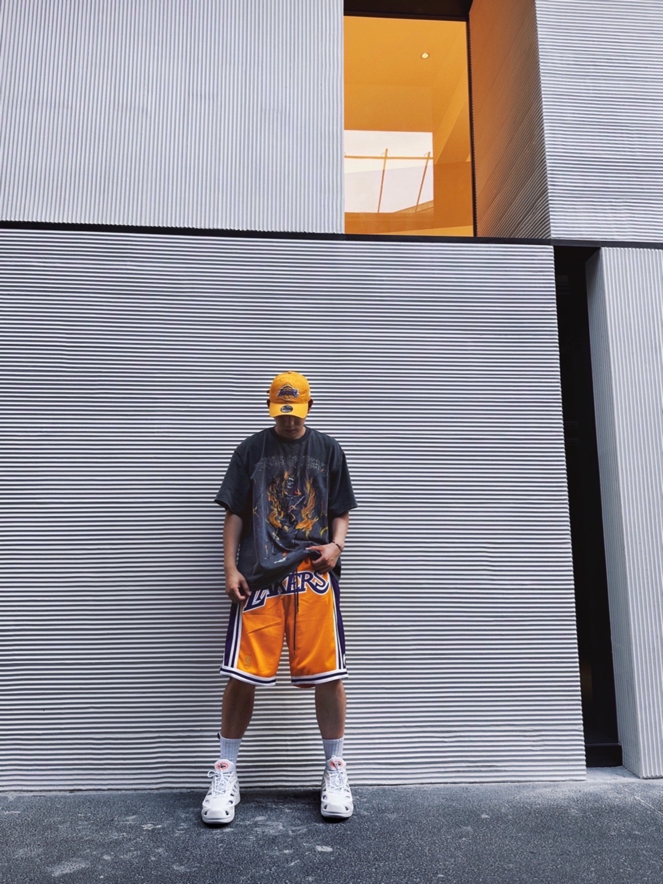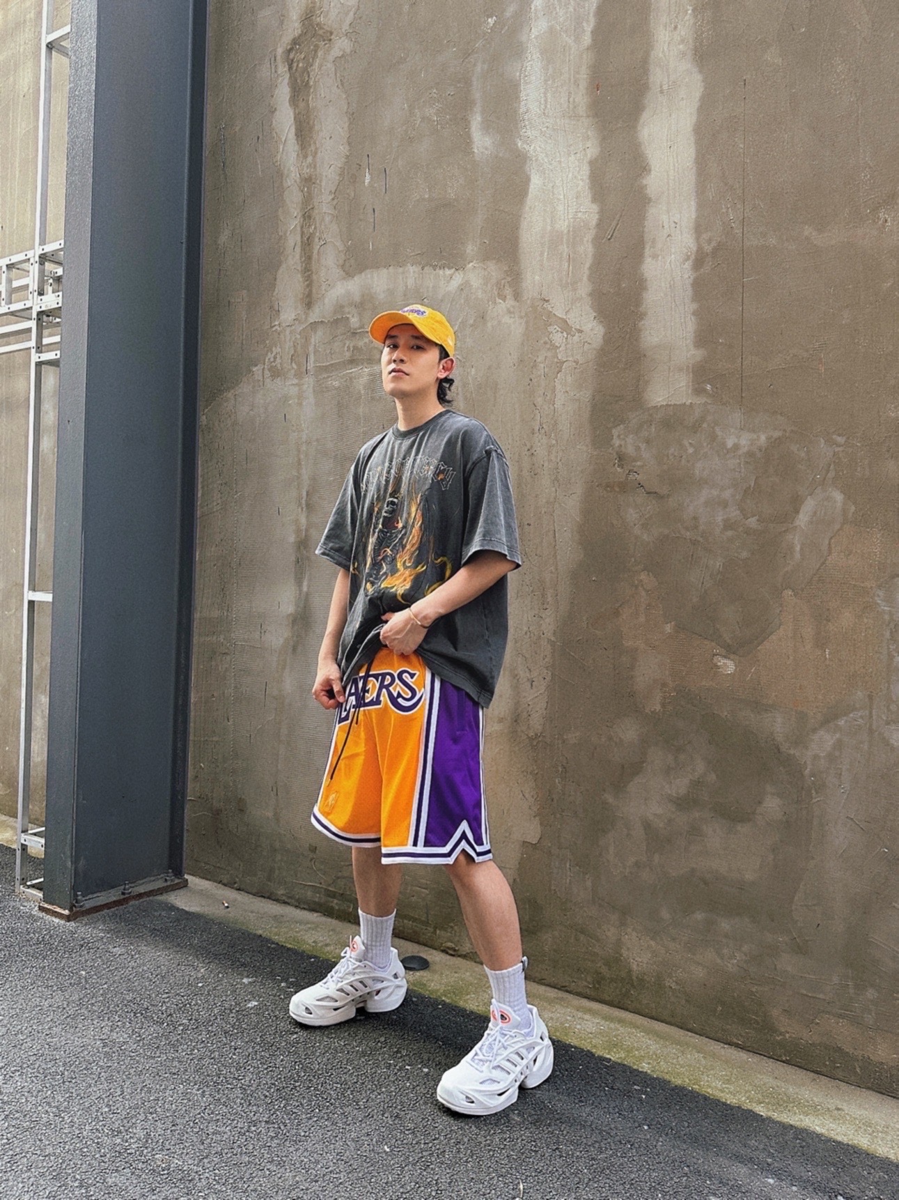 大夏天来了,NBA元素的美式街头风又可以大穿特穿了🔥 我知道很多兄弟们都喜欢,但可能不对味,其实很简单,拿捏几点,马上搞定造型✌🏼 1. 选一条足够质感的NBA球队短裤. Just Don的湖人主场配色,必眼选~夏季美式街头造型亮点,配什么都好看的那种🔥虽然价格有点高,但一劳永逸,属于街头单品了不只是运动,所以一般球裤质感真比不了👍🏼 2.一件水洗图案T恤. 灰色水洗T,配球裤,就像薯条配番...