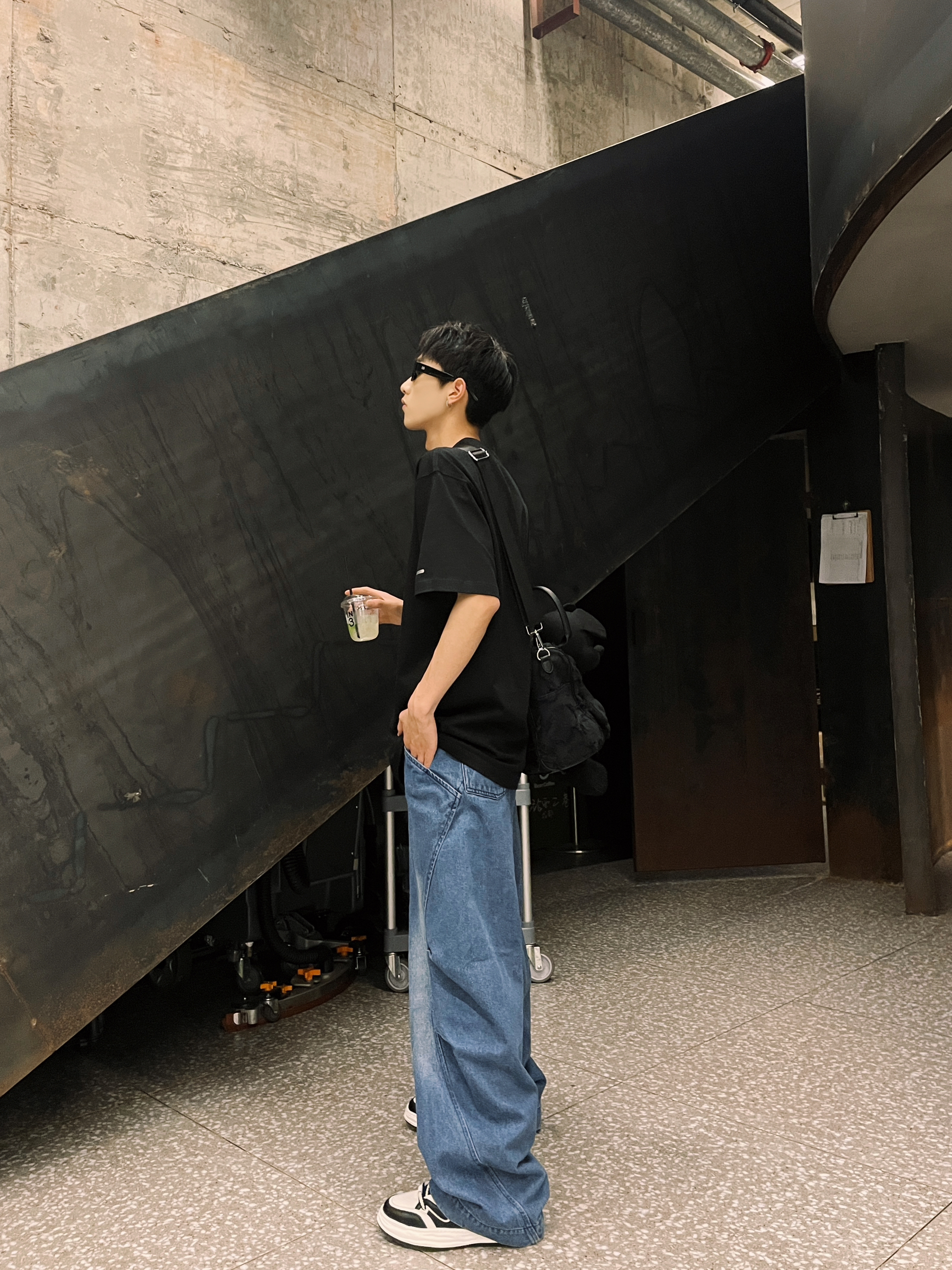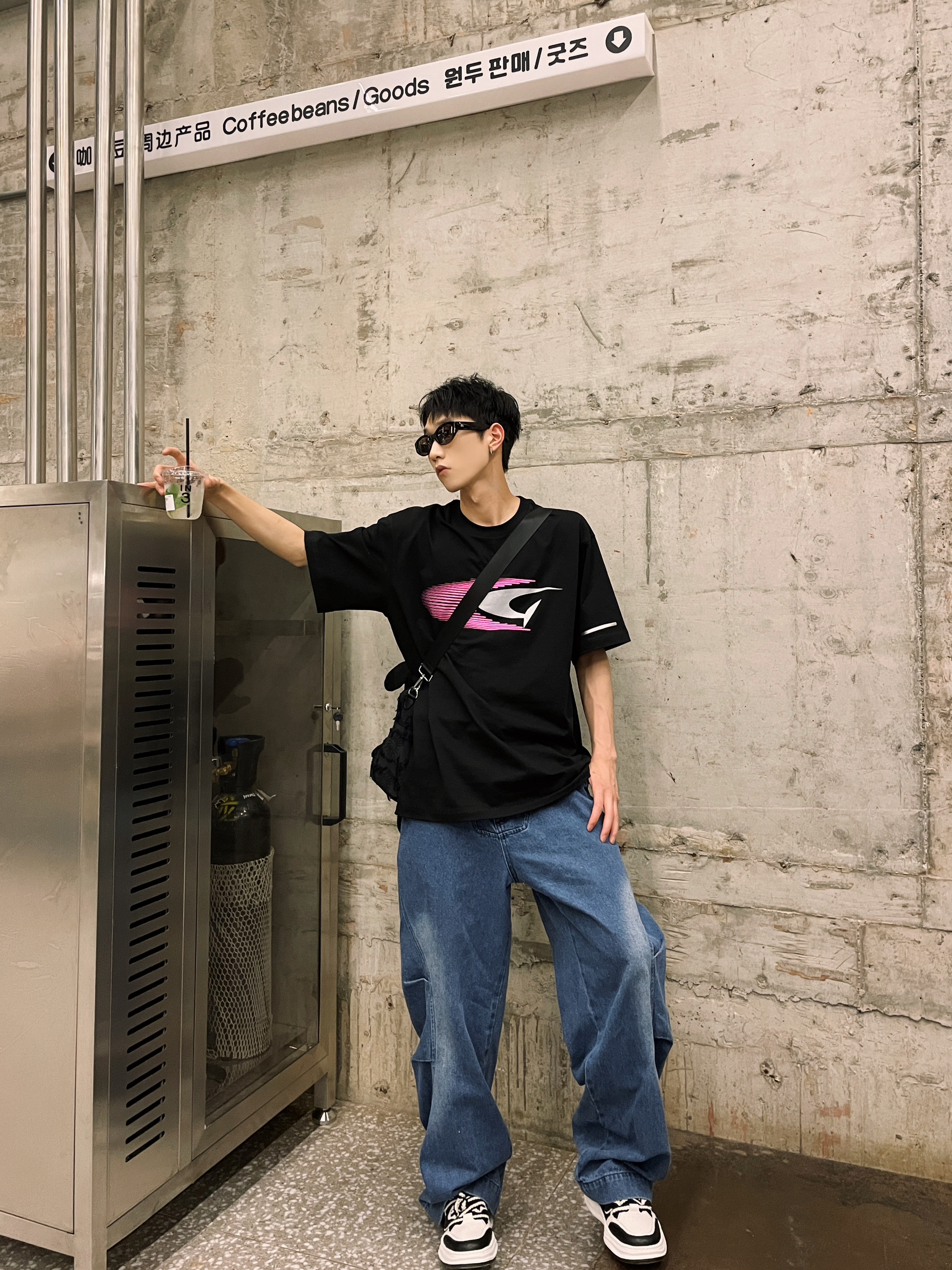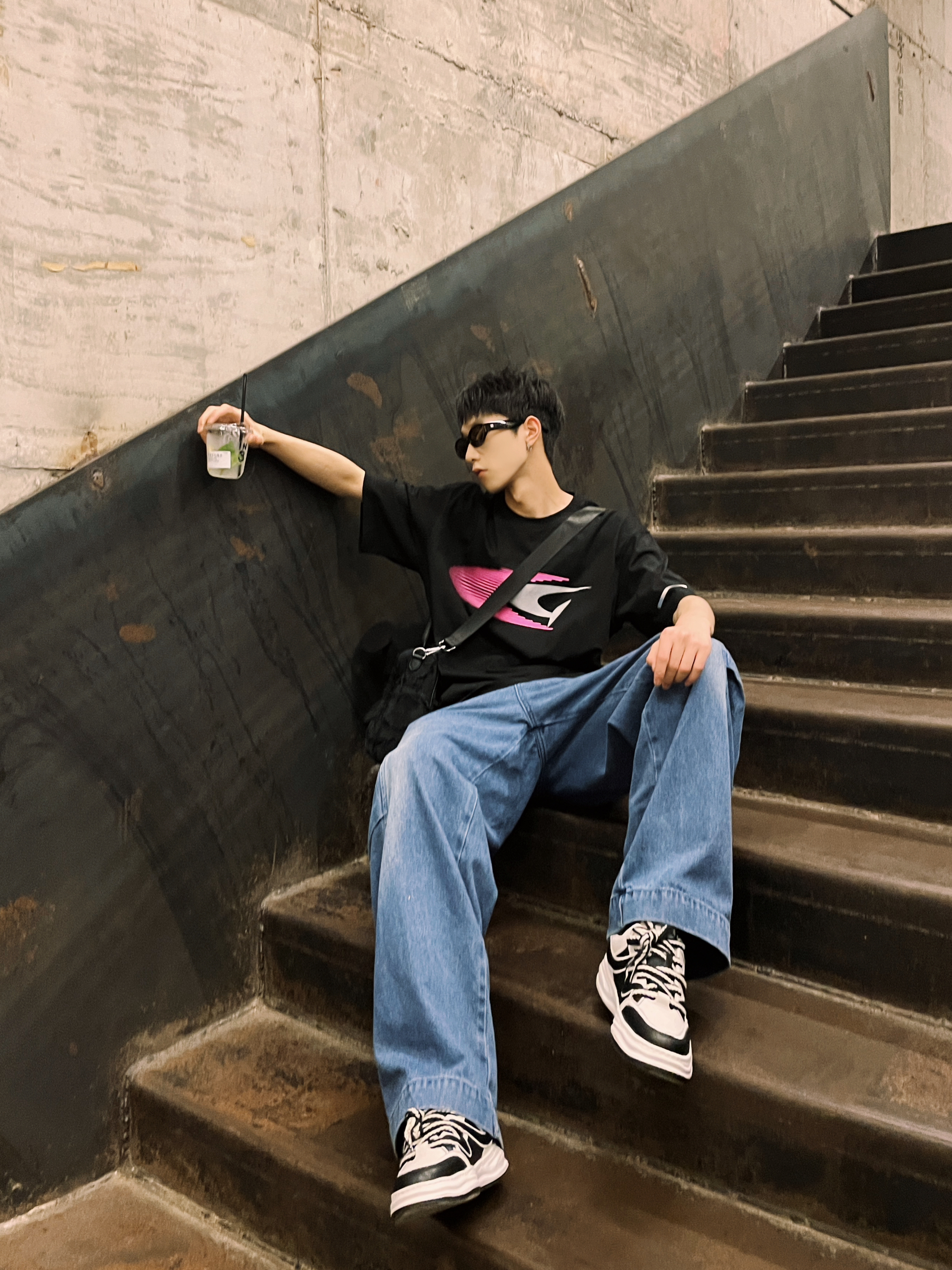 会穿搭的男孩子👦真的加分! 今天分享一套简约搭配 任何男孩子都可随便get 黑色短丁在夏天来说真的不能少 搭配宽松牛仔裤👖街头味十足🛹 百搭小白鞋肯定是不能少的咯 相当于纯白来说 它没有那么单调 黑白的配色百搭又休闲 这不就是夏天的简约搭配了吗