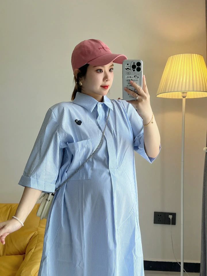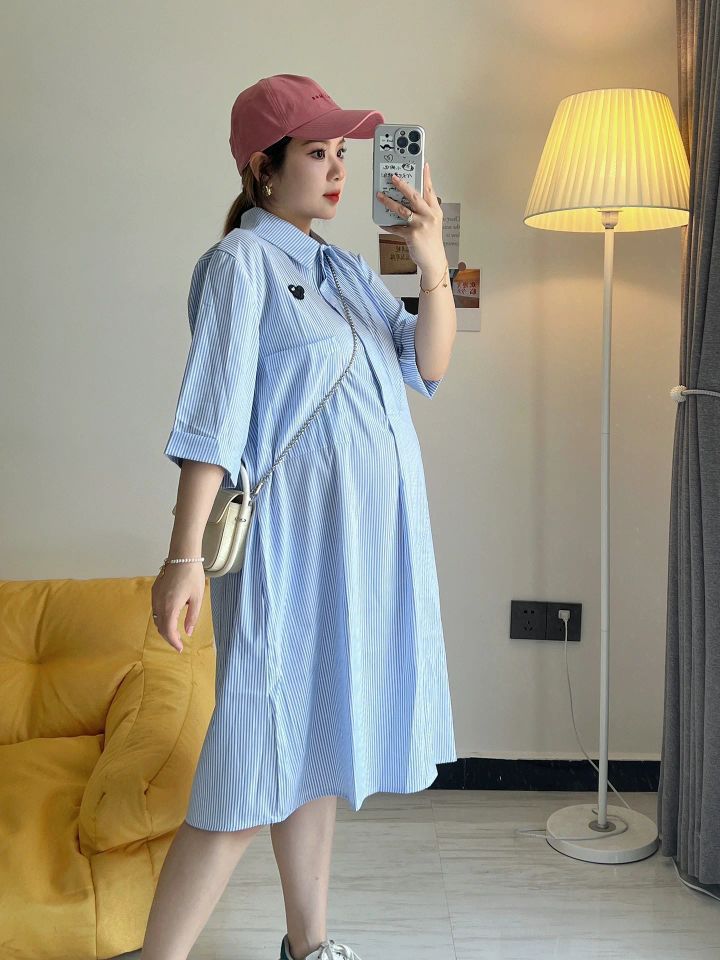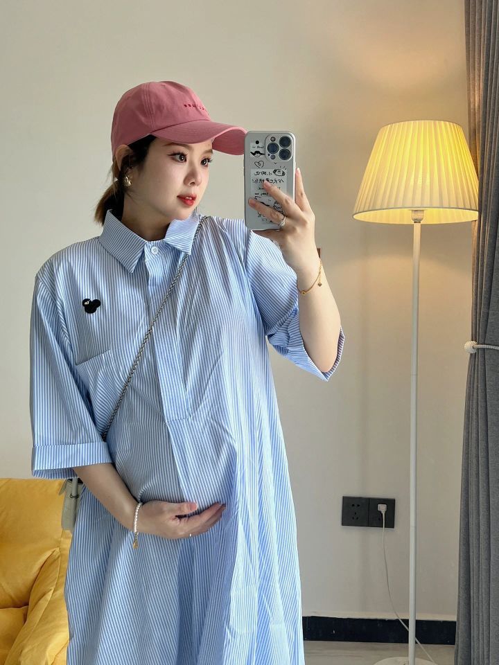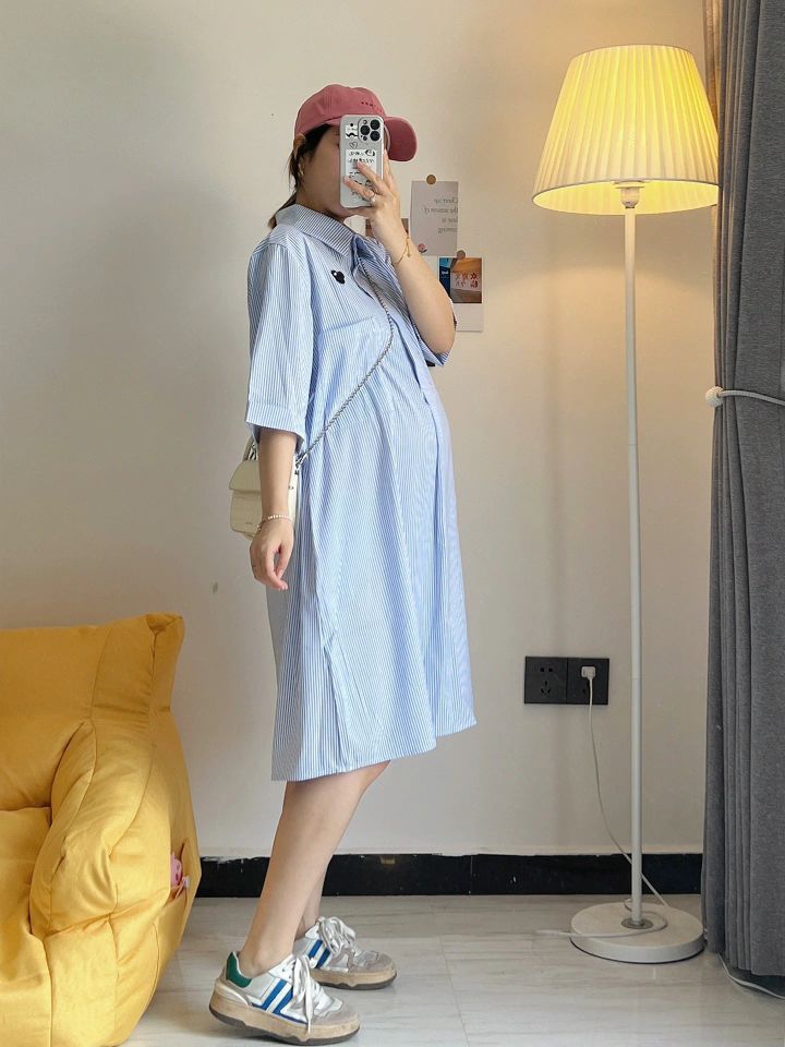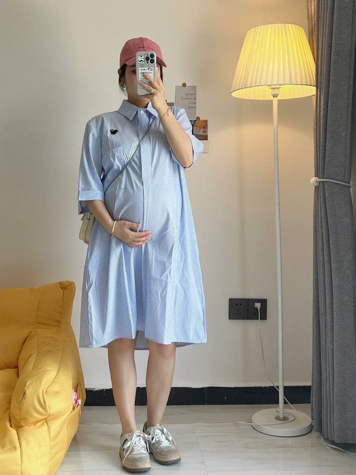 简简单单的衬衫裙穿起来好清爽 宽松版型,多大的肚子都OK 怀孕以后的裙子真的都好好看