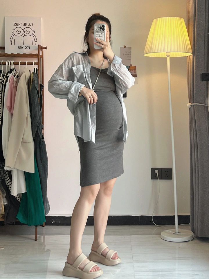 今天也是炫腹的一天 为夏天准备的小裙子~ 不像孕妇装的孕妇装