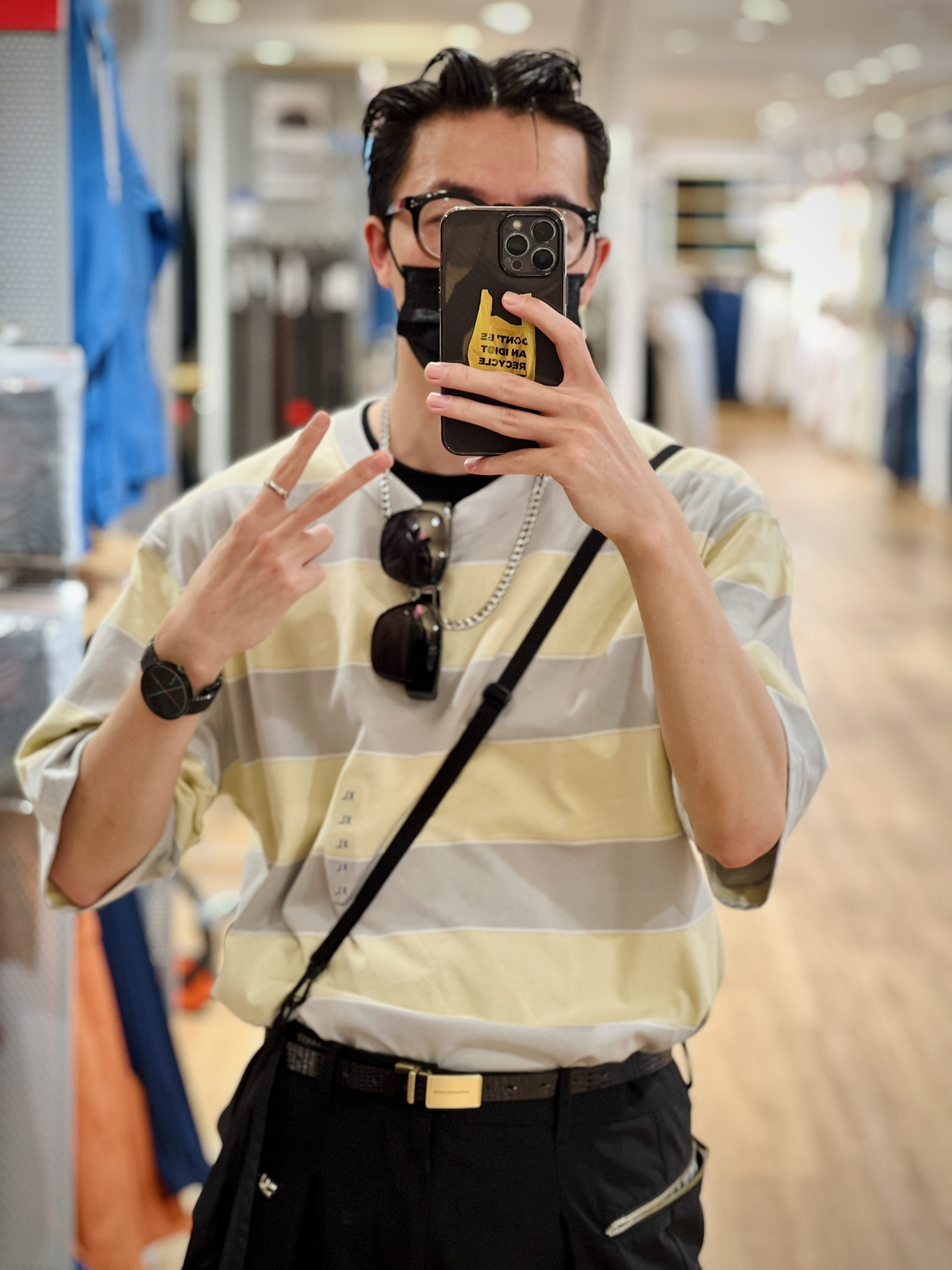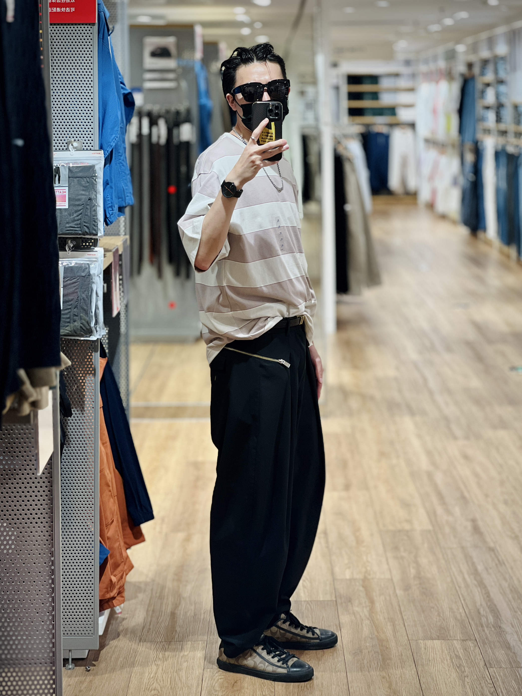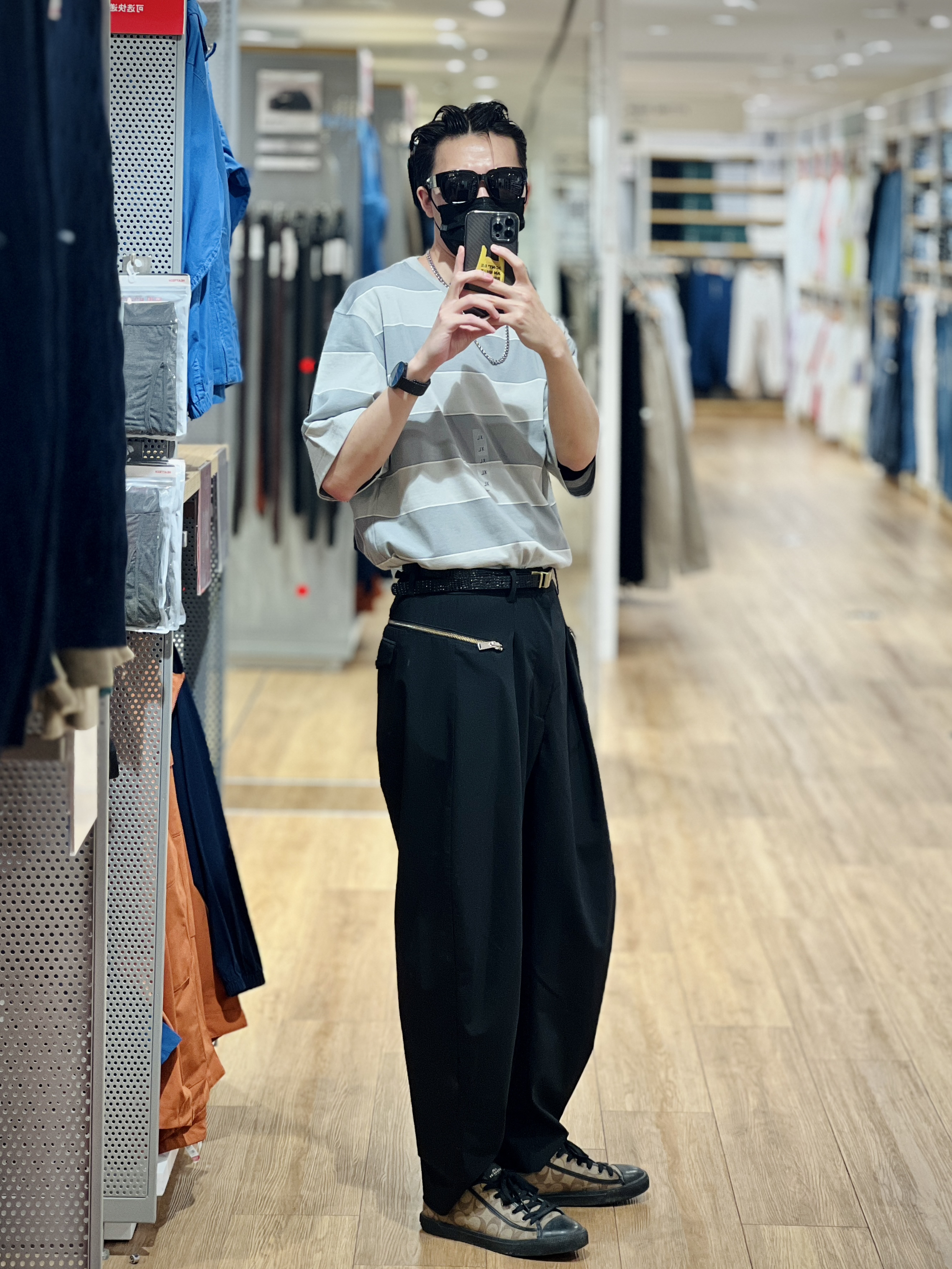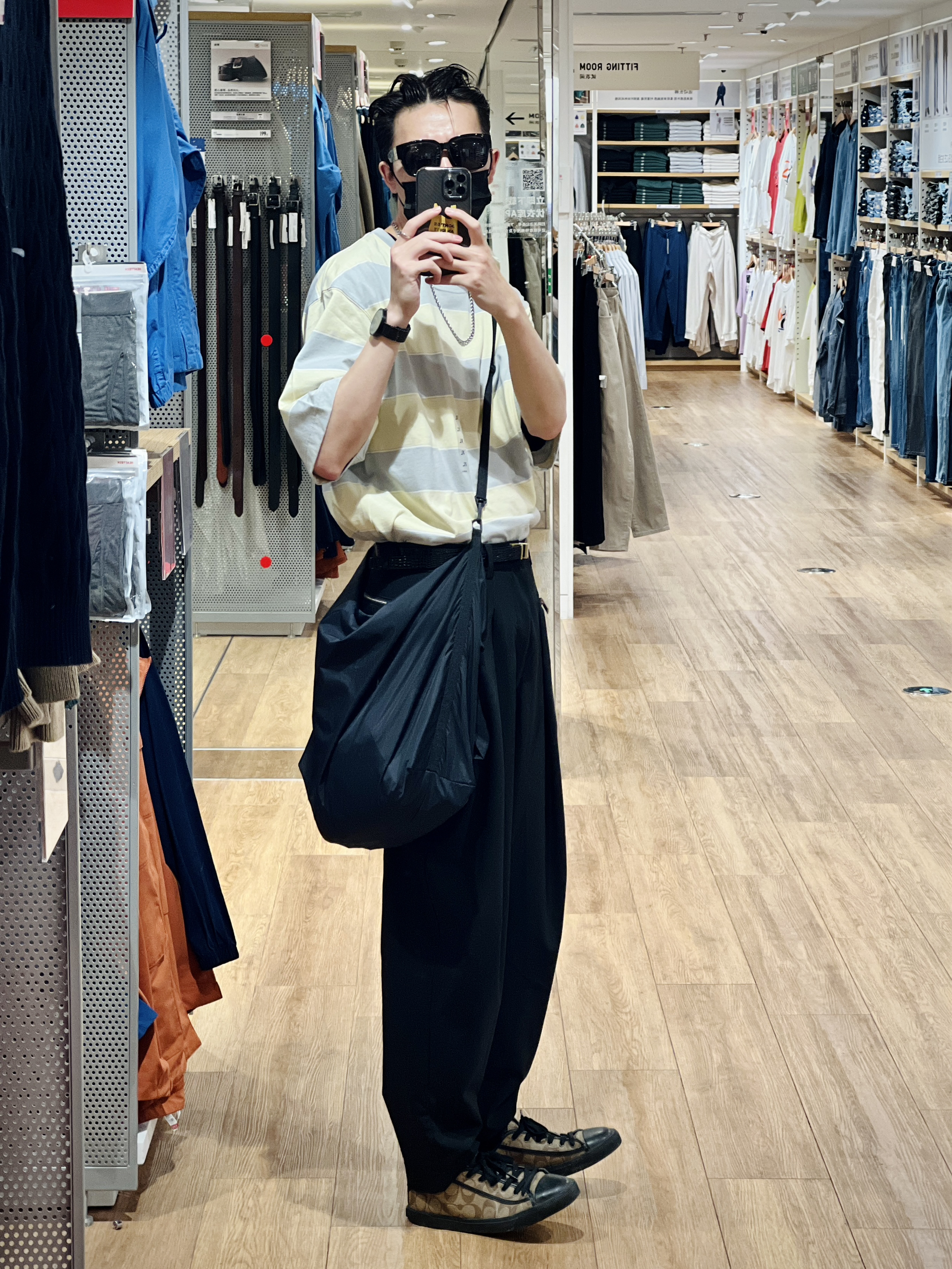 这U系列的条纹T恤 上身比挂着好看太多了 粉丝、灰色、黄色三种颜色 版型宽松略微oversize 搭配黑色休闲裤就很好看 关键79好要什么自行车🚴♂️ 实在想等59也不是不可以 哈哈哈哈 👦🏻:180/65 👕:457714 XL