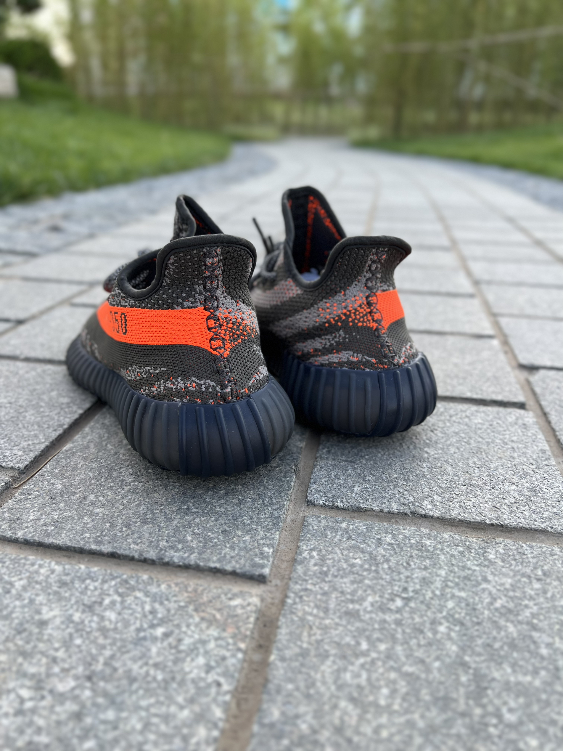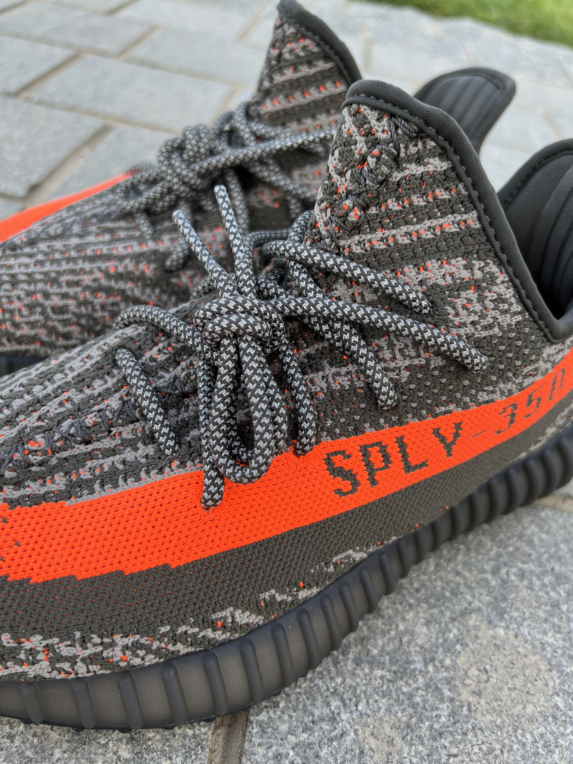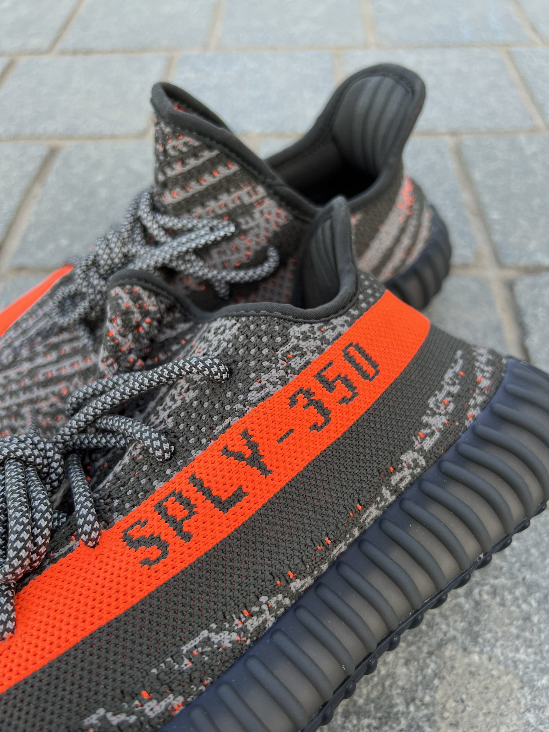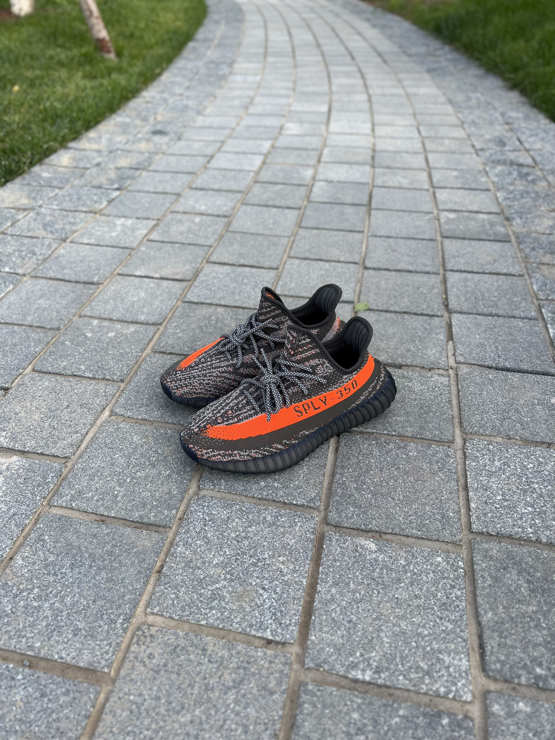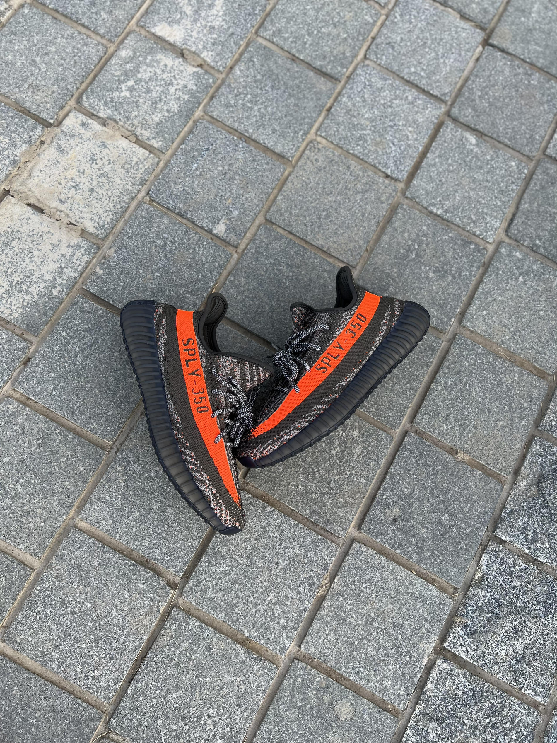 Yeezy的灰橙系列也来到了3.0 相较于前两代这次的3.0网评倒是没有之前的那么火!不过我拿到实物还是令我非常心动的,来和大家简单聊一聊~ 首先鞋子的颜色和图片看起来有一点色差,拿到手里没有那么偏土黄,而是略带一点水泥灰的感觉!整个鞋身的材质依旧是编织布料制成的!侧面的漆条图案相当吸睛!鞋带也是带有夜光效果的,晚上出街更加安全可靠!总的来说这颜值我还是非常喜欢滴~