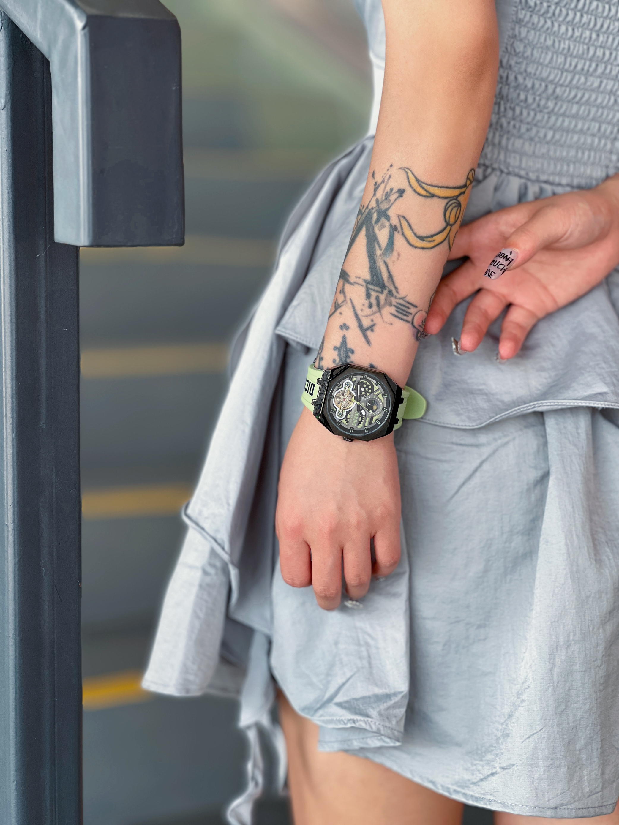 💎💎没错!是你们的婷哥没错啦~ 日常生活不可缺的仪式感 天气好的时候 穿上小裙子👗去感受夏天的美好吧! 今天是baby blue色系,很乖又很甜 搭配了 酷酷的手表⌚️与众不同才能更出挑 Dickies 日月星象 镂空机械表,超酷的配色 加上大大的镂空表盘⌚️适合夏日作为日常百搭的单品,送礼物🎁男生一定会很爱,不过女生戴也很酷哦!