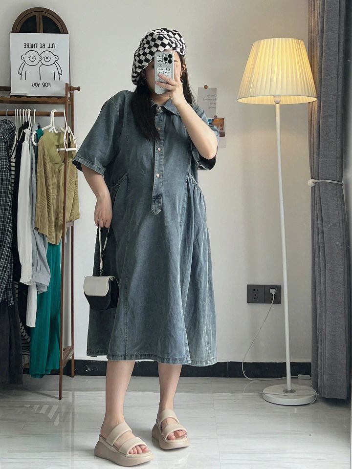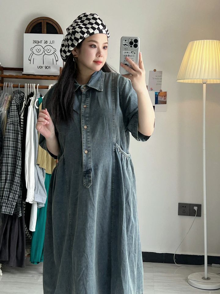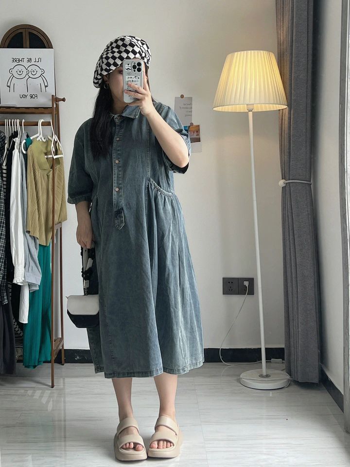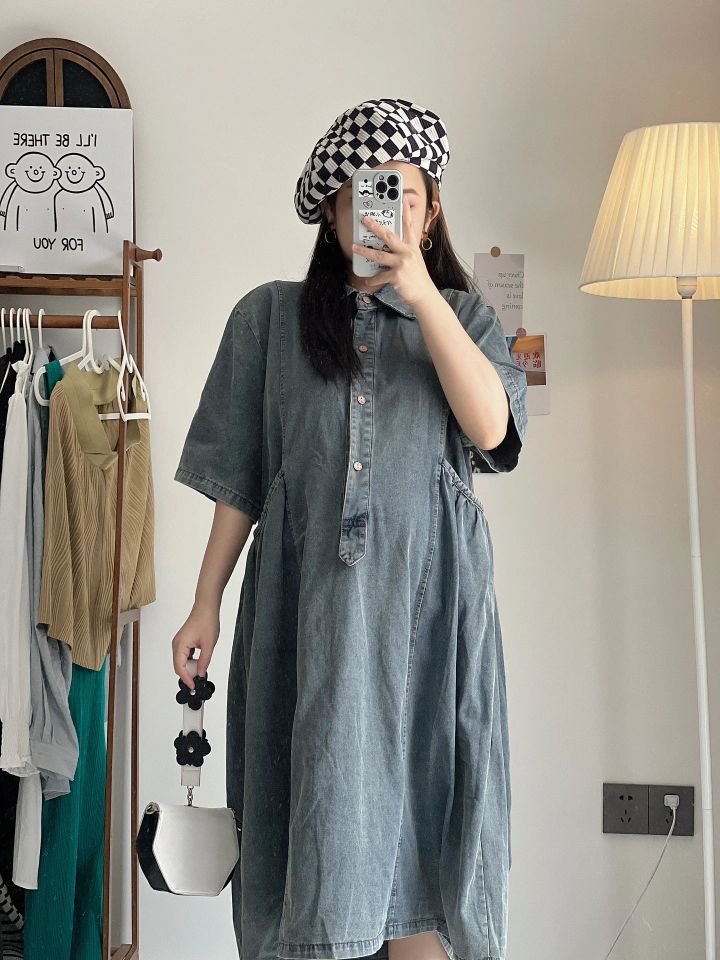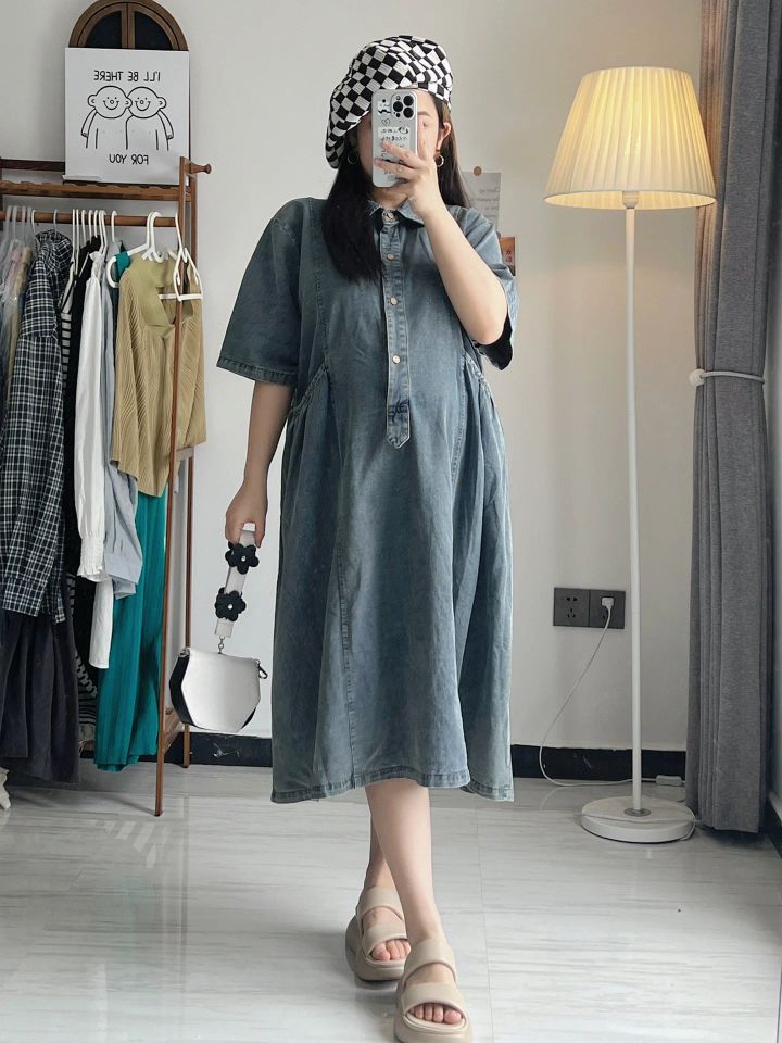 牛仔长裙泰酷啦~孕期也偏爱穿长裙 很方便也不会勒肚子