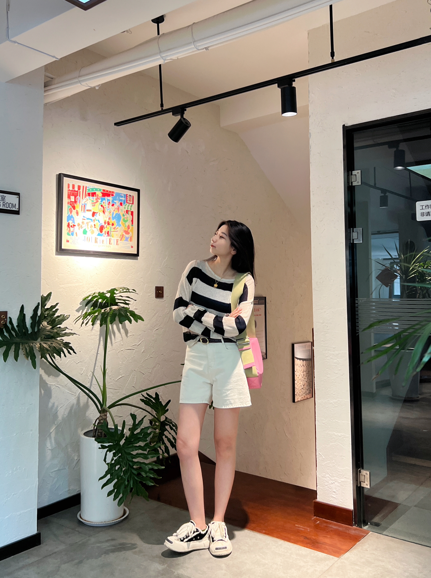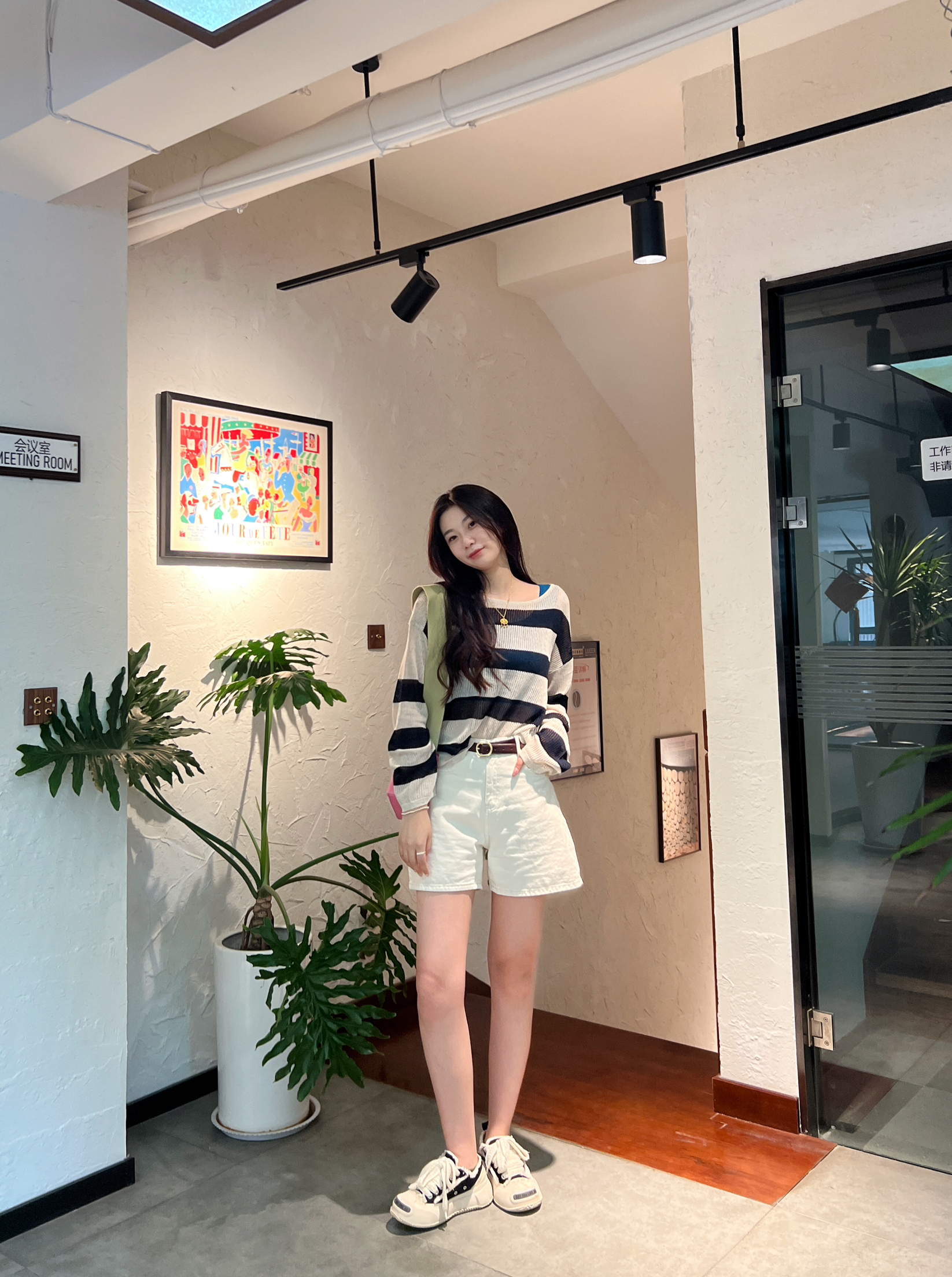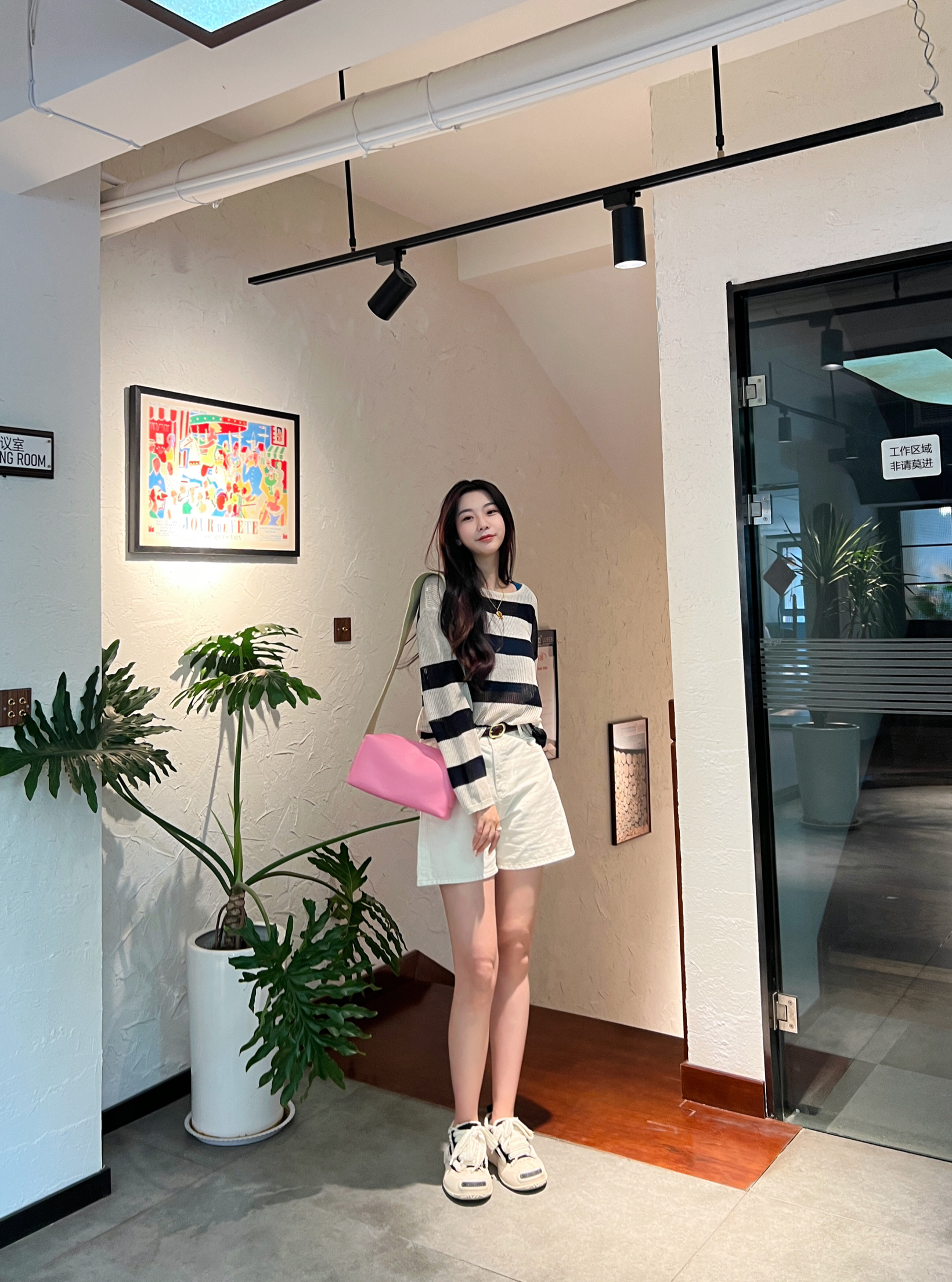Hello 是万万呀 夏天缺少不了防晒呀 条纹T恤颜值又高又可以防晒 搭配短裤 泰裤辣 学起来呀姐妹们 太喜欢这种穿搭啦 显瘦极高!