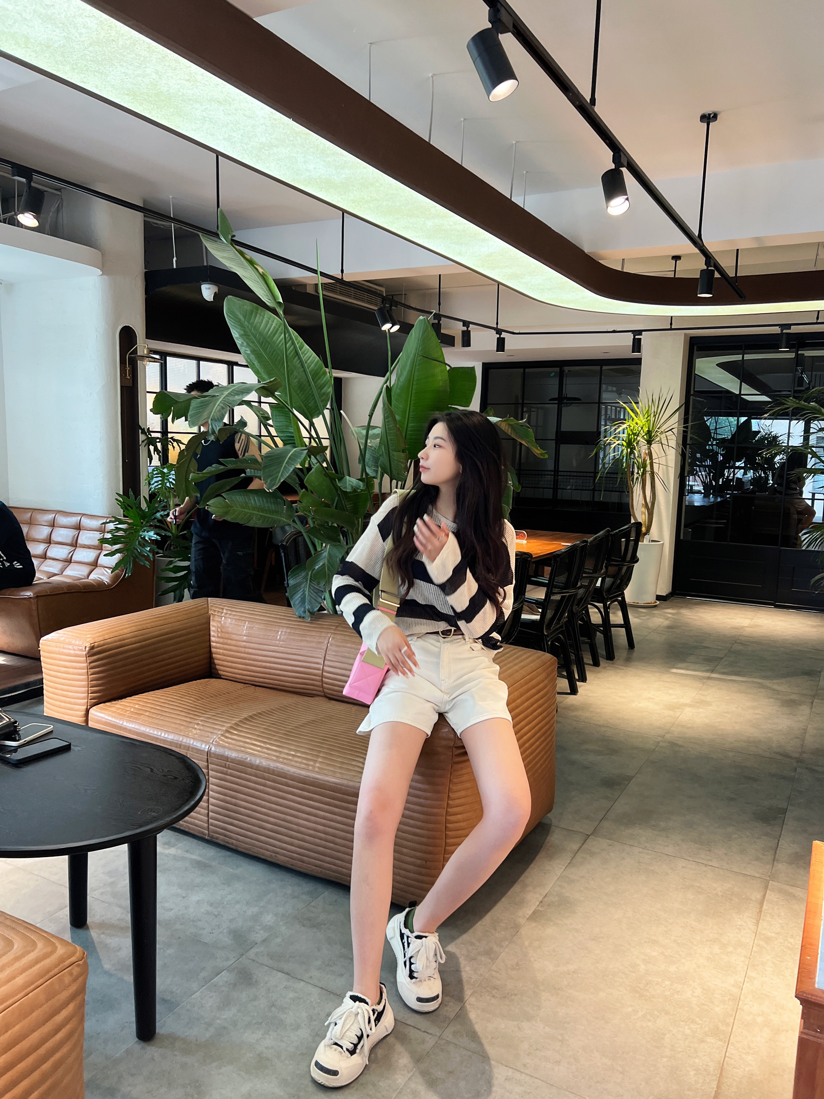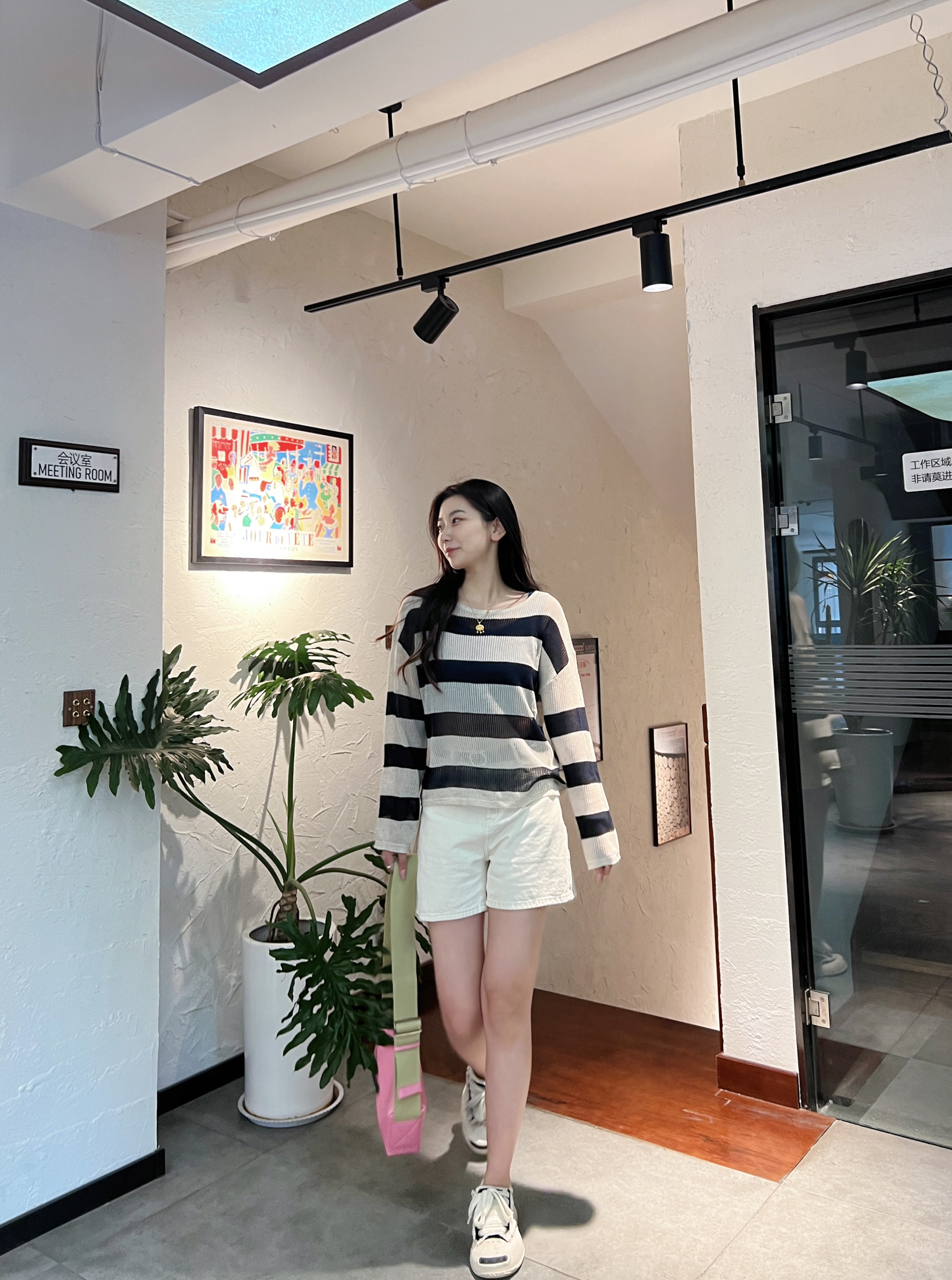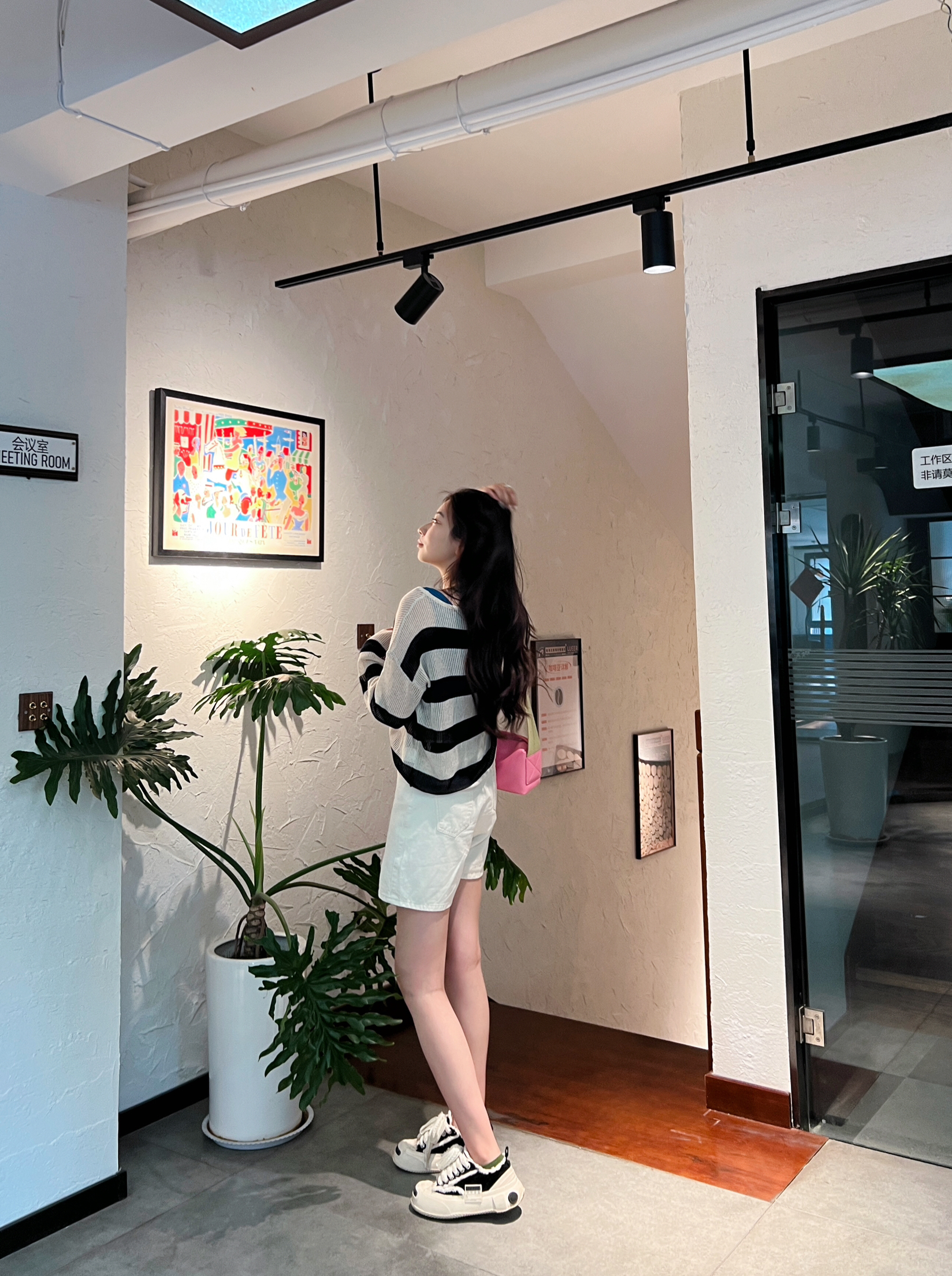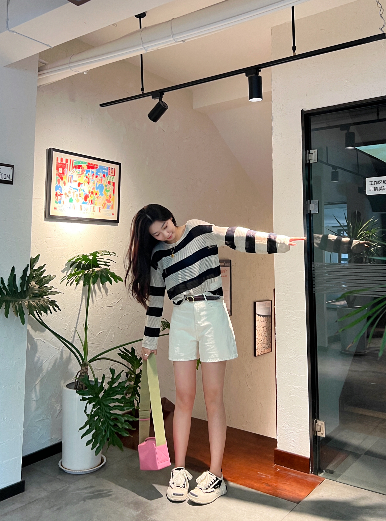 Hello 是万万呀 夏天缺少不了防晒呀 条纹T恤颜值又高又可以防晒 搭配短裤 泰裤辣 学起来呀姐妹们 太喜欢这种穿搭啦 显瘦极高!