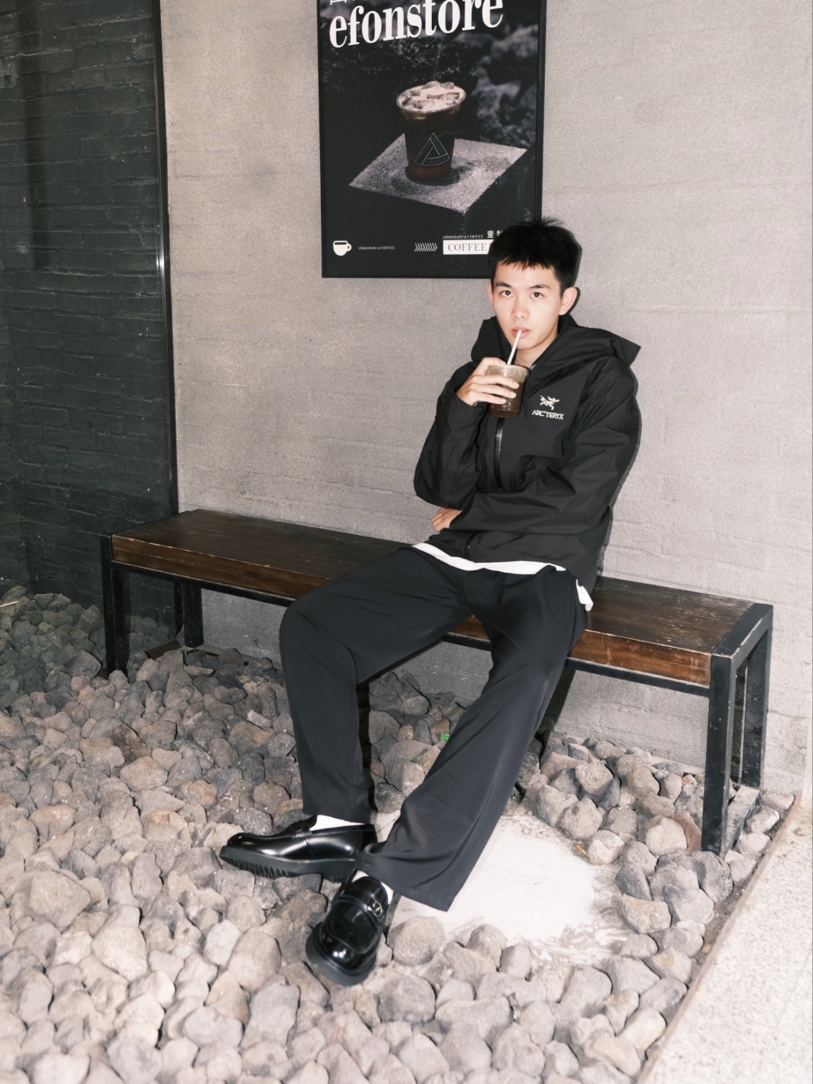 黑色永远是不败经典,黑色冲锋衣、黑色长裤、黑色彭都乐福皮鞋,简单的三种单品组合却能穿出男生的帅气与干练。 冲锋衣的设计感十足,搭配黑色长裤不仅不显臃肿,反而更显精干利落。而鞋子的选取更是起到了画龙点睛的作用,彭都乐福皮鞋的金属扣细节,不仅展现了细节的把控力,也与冲锋衣的金属拉链相互呼应。 这样一套简单干练的穿搭,适合各种场合,既能穿出高端时尚感,也能穿出悠闲休闲的feel。不得不说,黑色真的够...