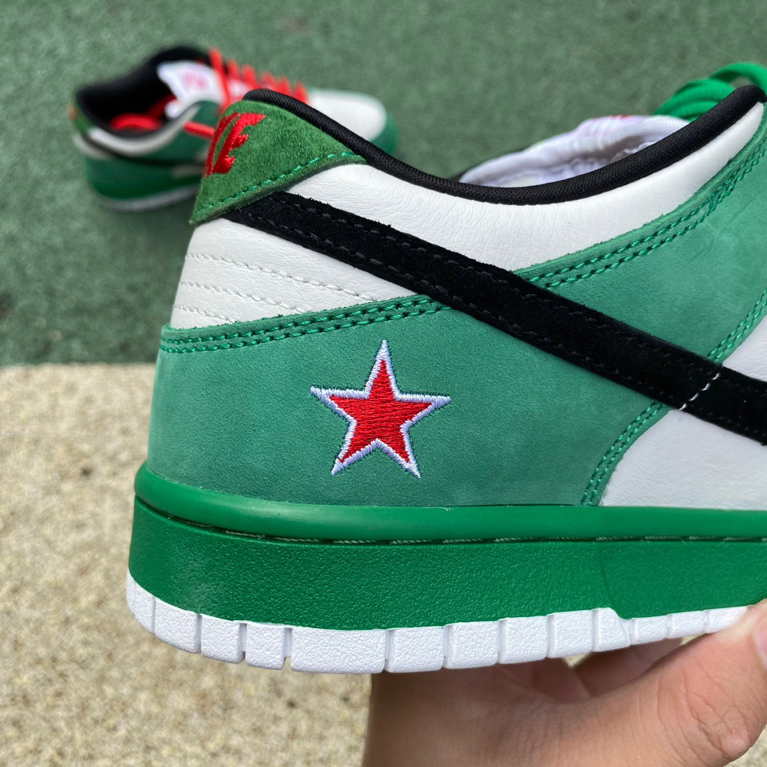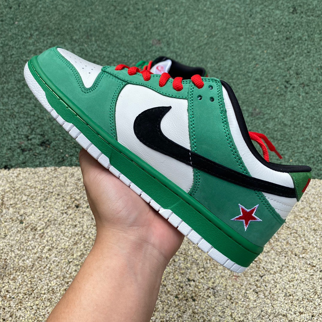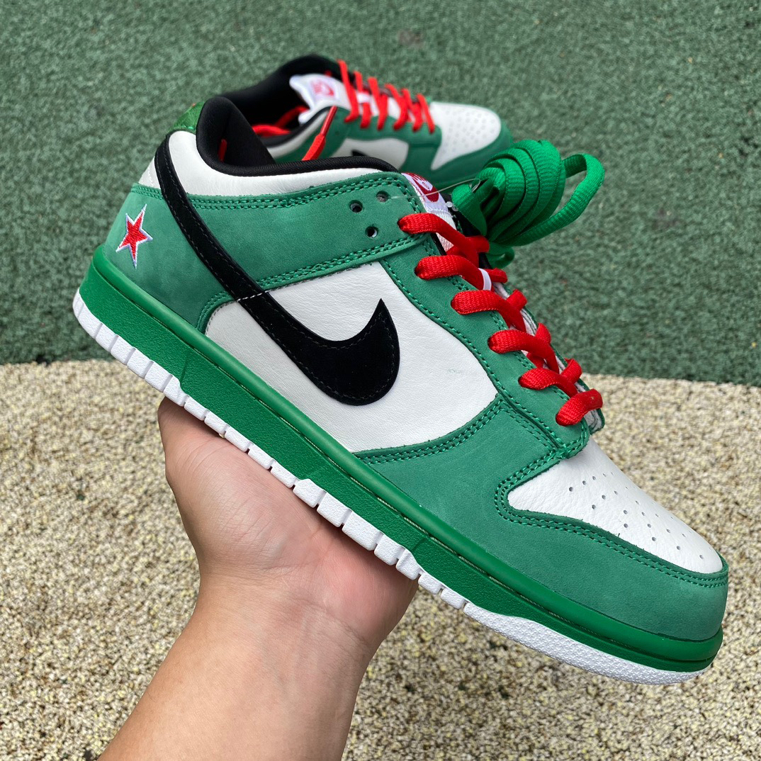 耐克SB dunk 喜力 这双俗称喜力的dunk灵感来源于喜力啤酒超 级特别穿上街完全不会有撞鞋滴尴尬!这个绿 太好看了!搭短裤绝!搭阔腿裤也!特别滴好看! 非常的nice~ 话说啥时候出红星二锅头dunk,爱喝酒的我 肯定会整一双的~ 鞋款名称 Nike Dunk SB Low Heineken 喜力绿