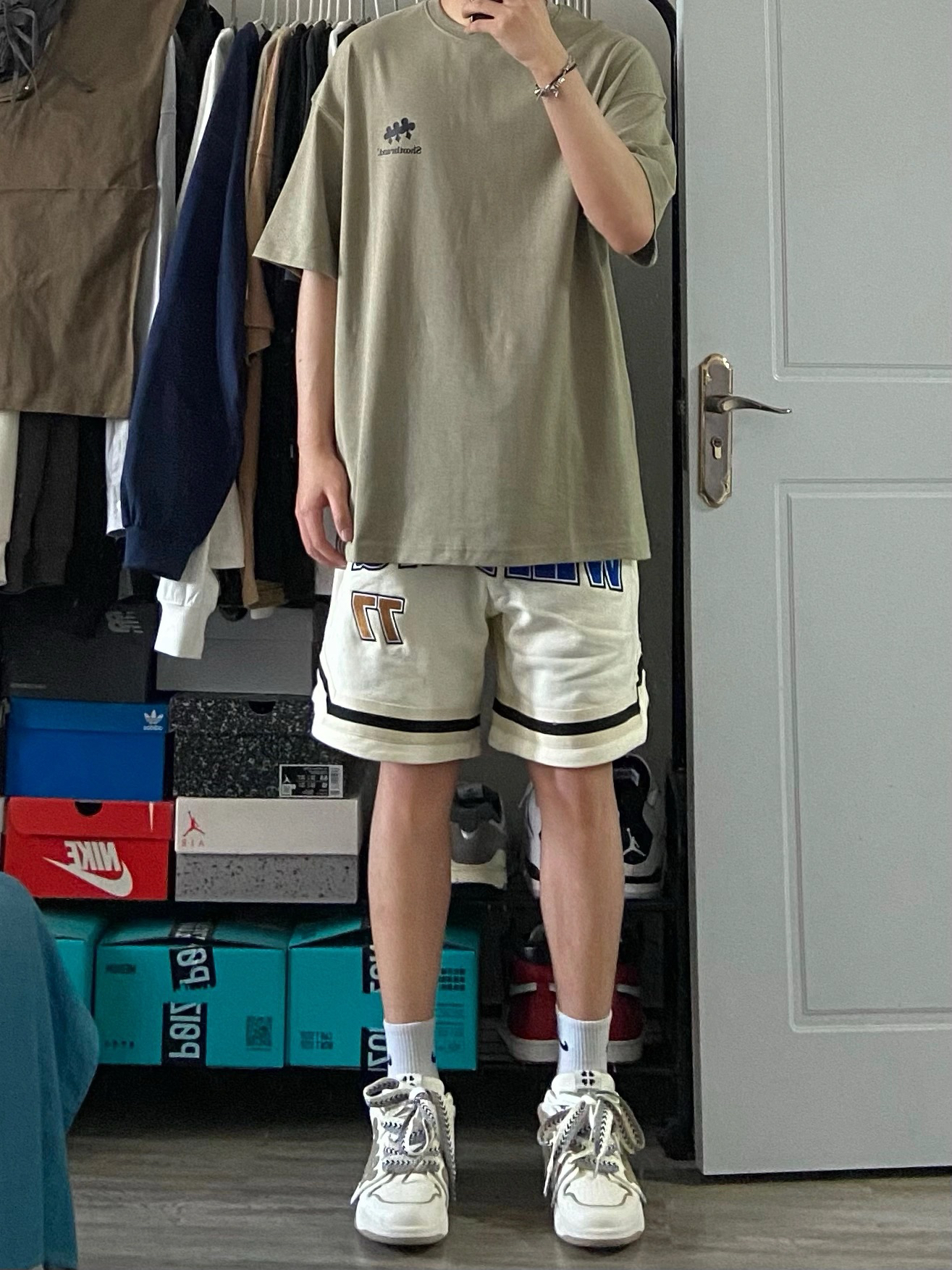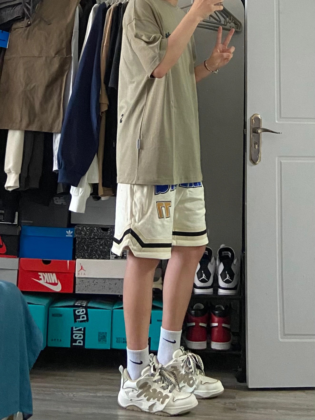 身高|体重:180cm68kg 🧍♂️ 穿搭风格:休闲 👔 上衣:军绿色休闲短袖 👖 下装:杏色篮球短裤 👟 鞋子:板鞋 🎒配饰:小手链