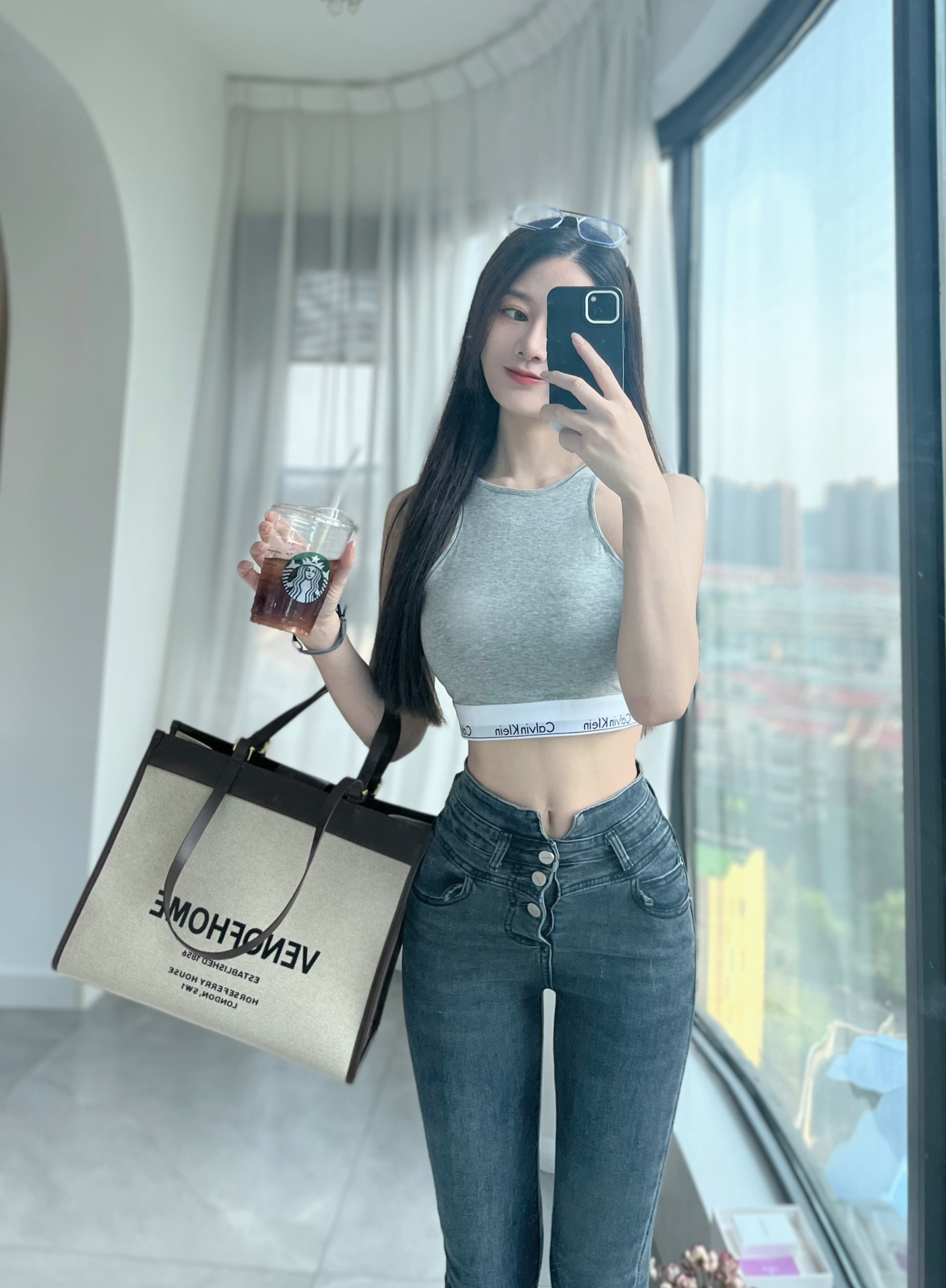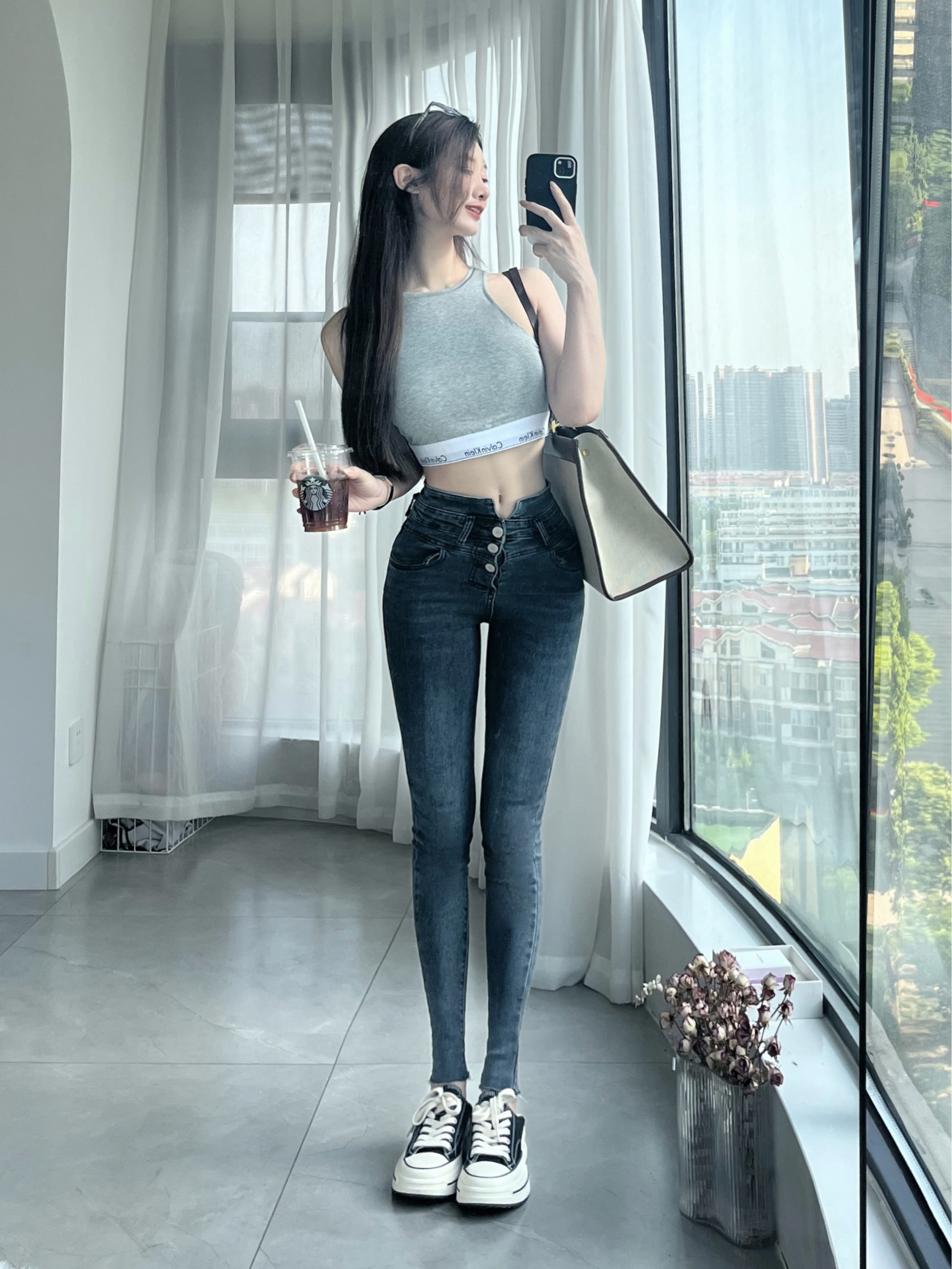 早8这样穿,舒适又好看! 灰色上衣+深灰色高腰牛仔裤+运动鞋 早8星人不用动脑也不会出错的穿搭 上衣是我最近在穿的Jennie同款 这个很好穿舒服又方便。显得肩颈线条很好看。 同款买了三个颜色。我是75B穿M码刚好。 不管是上课还是上班穿很合适~搭配了一双回力的厚底百搭帆布鞋。显得腿很长,还可以踩着床。 随便就是满满的ins风 618快到啦~