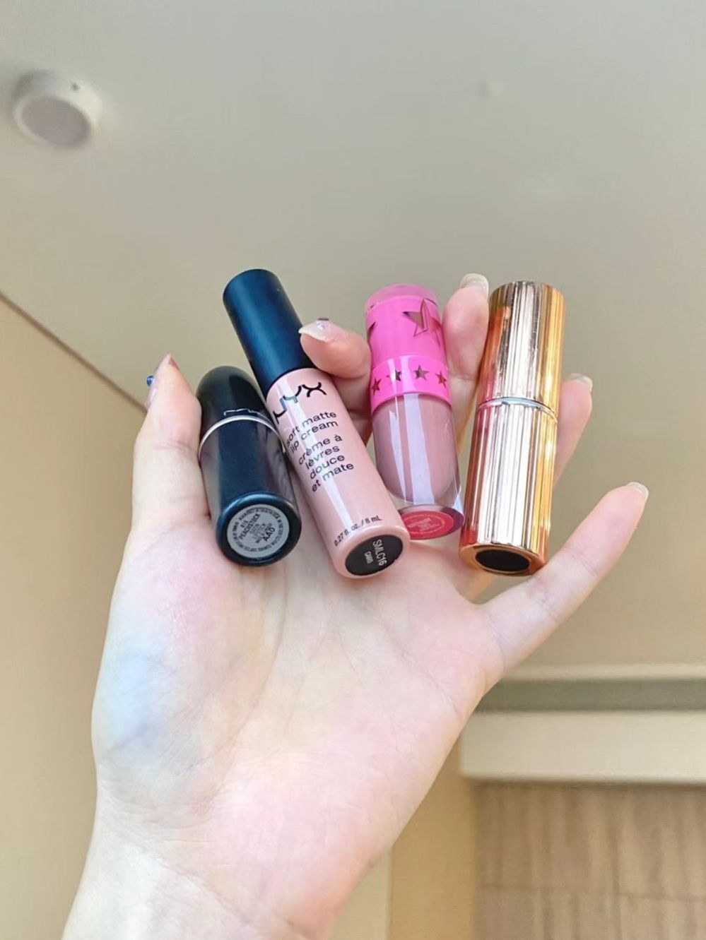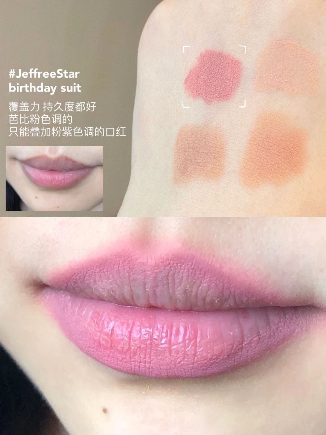 😍Hjeffreestar birthday suit,看一碗粥博主种草的唇釉 但那两个色号买不到了 😍覆盖力持久度都好 也不干 😍芭比粉色调的但不浅后续只能叠加粉色紫色调的口红 😍#nyx smlc16,这支很适合我的深唇和粉底液的颜色一样,覆盖力好 持久度一般叠加什么颜色都适合 😍#ct coverstar,覆盖力持久度都一般优点是颜色好 很滋润 😍图片可以看出来不太能遮住唇周,不建议入手性价...