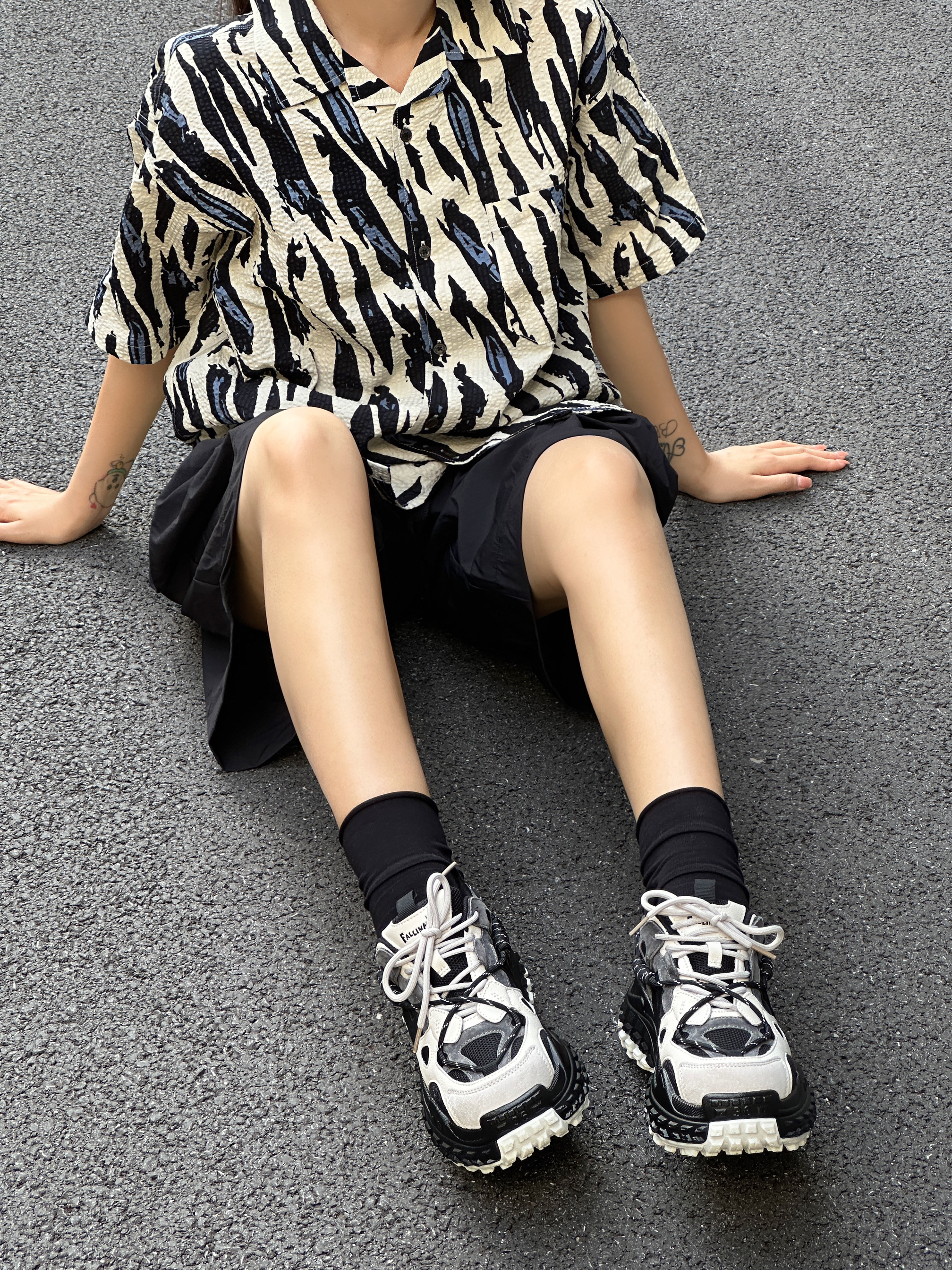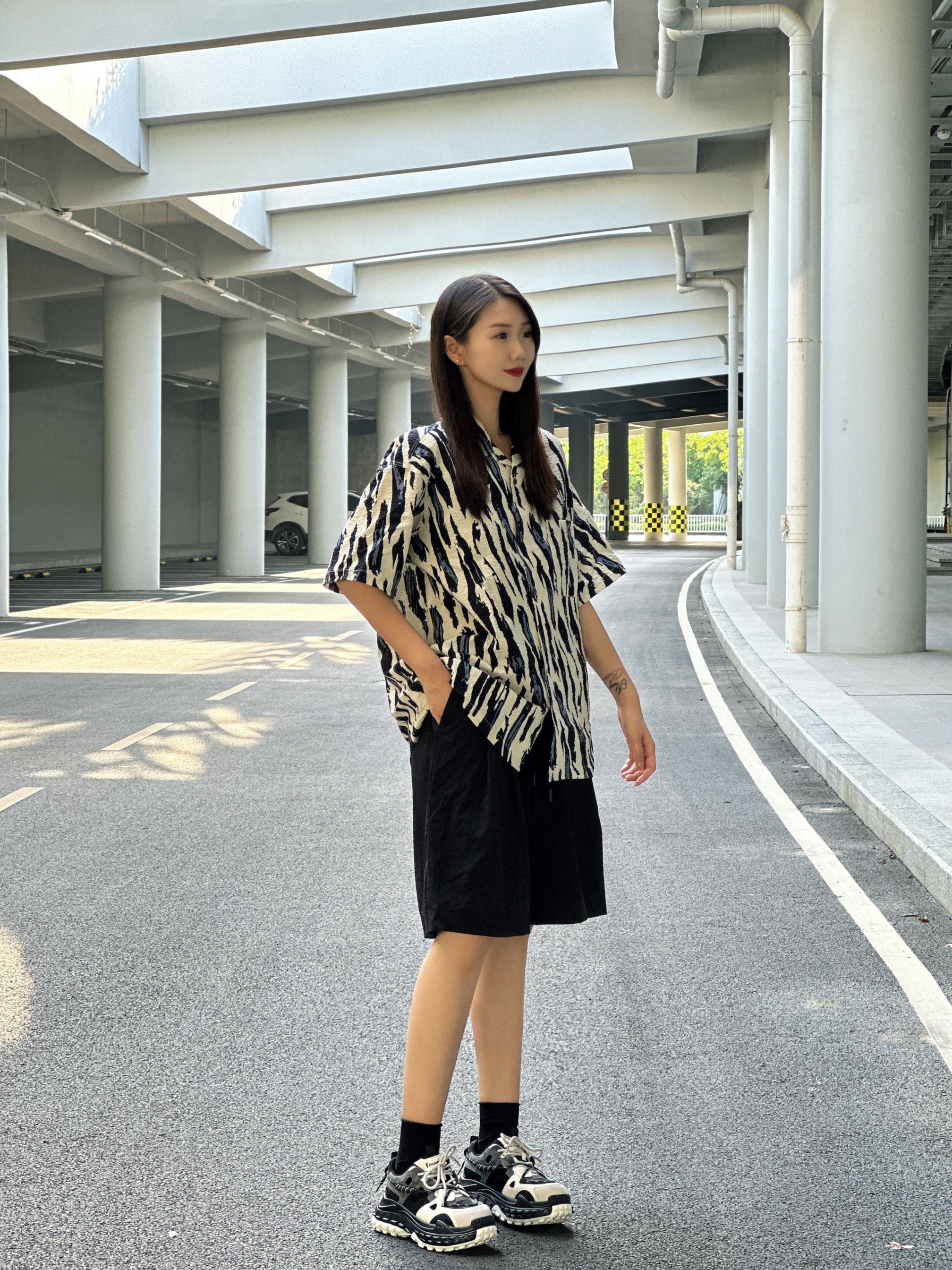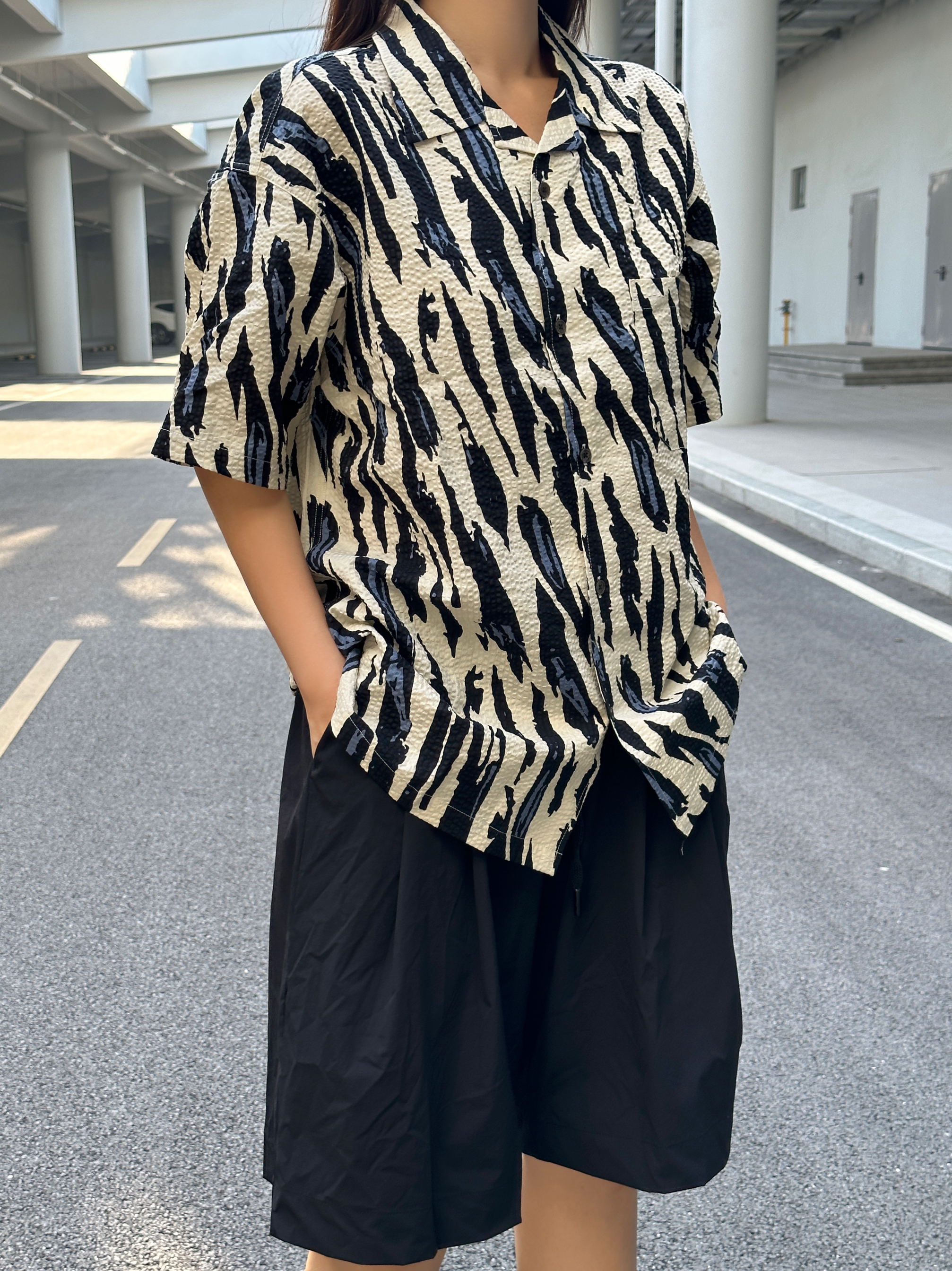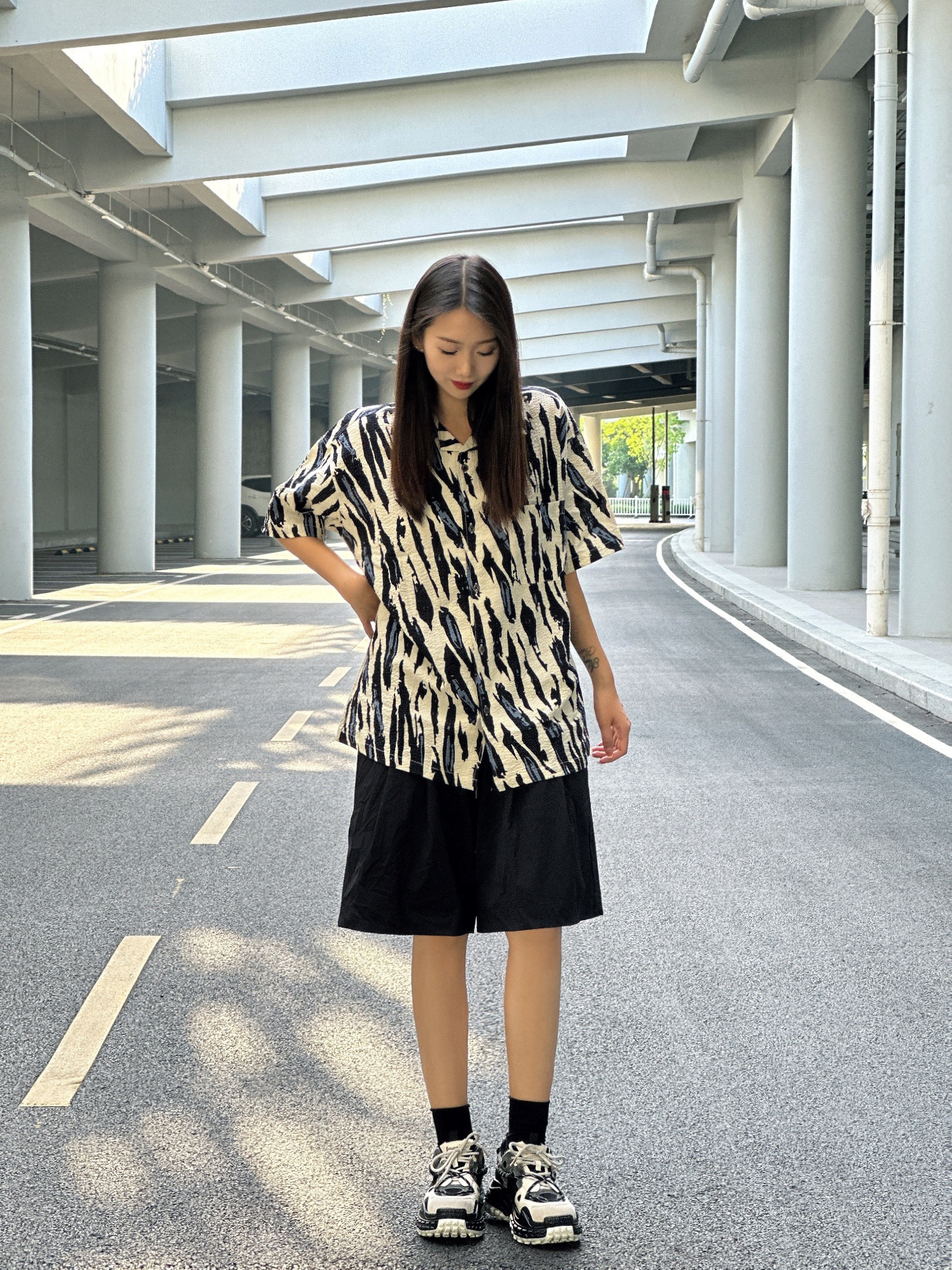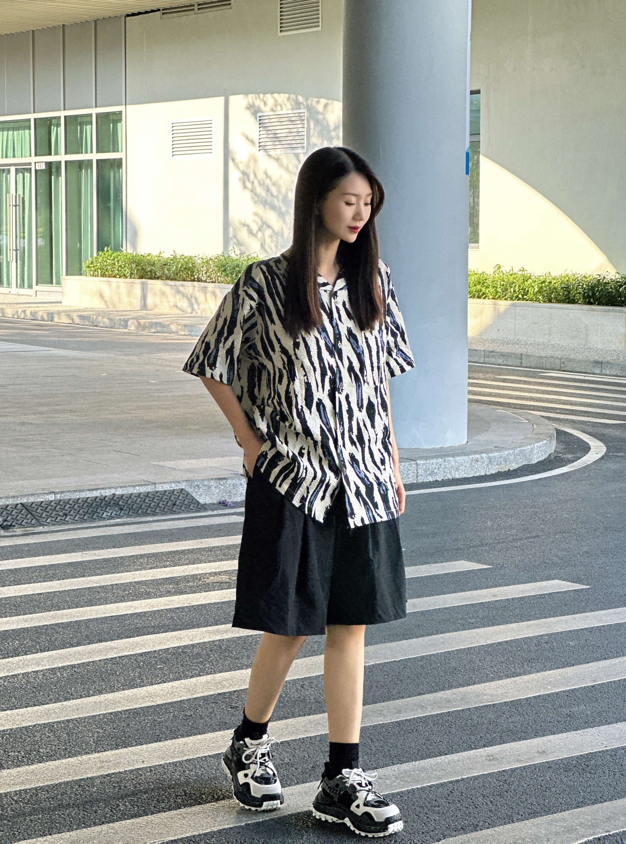 汉堡🍔的穿搭日记 斑马🦓配色的衬衫👔搭配黑色短裤 简约大方,在闷热的天气仿佛带着一丝清凉 上脚黑白配色的圆头面包鞋🍞 颜色上很好的融入今天的穿搭 并且还起到了增高显腿长的效果