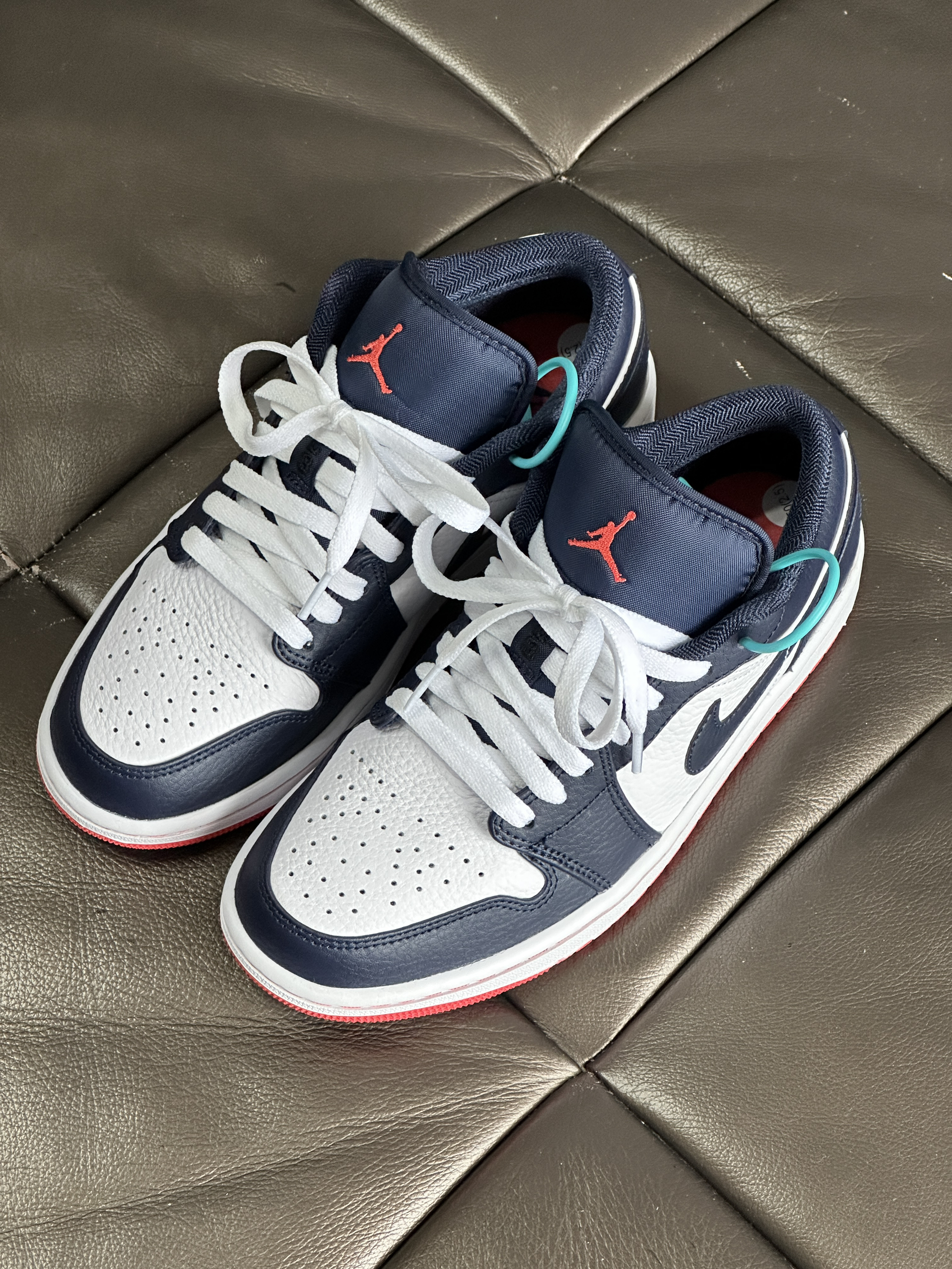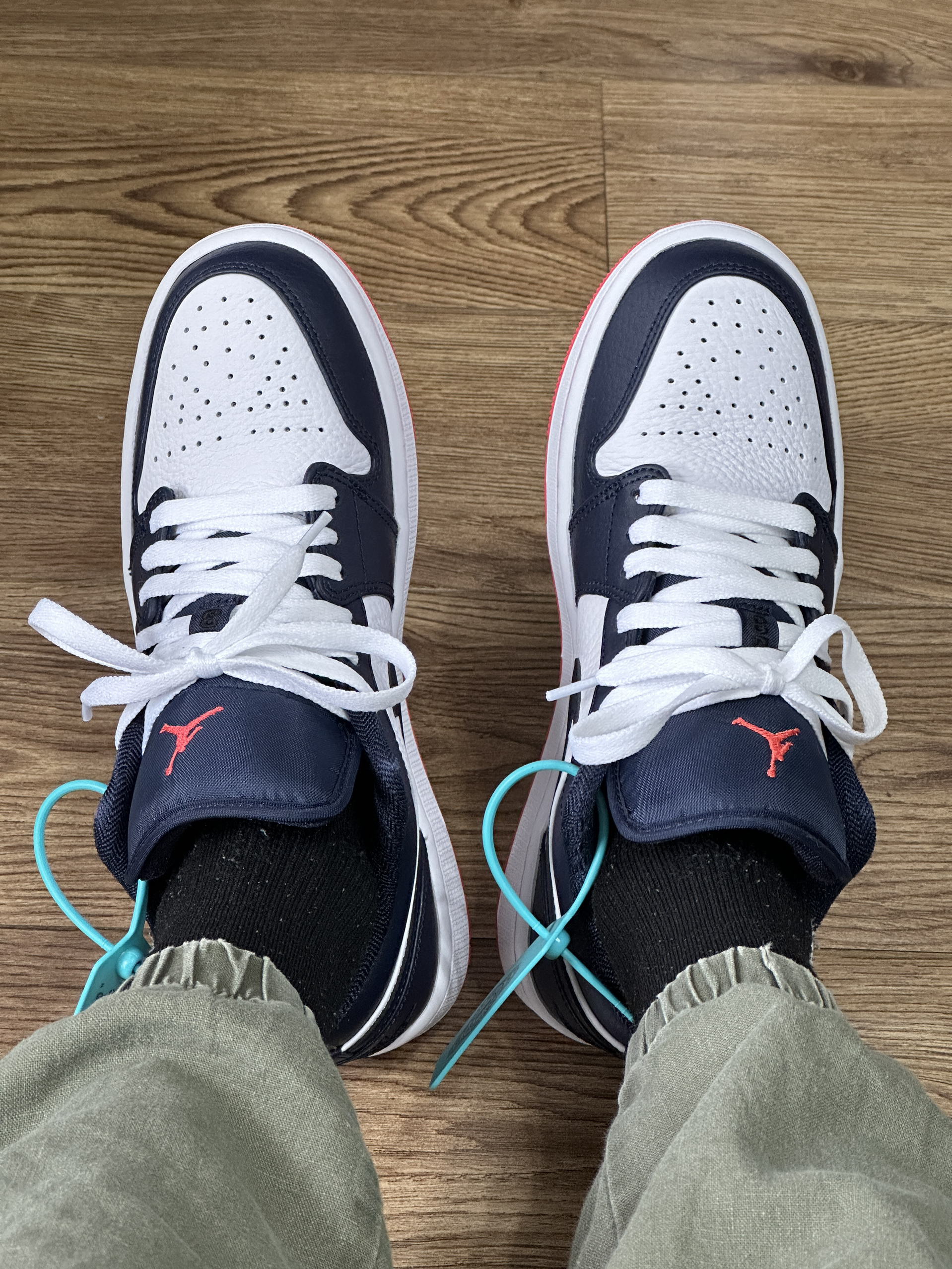 ▶这双AJ 1 Low对我来说有点特殊,记得18年 买第一双AJ的时候是在这双和大灌篮之间选择的,当时在美女同时同事的建议下选择了大灌篮!之后这双鞋价格持续走高所以就不了了之了!但是一直对这些念念不忘! 最近突然发现怎么就几百块啦?!所以毫不犹豫的入手了,确实很不错,是一双比较适合春秋冬三季日常穿着的高颜值好鞋! ▶这双鞋的配色算是比较经典的类型,最突出的就是前脚面的头层牛皮革材质,太赞了!是我最...
