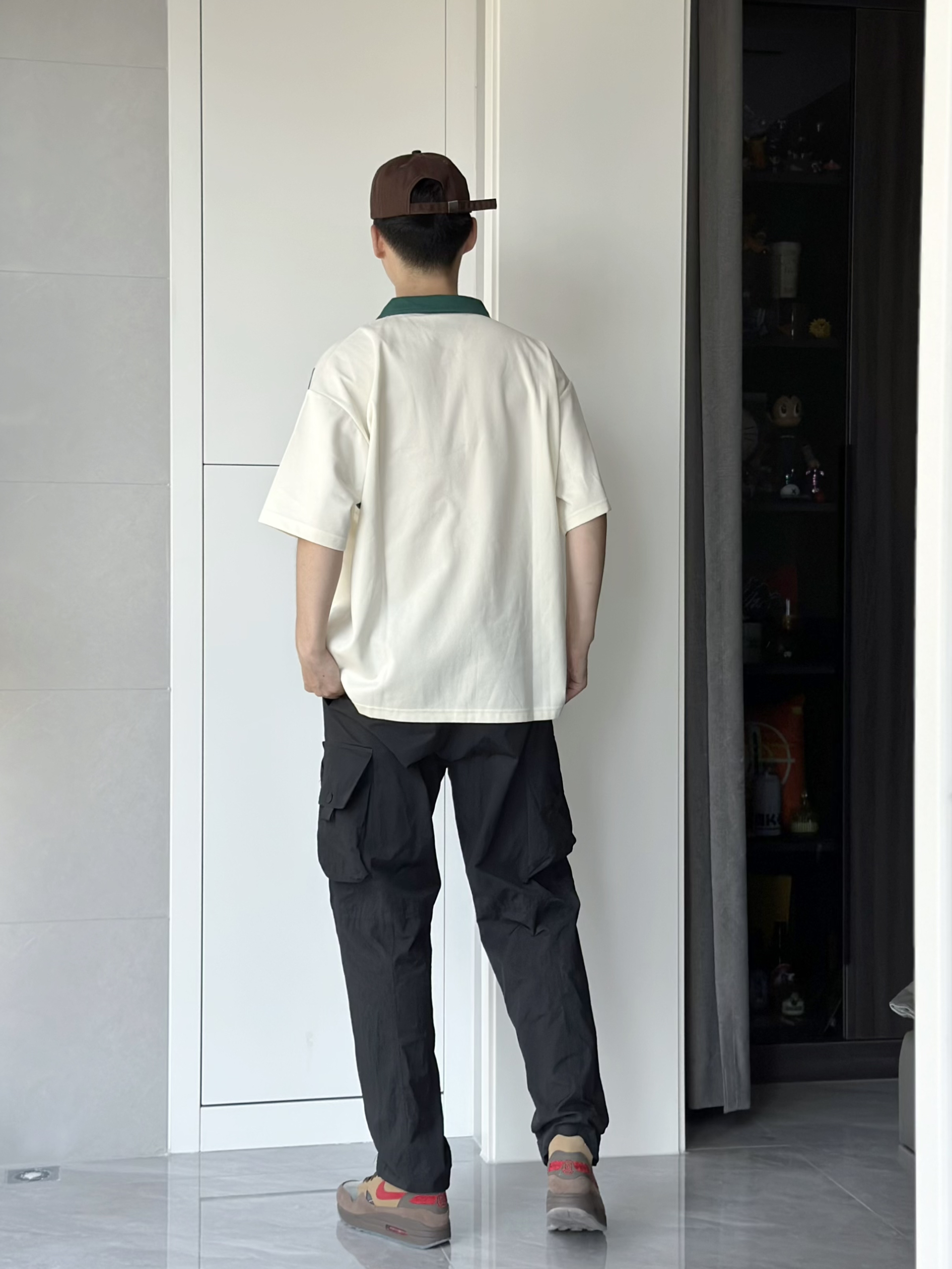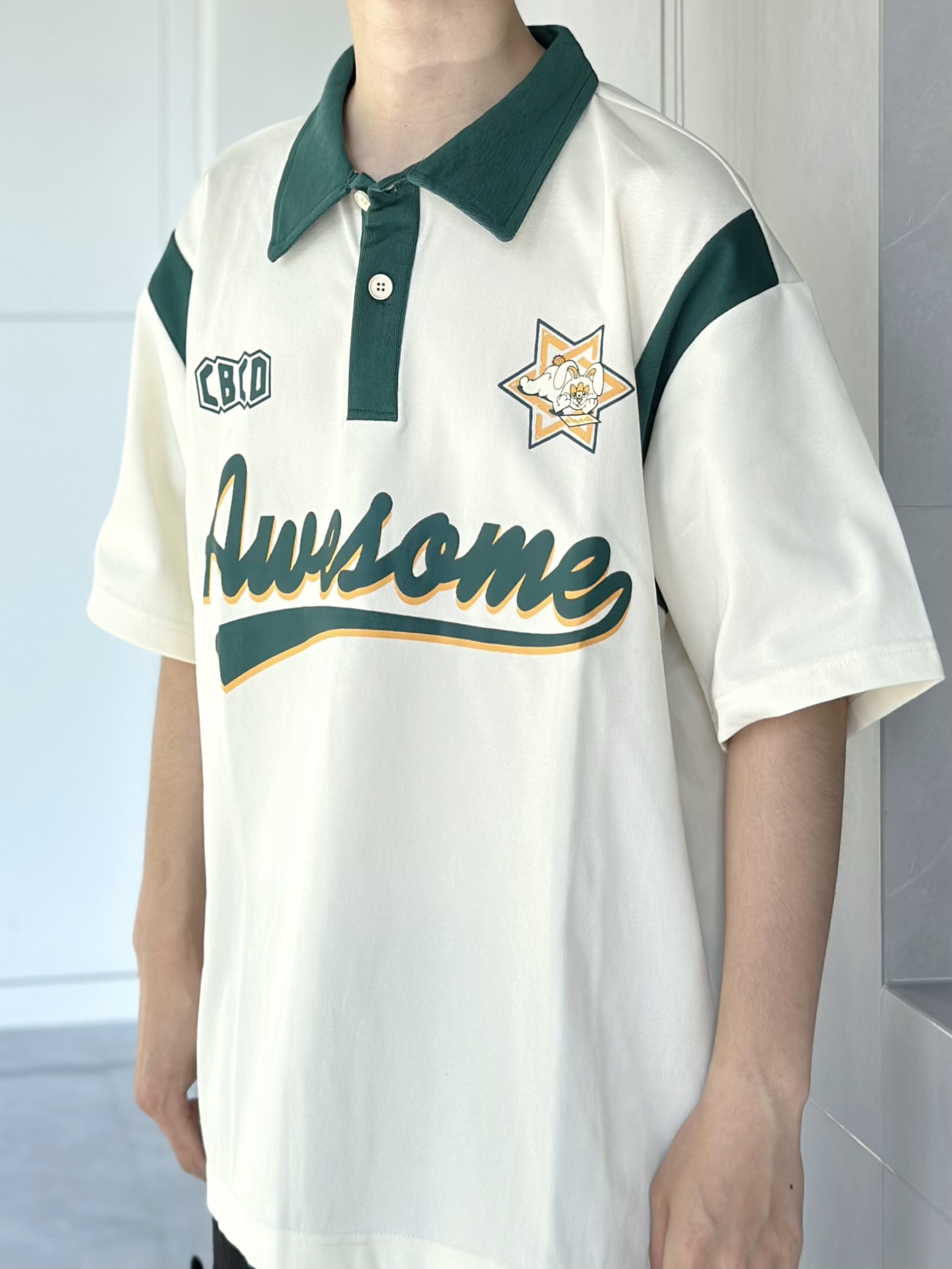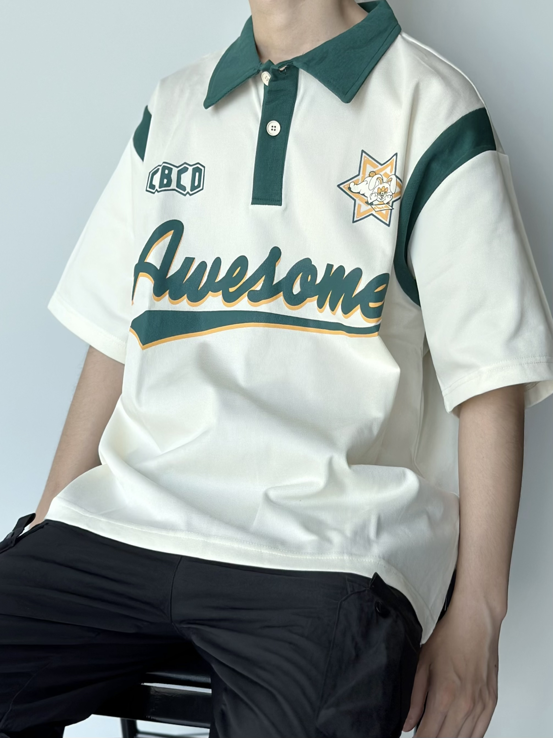 今天小小的混搭一下 休闲的Polo衫搭配工装裤 这么可爱的衣服我只能用俏皮来形容了 米白拼绿的配色和图案的组合 很美式街头风 在夏天穿感觉还是很干净清爽的 在帽子和鞋子的选择上 选用了咖色 有点撞色的感觉 但是又毫无无违和感 感觉就很不错 👔 175 120 穿xl就还蛮宽松的 CBCD