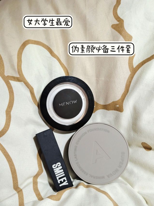 大学生的必备三样 我日常起来的早一般都爱用气垫 因为真的超级方便诶 有了红地球气垫+美诺粉饼+smile口红 你直接就是伪素颜女神啦 1⃣红地球气垫 七点我选择的是灰色的气垫 我混油皮用着非常不错哦 气垫粉质真的超级细腻的 涂在脸上蛮自然的 是我喜欢的感觉 2⃣美诺粉饼 这个我相信每个女大学生都会有一块 真的好用 不用多说了 3⃣smile口红 之前推荐过 真的日常 厚涂清冷感满满