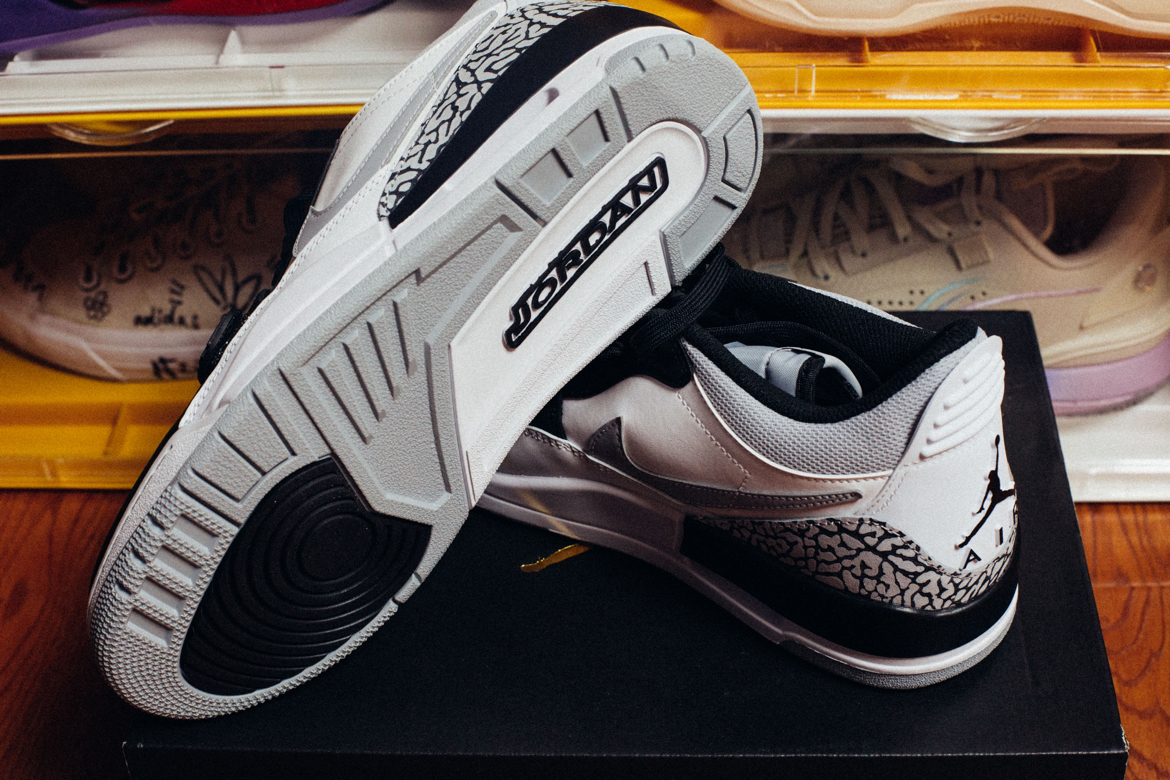 今天给大分享一双Air Jordan Legacy 312 LOW 灰白黑 外观展示 混搭设计的AJ Legacy 312 LOW 灰白黑 整双鞋以黑白为主调,材质为头层牛皮和合成革 混搭设计的AJ Legacy 312 LOW 灰白黑 经典的黑白灰配色,采用aj1 aj3 alpha force的经典混搭元素,中足固定带稳固贴合,皮革合成革织物组合鞋面,后跟花纹随机,上脚非常好看百搭。 鞋底为耐...