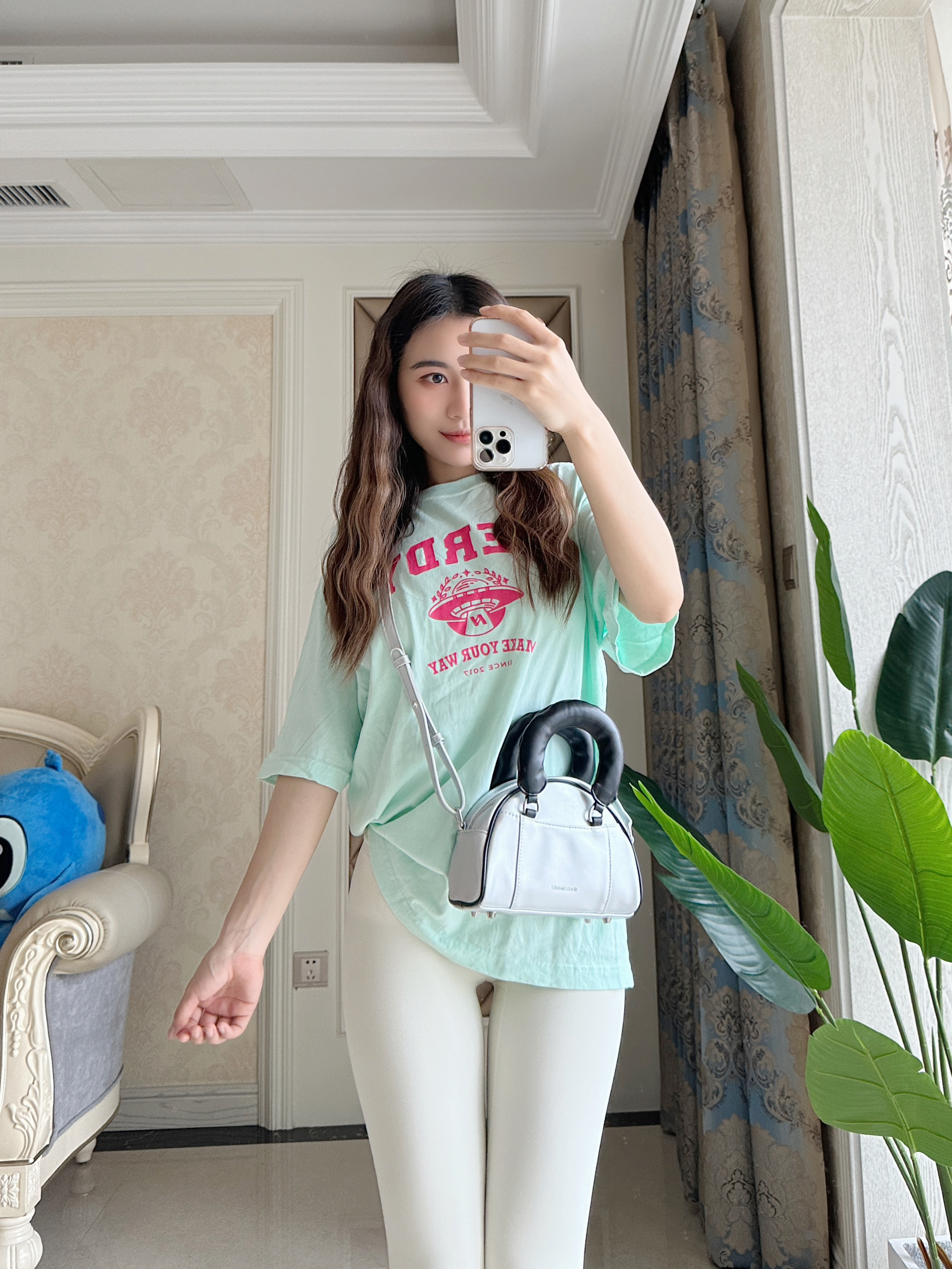 没有哪个女生能拒绝这么可爱的配色和造型吧 拉链保龄球包 第一眼看过去就觉得很运动 小小一只却很有重量感 防滑耐用 内里容量适中 包身硬挺有型 肩带 透气材质 更加体现它的运动气息