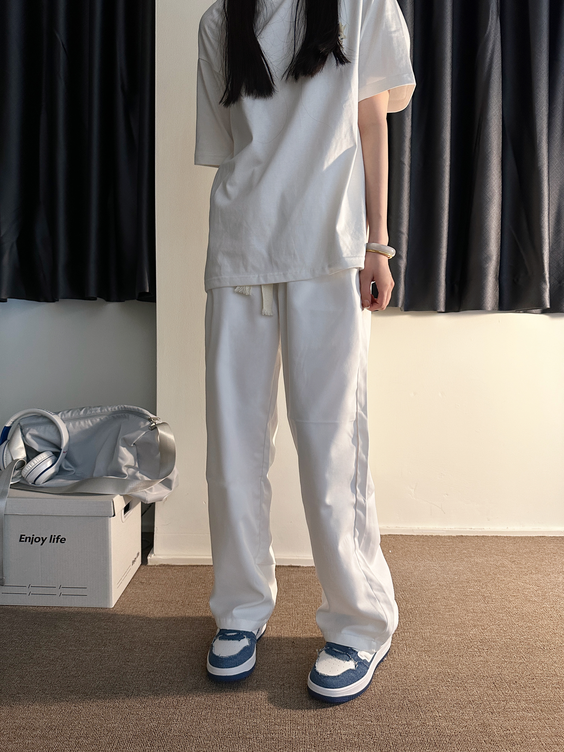 这条裤子最近真的超爱 真的没想到白色裤子能这么显瘦啊啊~~! 这条裤子的版型很赞 直筒宽松的版型 视觉上敲级修饰腿型 对梨形身材的姐妹敲友好的💓 裤子的质感也很好捏 面料也很舒服 夏天穿也很适合!不会透哦~~ 夏天真的很需要一条白色裤子 清清爽爽 随便搭搭出街就很好看啦 🔺品牌 👖:Xavier3