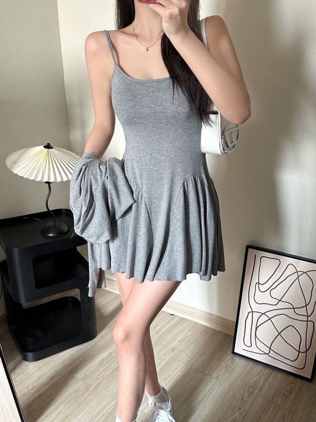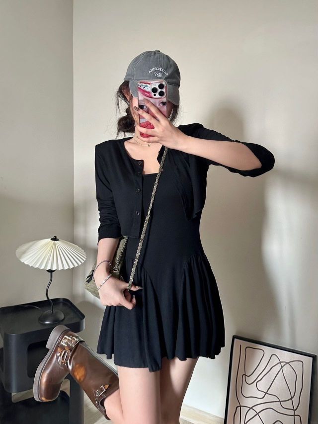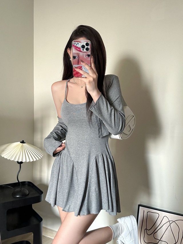 纯欲吊带裙➕芭蕾👗风开衫 纯欲休闲两件套😍 这套给我锁死!纯欲又休闲的一套👀 就很有辣妹的💗嗲嗲味道 整体属于修身版 但面料弹力很大🎀 就很显身材,看照片就能看得出来它有多显瘦了 妥妥纸片人~🤳