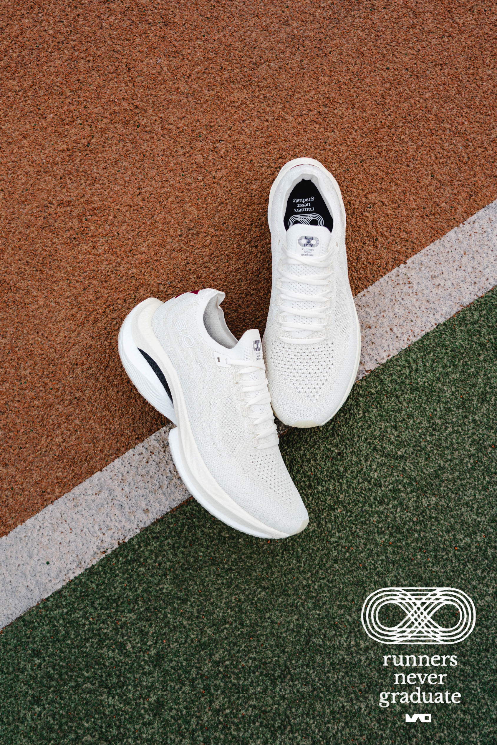 纯白的跑鞋现在好像越来越少了, 好像大家都更喜欢买一些亮色的或者黑色的, 一来看上去比较炸眼, 二来比较耐脏。 但是小白鞋永远不会过时, 虽然不耐脏,但是真的素雅, 就像手办的素胚,有着不一样的美。 黑脚趾这是和特步第二次合作了, 以160X3.0为蓝本, 带来了“跑者永不毕业”的主题, 在校园中,我们一直被教育, 但在跑道上,我们可以肆无忌惮, 跑步带给了我们课堂上给不了的东西, 所以“Runn...