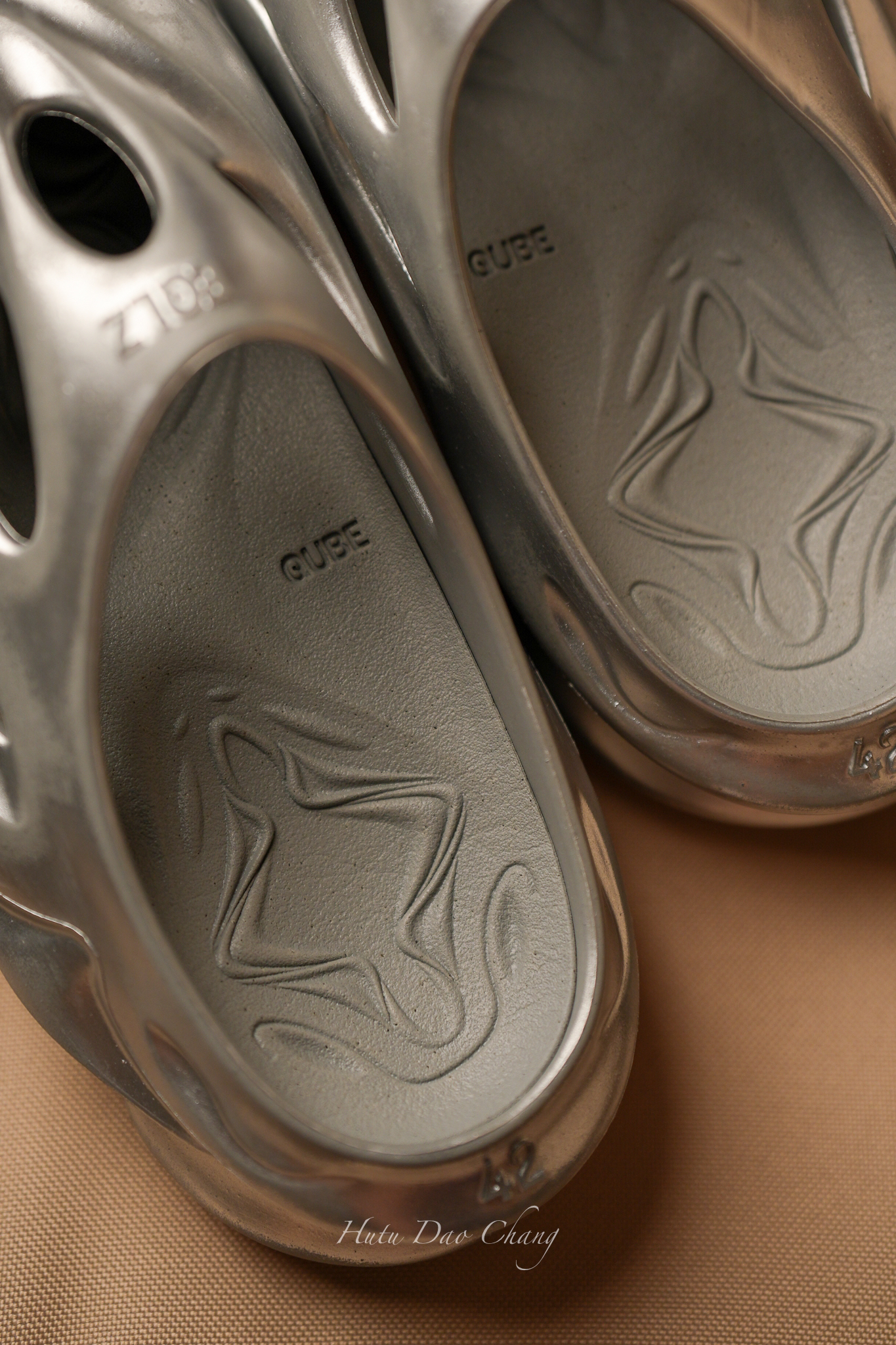 🌍 这款拖鞋以咖啡渣环保回收材料为原料,造型犹如宇宙飞船,不仅时尚独特,更具环保意义! 💨 借鉴航天工业的镂空设计,拖鞋透气性更好,脚后跟部分也能轻松呼气,让运动时也不会感到闷热! 💪 拖鞋整体采用柔软材料,鞋身不仅柔软轻盈,舒适度亦得到大幅提升。即便长时间穿着也能保持脚感软弹,让你的双足得到更好的照顾。 🚀 银色喷漆做旧复古外观,为拖鞋充满了赛博朋克风格!一款既时尚又环保的拖鞋,让你走得更...
