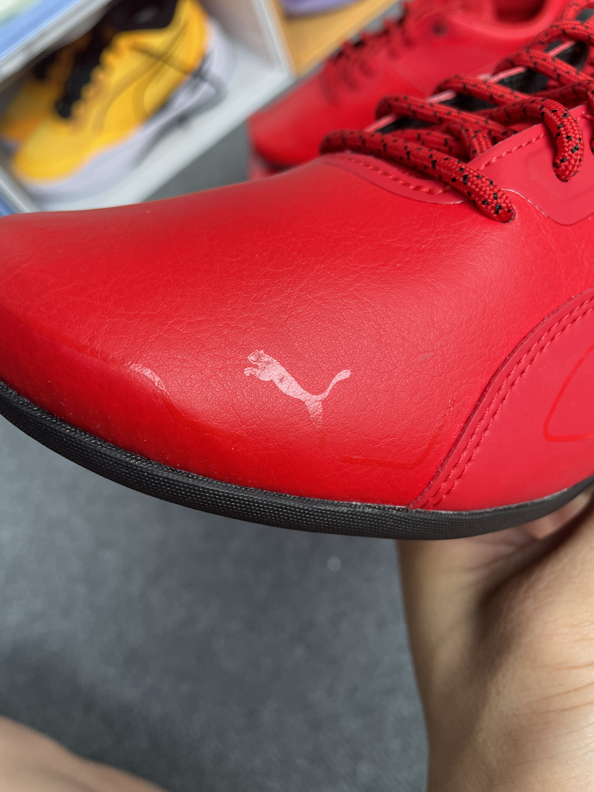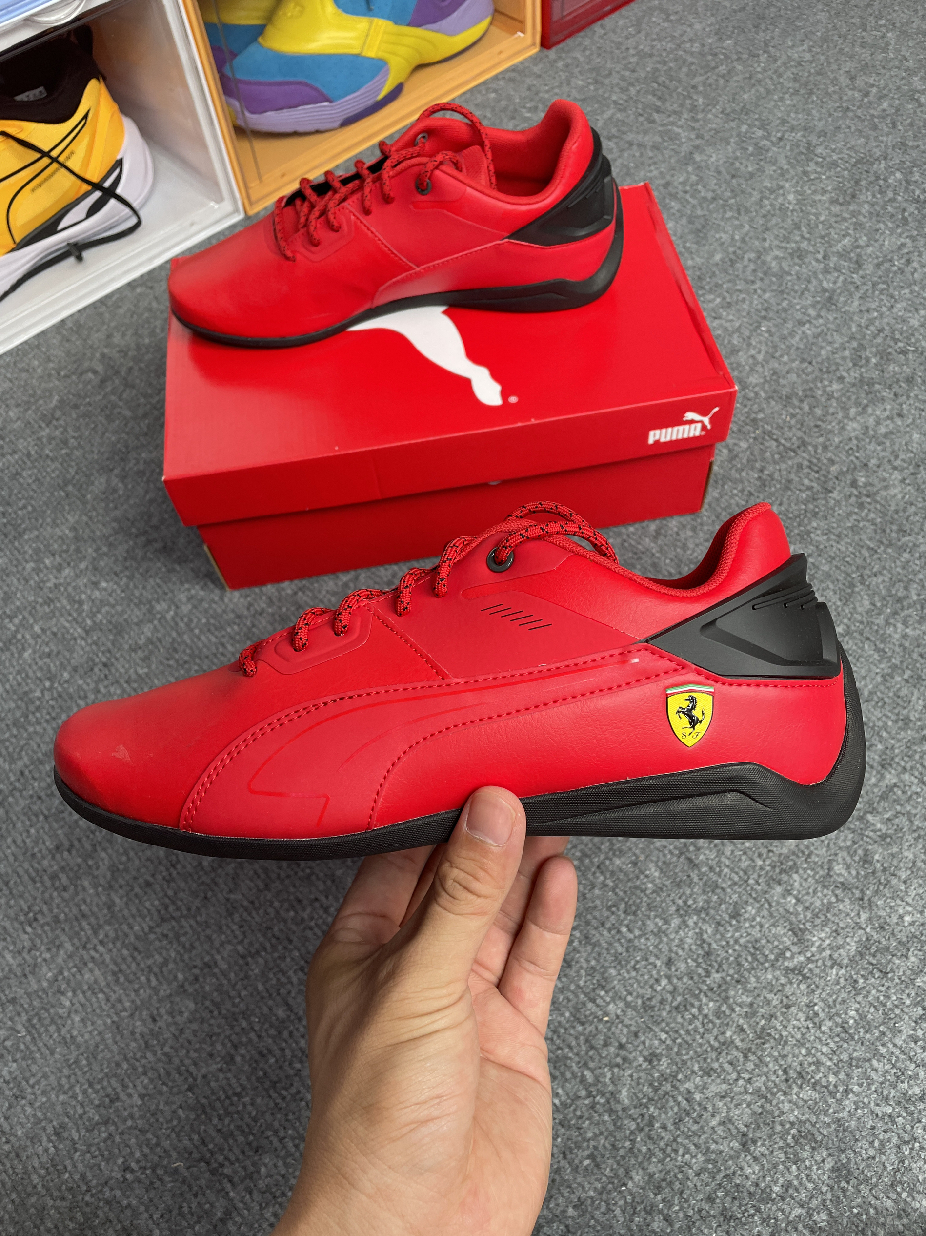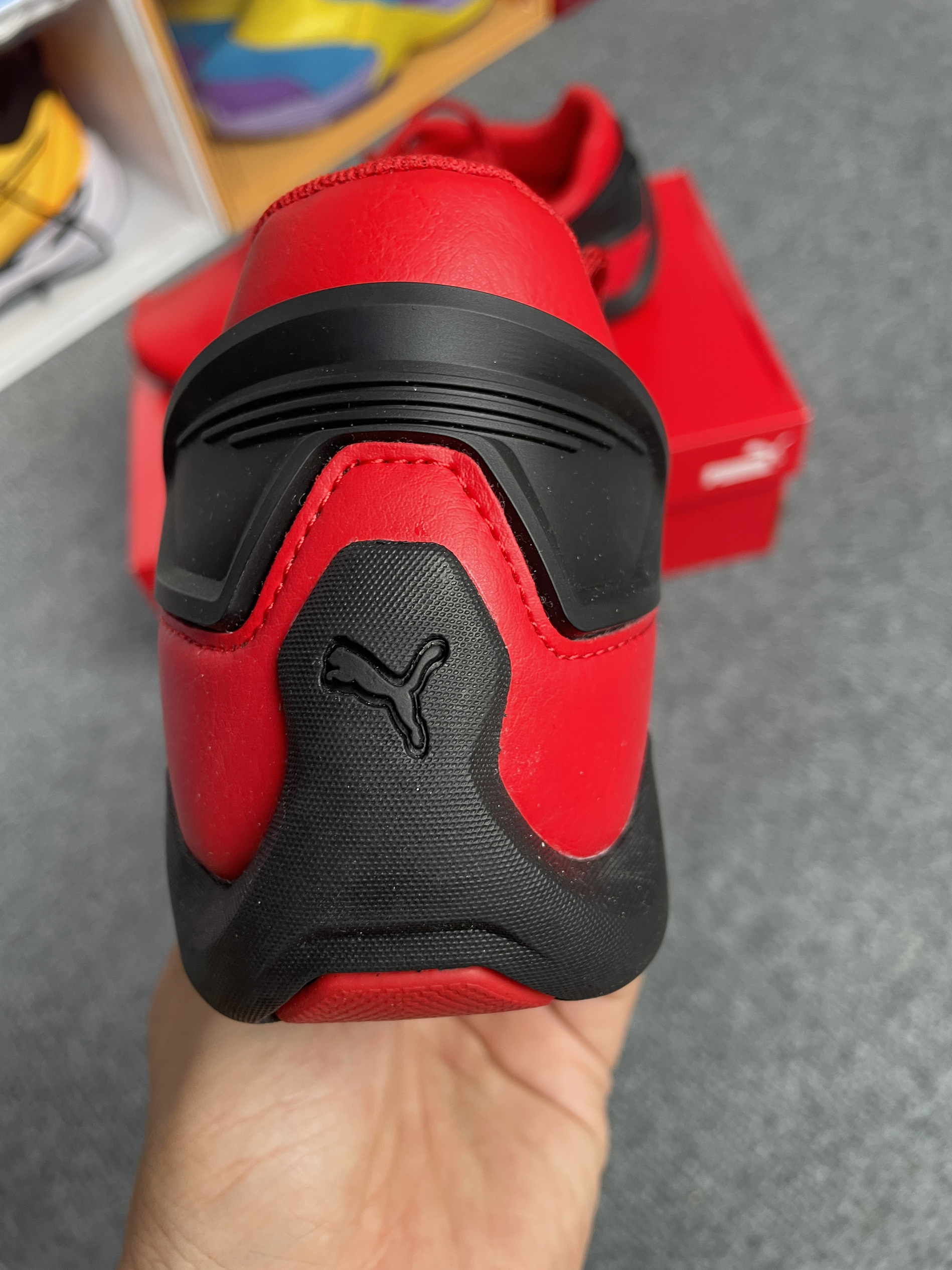 这双彪马的法拉利联盟鞋子真的高调 虽说是红黑配色,但红色占据了鞋面的95%😂 不得不说大红色是真的亮眼 后跟法拉利的logo也很吸睛 穿出去一定是全场焦点😏 脚感也还不错,不偏码