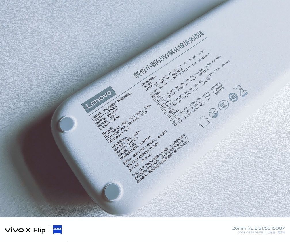 这不618了,随着桌子上电子设备越来越多,就入手个小新65W氮化镓快充插排,白色的外观非常百搭,放在桌子上一点也不突兀。 插排上有3个三孔插口和三个两孔插口,另外还有主打的两个Type-C插口和一个USB口,C口最大支持65W快充,USB口最大支持22.5W,兼容市面上多种主流充电协议,包括手机、平板、笔记本,还有手表耳机等小电流电子设备都可使用。如果两个C口同时使用,输出功率是20W+45W,...