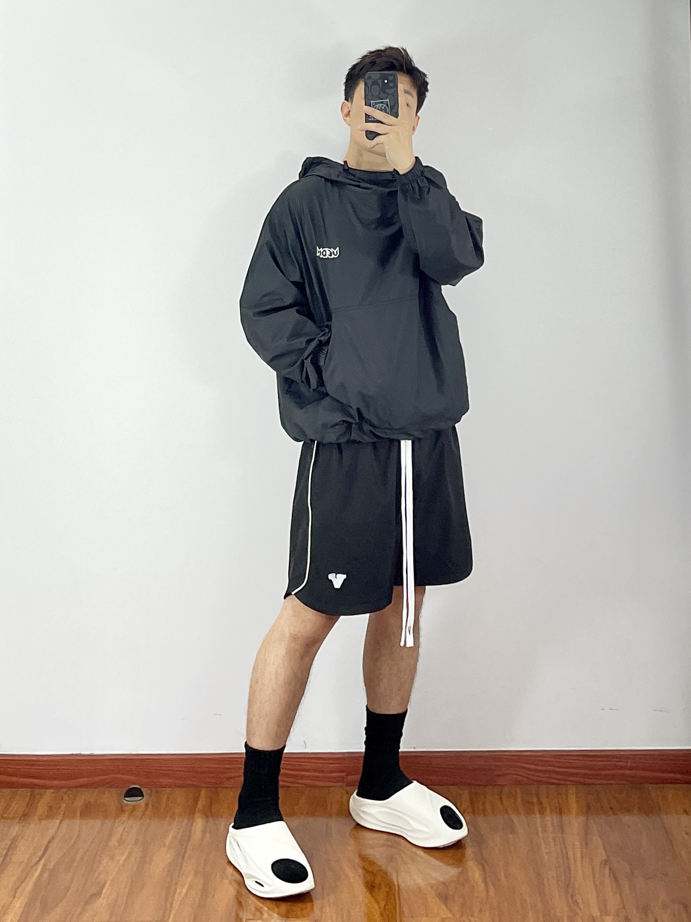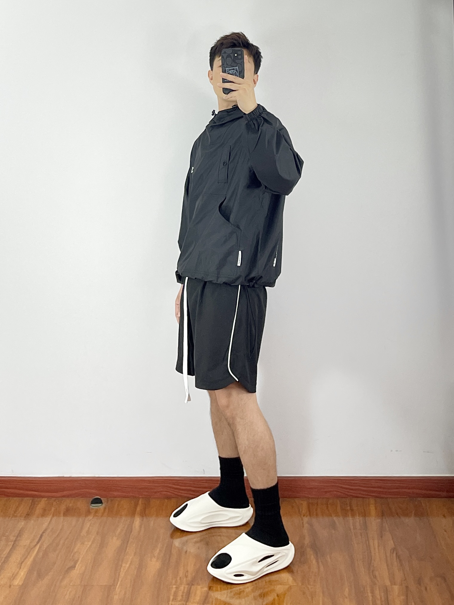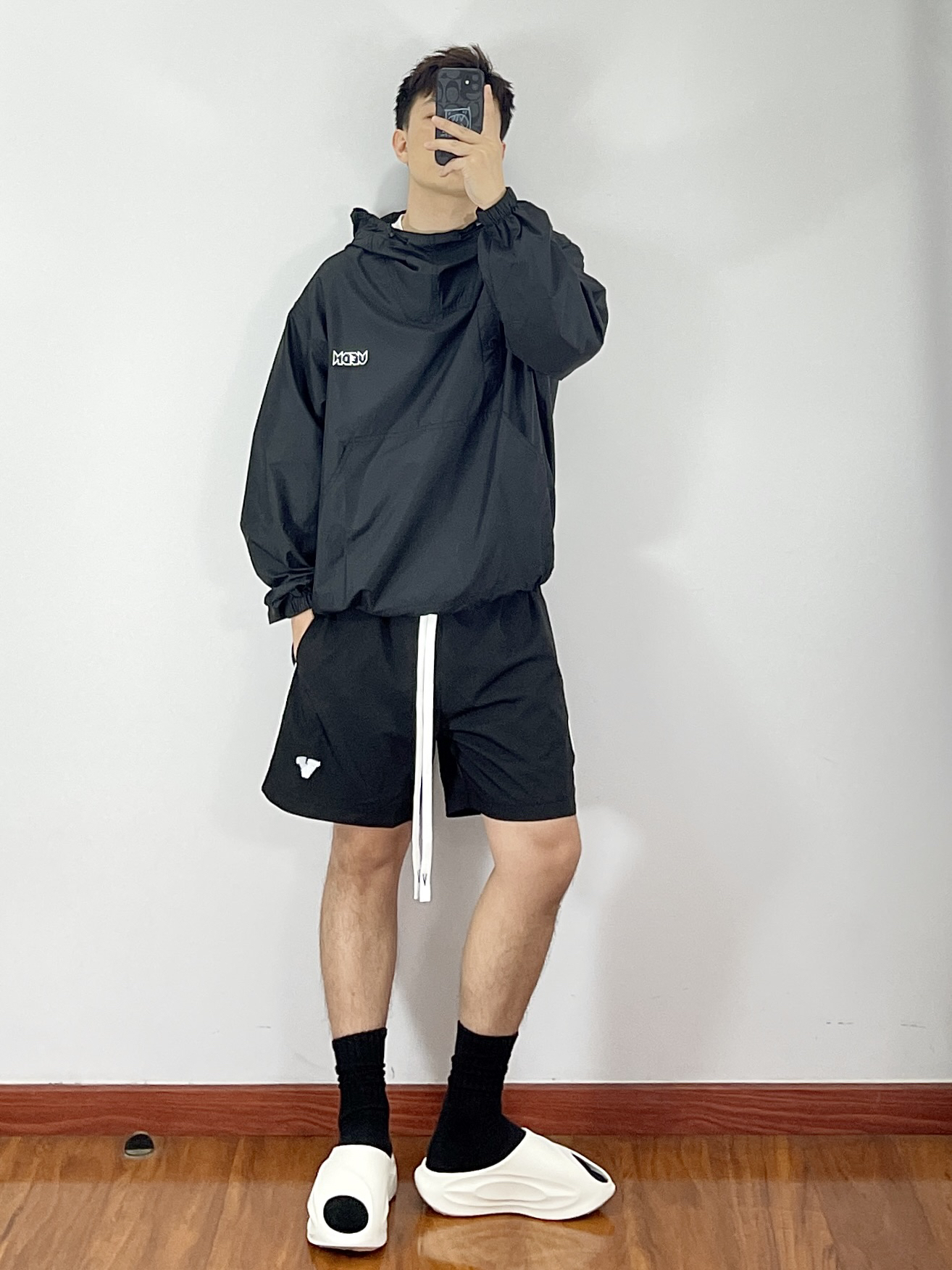 170cm/67kg 分享一个普通人的穿搭 - 美式运动穿搭,上长下短的搭配 全黑色的搭配,除了帅气还实用 面料轻薄透气,四分裤凉爽帅气 夏季穿上拖鞋,美式造型十分帅 - 👕:维动 止镜 👖:维动 止镜 👟:鸿星尔克 芷境 -