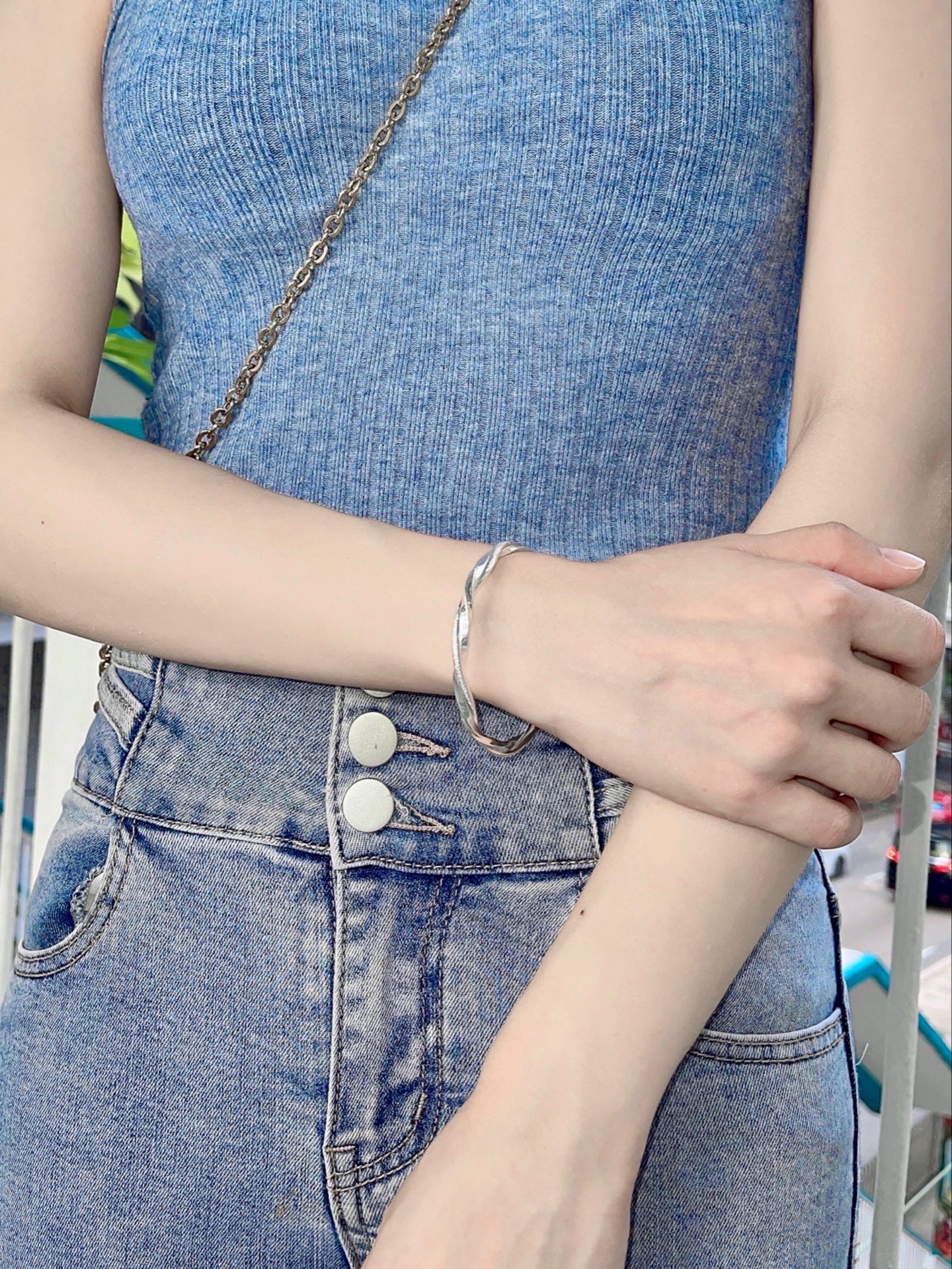 香港街头真的蛮出片的📷 分享一下在街头闲逛的穿搭Look 短上衣➕牛仔裤➕面包鞋搭配 整体蓝色调为主 出街时尚又舒适~ 再搭配上VANA莫比乌斯环手镯 经典走马圈设计百搭又耐看 999纯银材质 精致高级 光泽度高 搭配今天这身增加穿搭精致度 手镯的礼盒包装也是满满仪式感 马上520啦~把它作为礼物🎁送给女生再合适不过了! ⛓️:VANA
