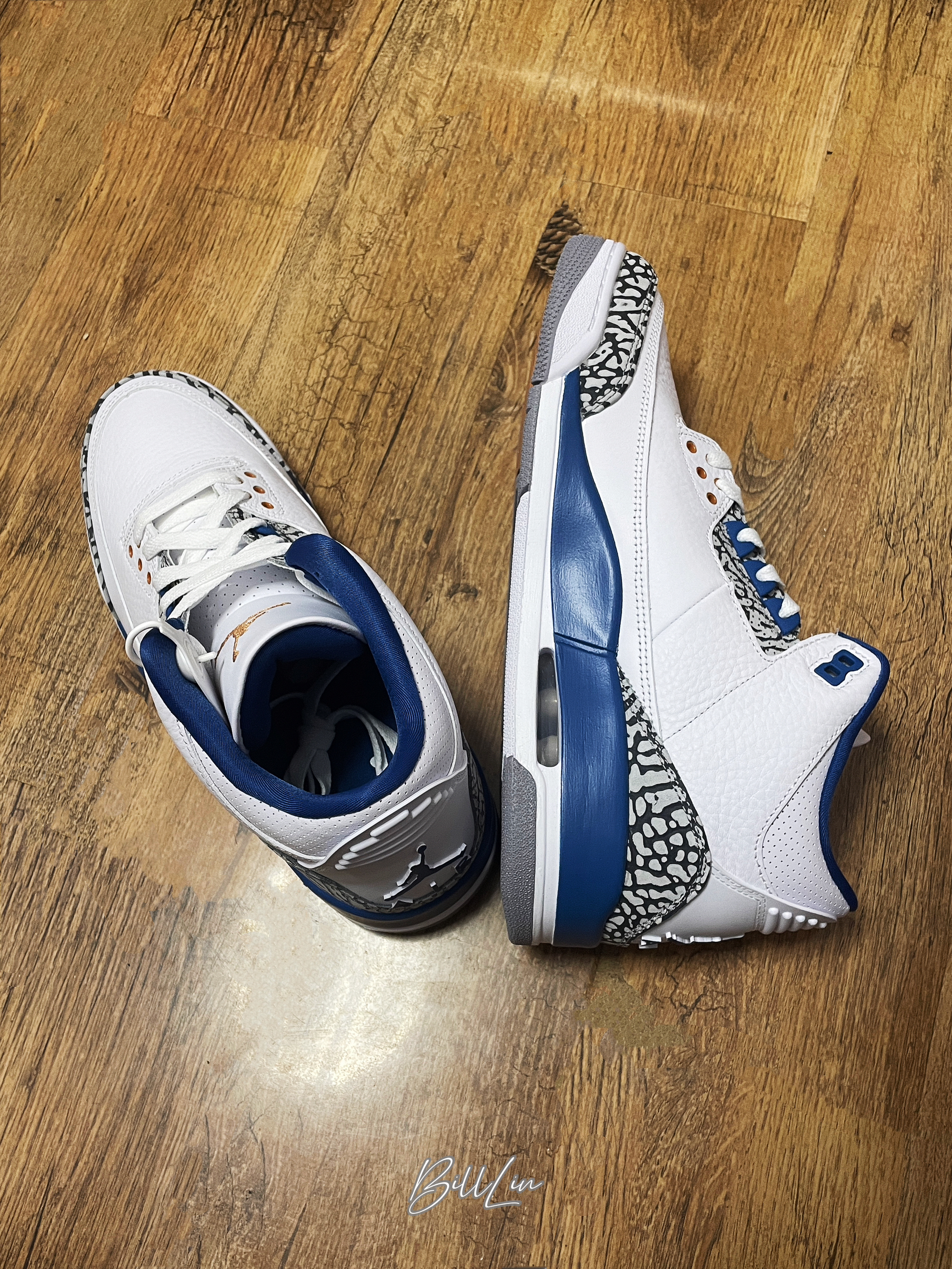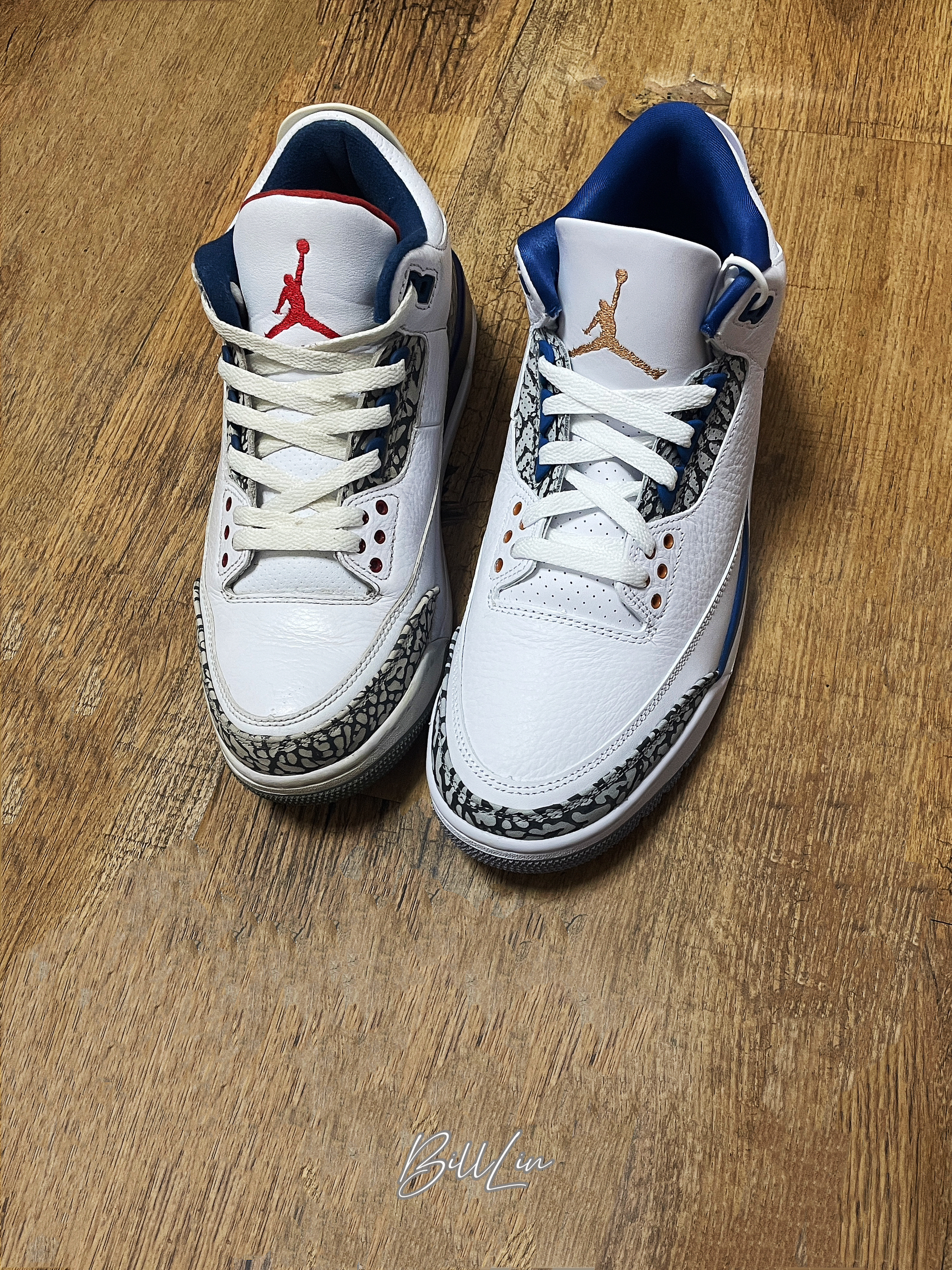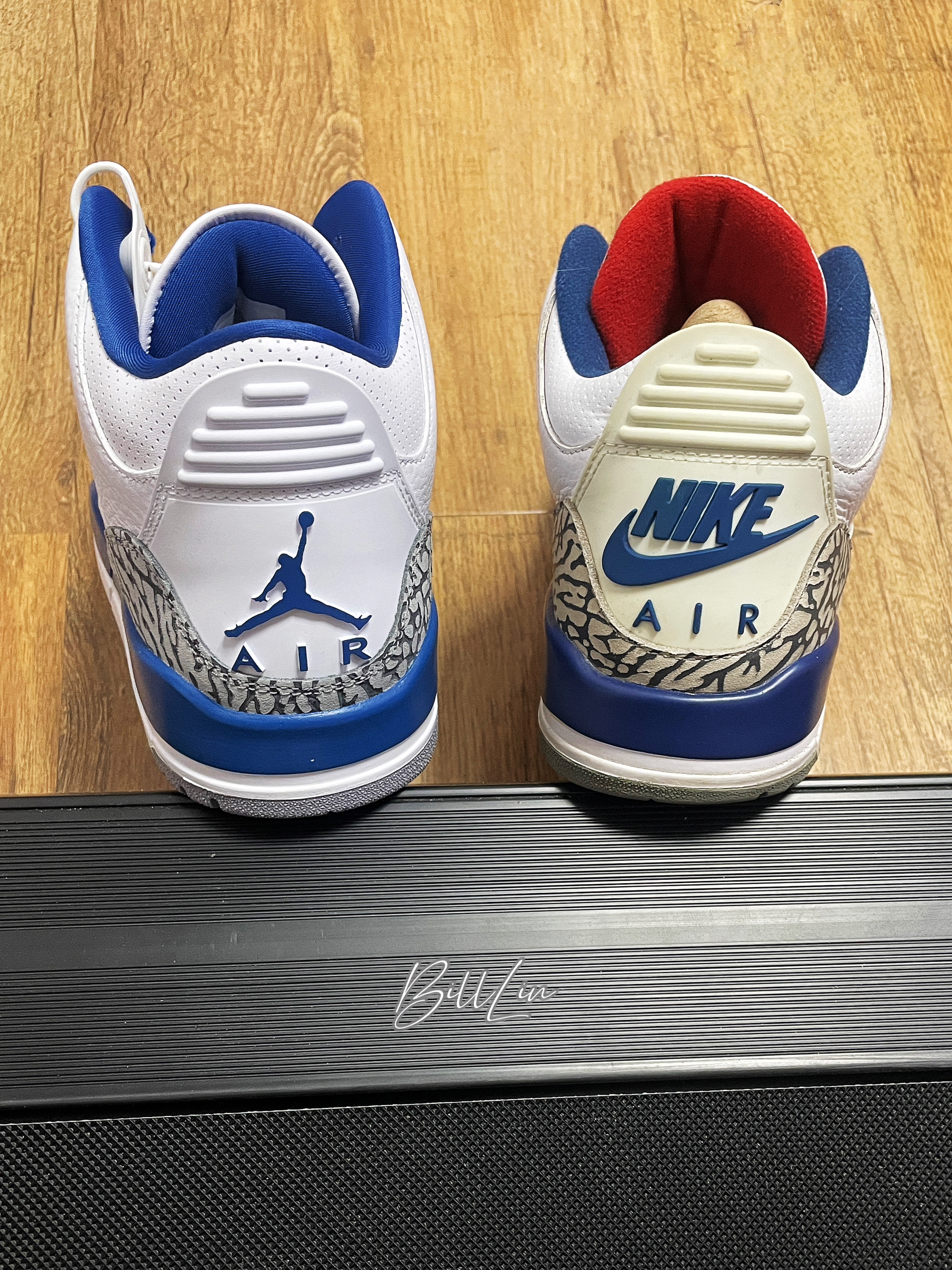 👟:Air Jordan 3 Retro 奇才 趁着把真蓝封起来之前,拿来和这双“奇才”配色一起合个影。 如果是之前错过真蓝的朋友,这双奇才还是很值得入的。这双奇才的蓝色相对浅一点,爆裂纹的面积也会小一些,鞋舌的Jumpman logo也是奇才队的金色,后跟和外底也用了Jumpman和Jordan logo。 目前这个价格差不多低于千元了,比我当年买真蓝价格便宜多了😭。心动的朋友赶紧冲,或者入手...