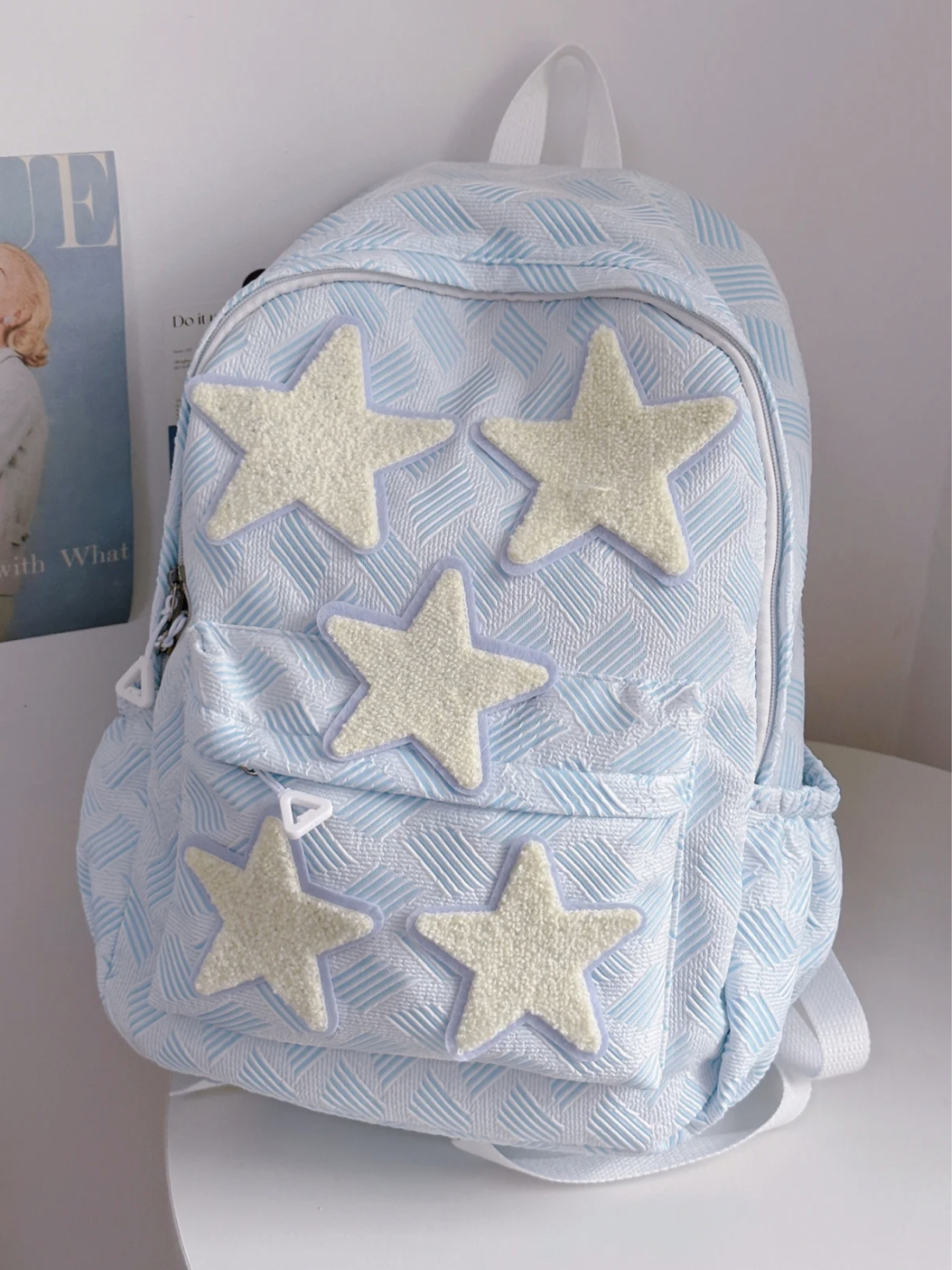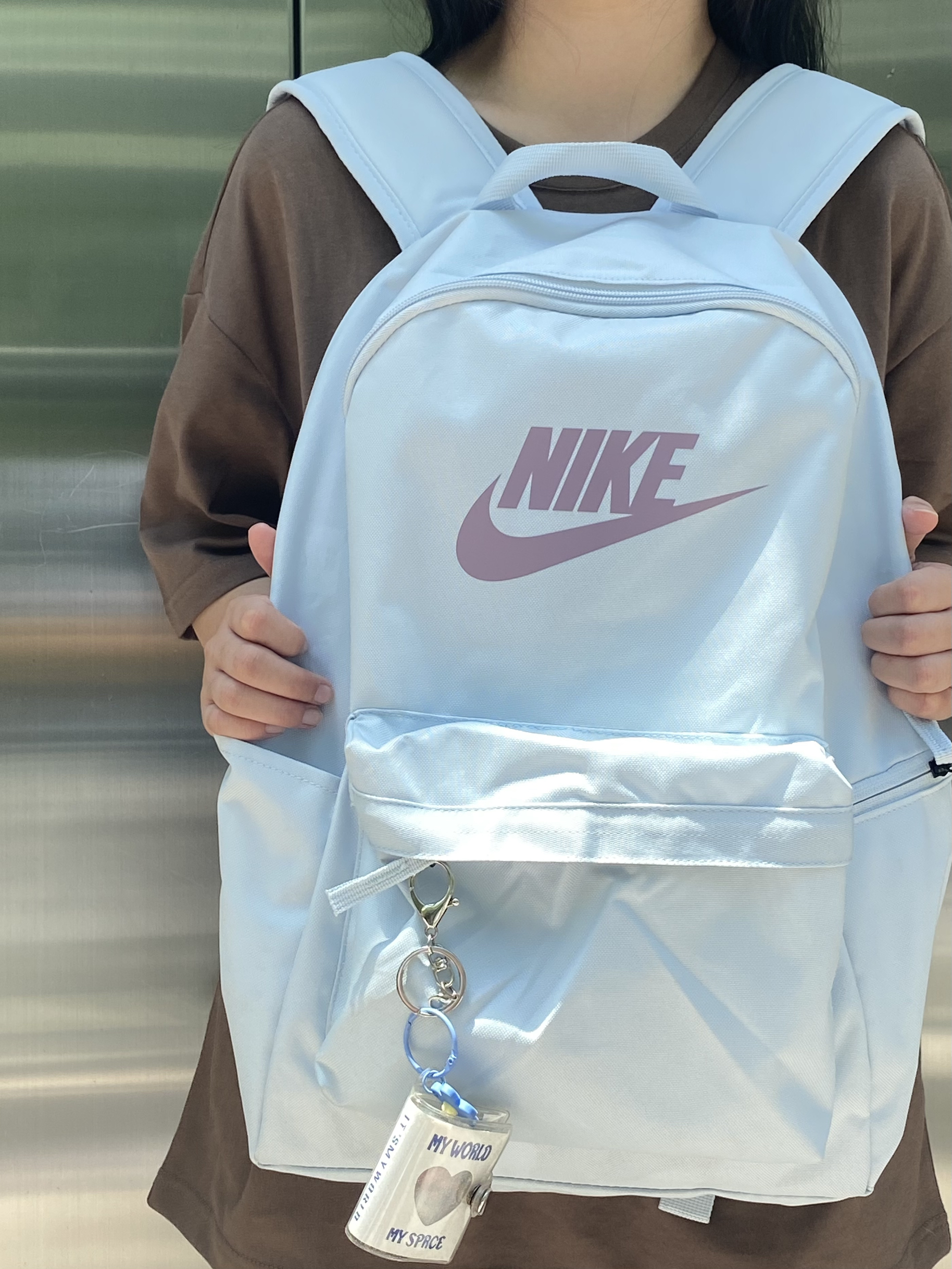 推荐学生购买的一款书包 我现在背的就是这个 有两个空间 大的平时我就用来放书那些 前面小的用来放钱包还有一些笔 侧边有一个网兜都可以放雨伞或者是水瓶 质量很好 我已经背了快半年了