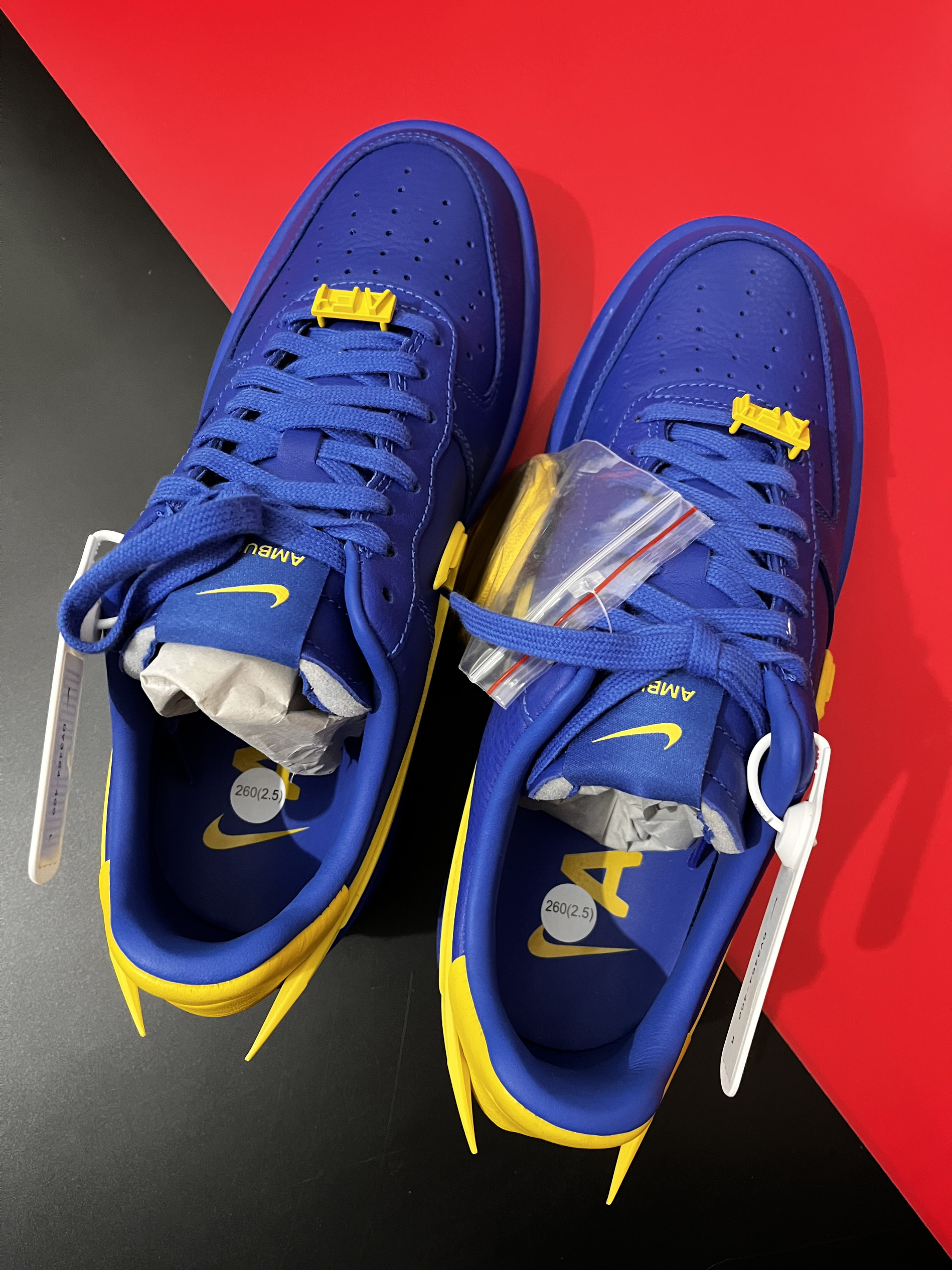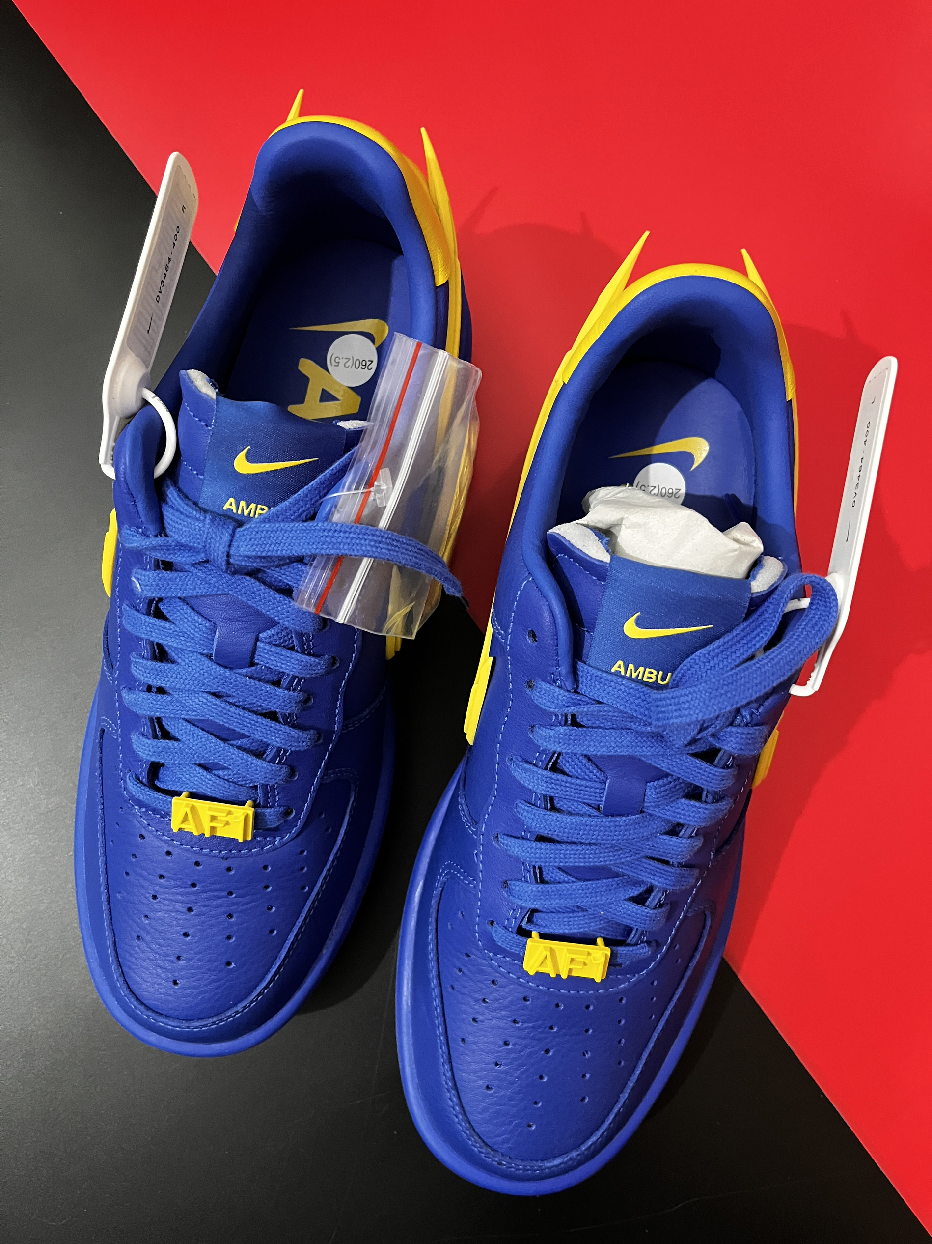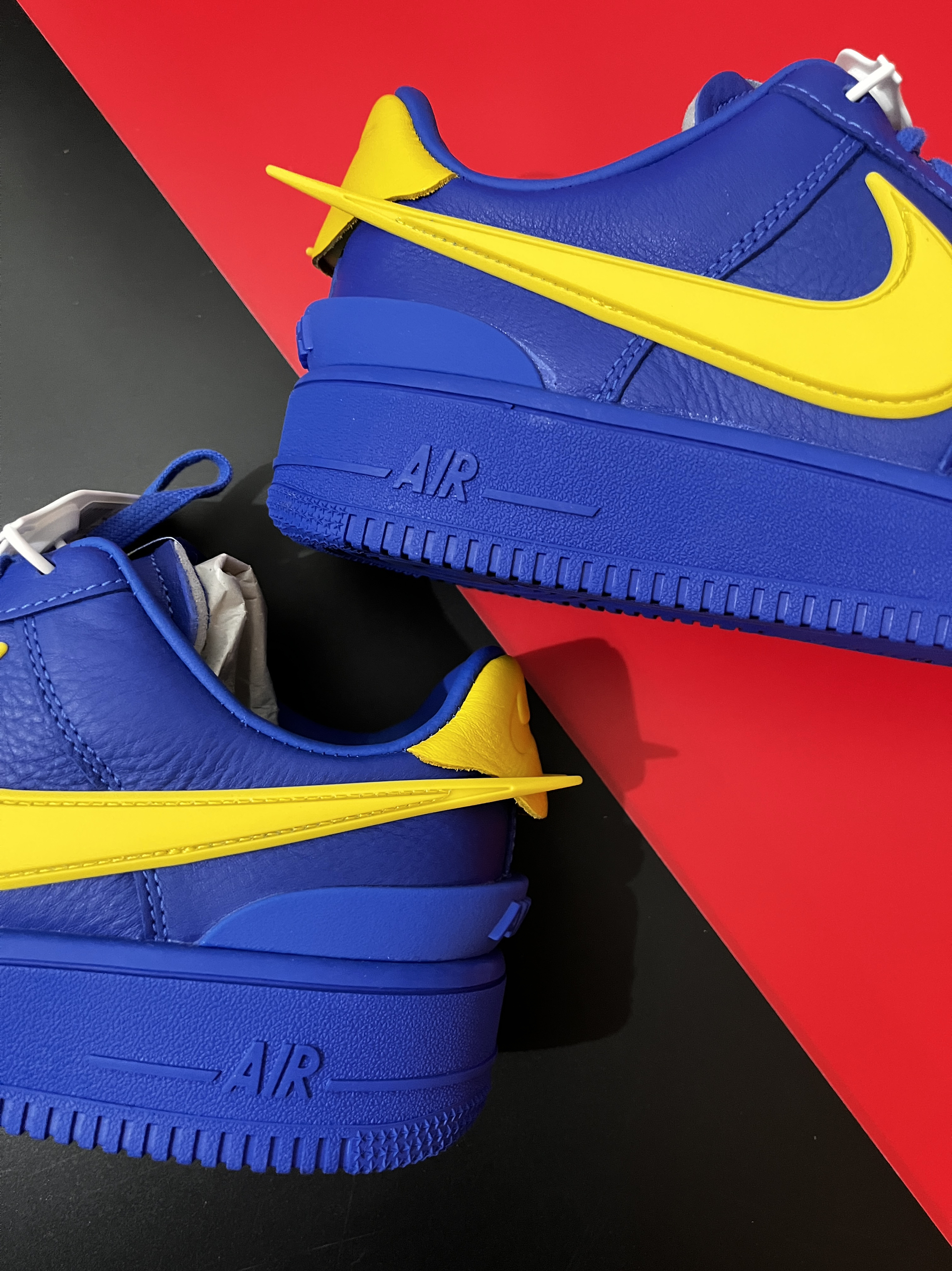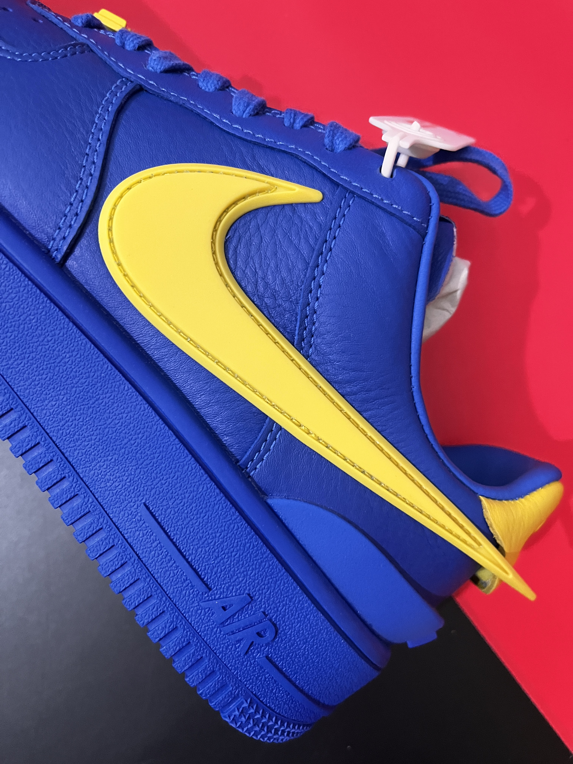 🔷这一双ambush与nike联名的蓝色af1,实物拿到手后,我的第一感受便是它的做工以及设计诚意满满,高级感十足! 🔷深蓝色的鞋身非常引人注目,配合上鞋子两侧非常拉风的黄色钩子,辨识度极高。如果你穿上这一双鞋子上街,回头率绝对拉满! 🔷值得一提的是,该款空军一号定位是SP级别,所以它的鞋面材质摸起来非常的柔软舒服,鞋盒采用的是一个黑色硬鞋盒,看起来很高级! 🔷可能有很多朋友担心这一双空军一...