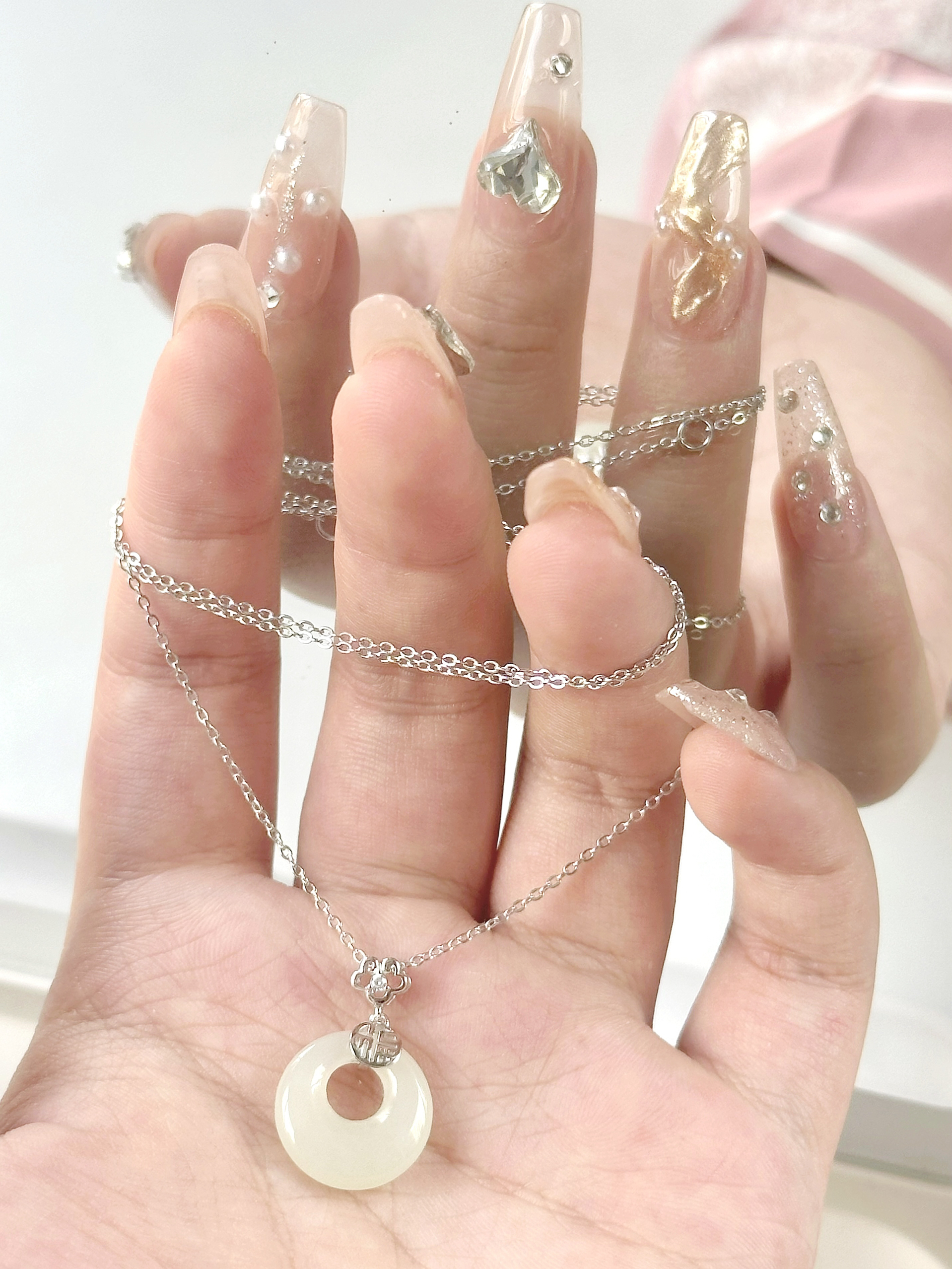 麻麻收到这个生日礼物发朋友圈炫耀✨ 我被姨姨们嘎嘎夸噜!!! 是宫主的平安如意项链! 和田玉平安扣与锆石如意结合 搭配金色的银质链条⛓️ 大气又显贵!! 它的寓意是“岁岁常欢,如意平安” 蕴含着我对麻麻的祝福💗 麻麻也需要礼物的仪式感!!