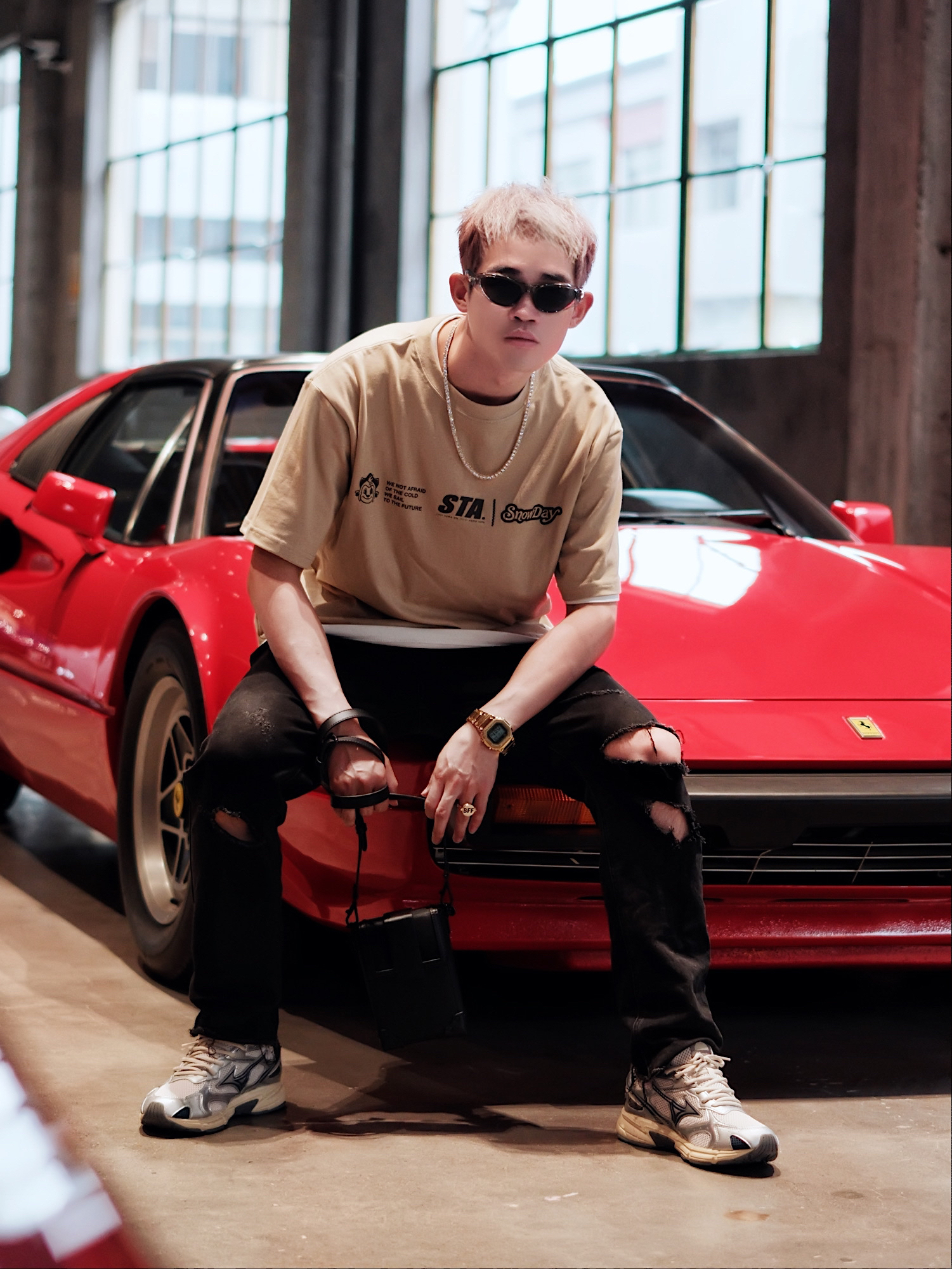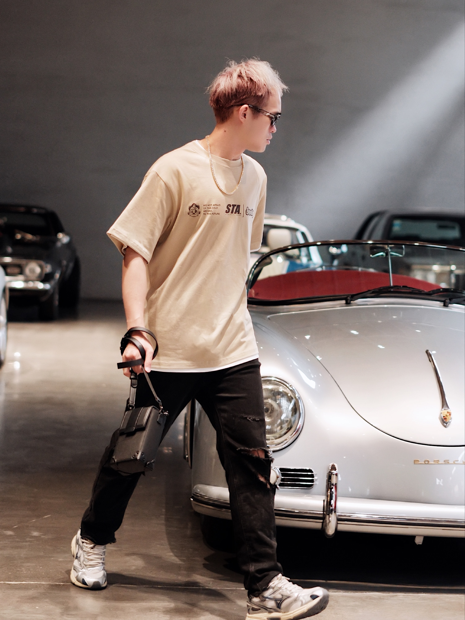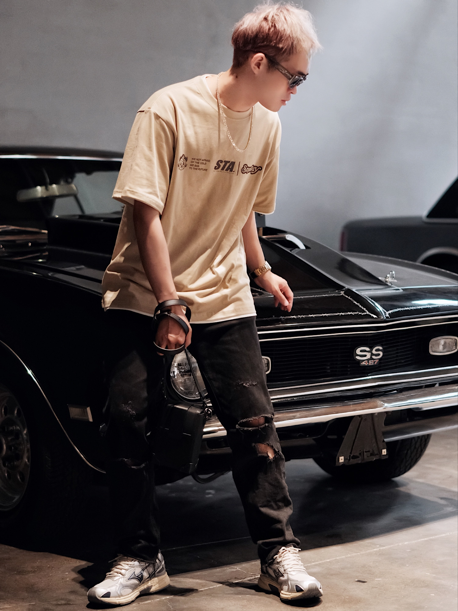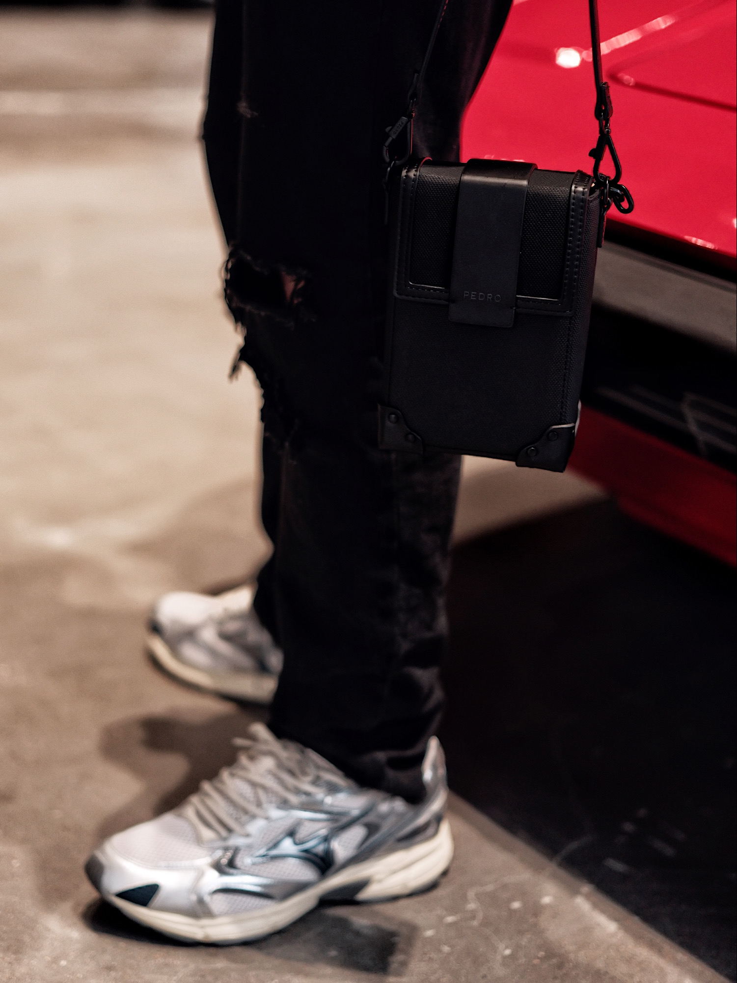 有点小帅!我说的是今天的穿搭😎 很喜欢这种有点高街感的痞帅风 复古中性的简约T恤👕 加上超有标志性的破洞牛仔裤👖 酷感一下子就上来了。 - 经典的黑色包包🧳是百搭配饰首选 简单高级,实用性还巨高💯! - 鞋子可以试试这种带有点小厚底的运动鞋👟 网面材质真的巨透气舒服 加上质感银的经典撞色搭配 穿搭起来有点淡淡的未来科技感哦💫。 - #Urbancore