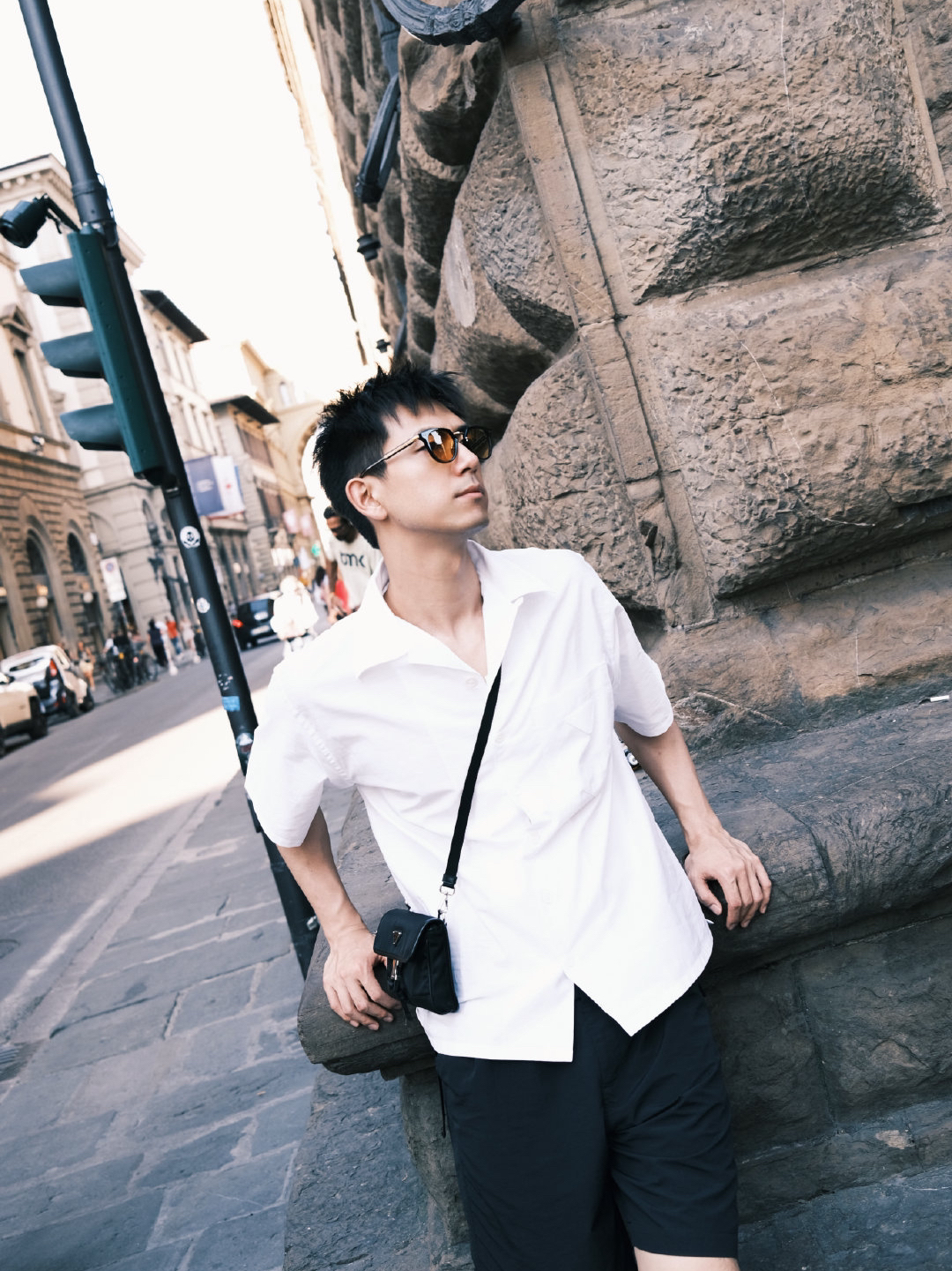 李现今日份的白衬衫穿搭,搭配黑色系的短裤,运动鞋也真的标准帅哥! 他的少年感真的太绝了!!你懂吧?!!!