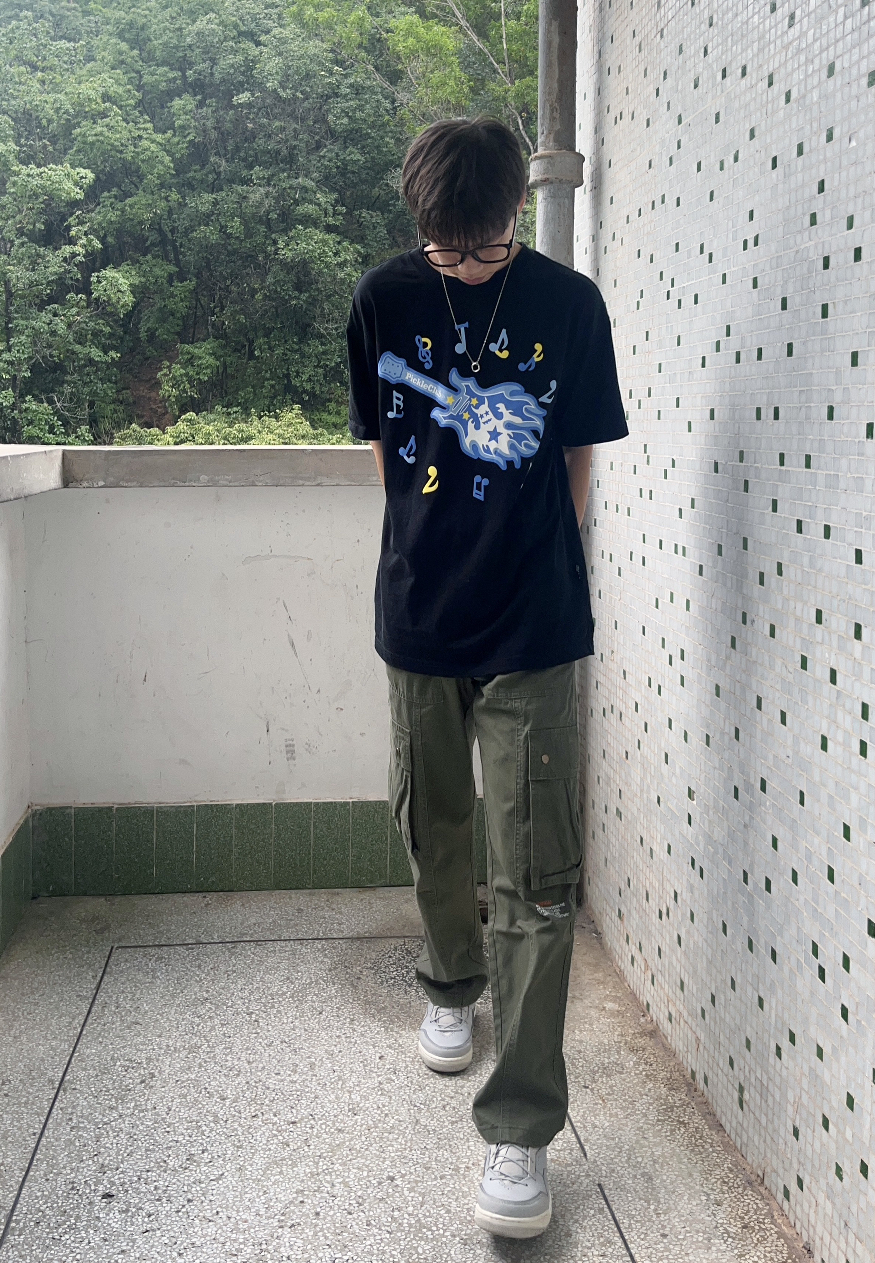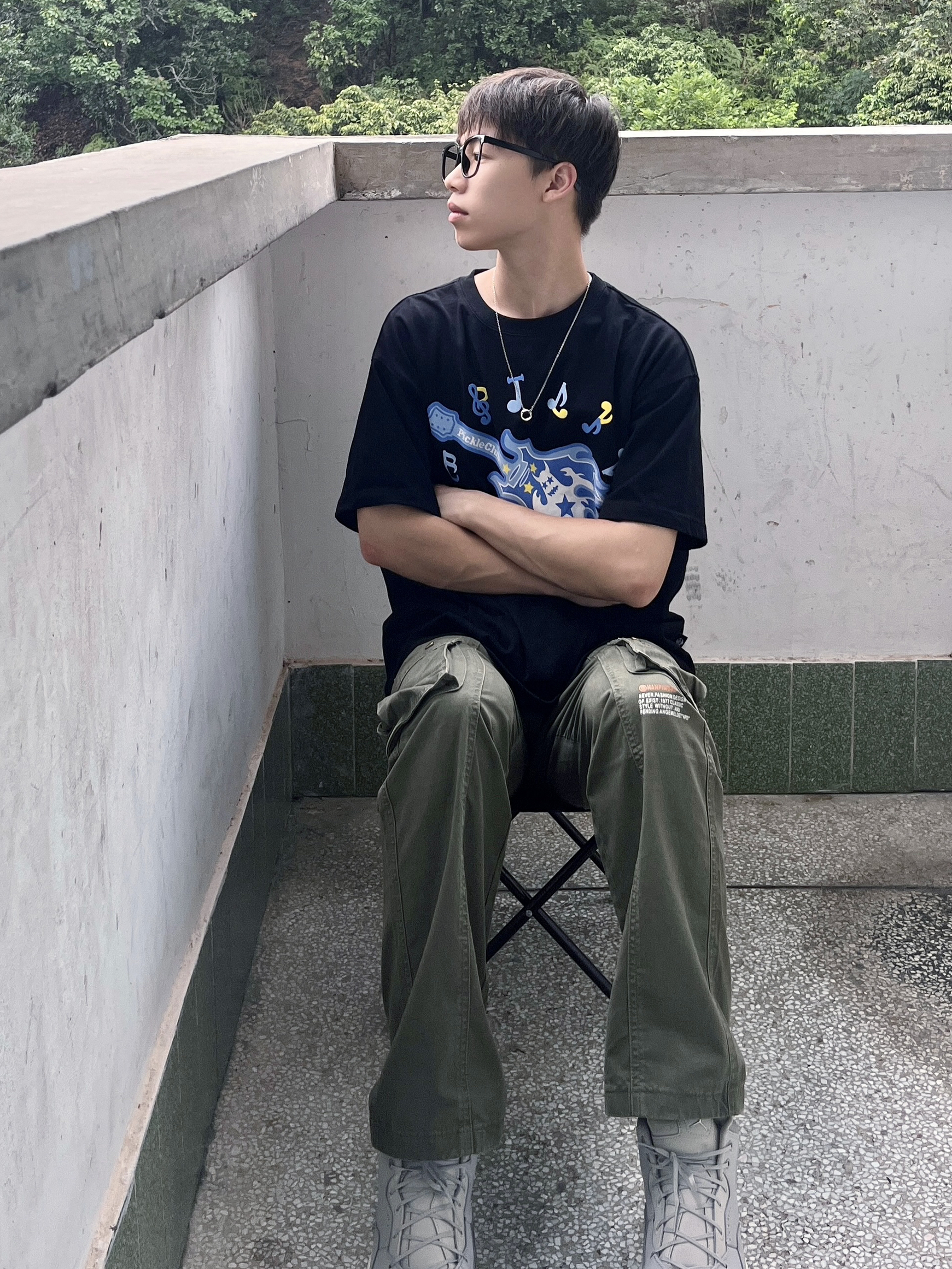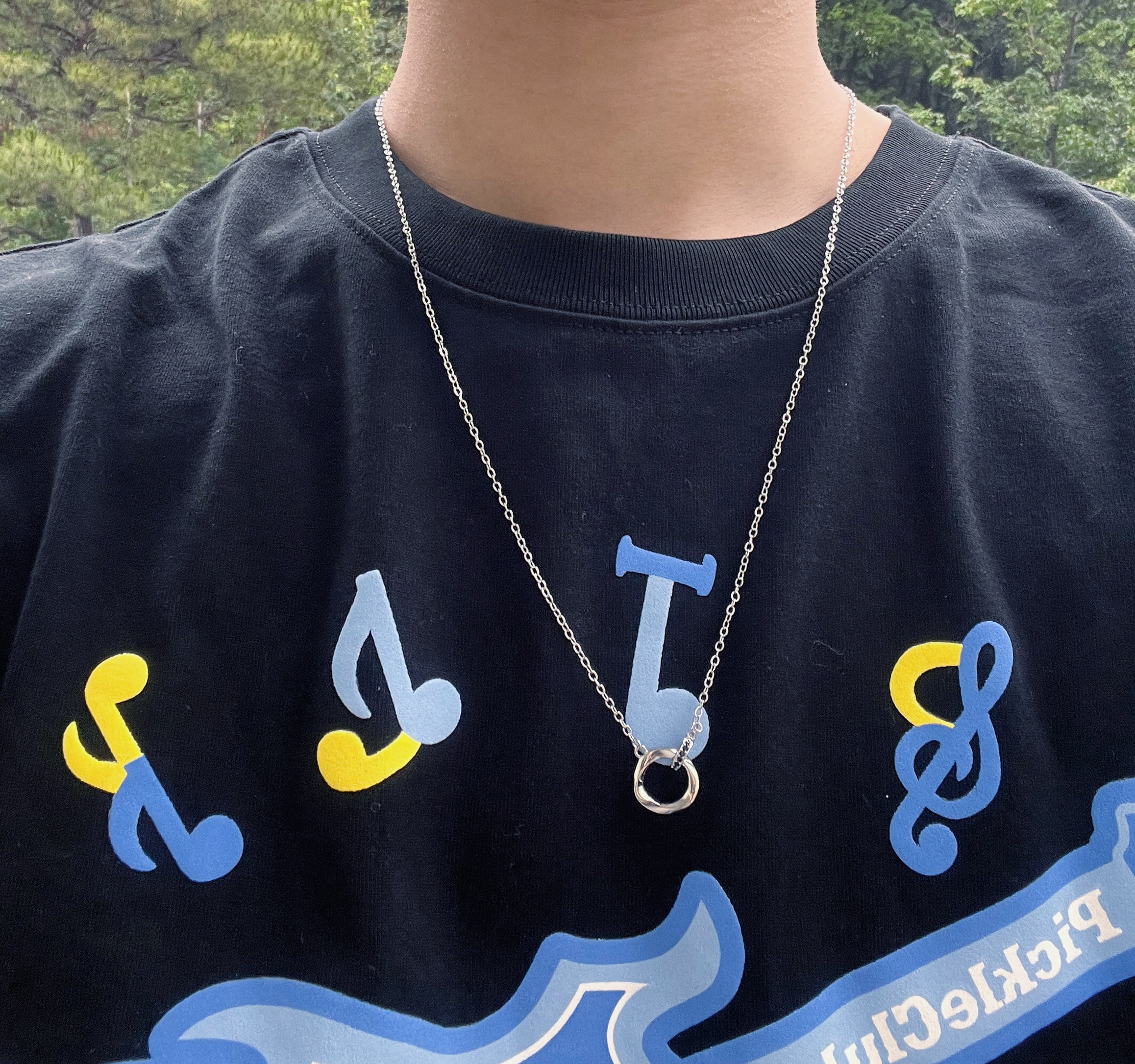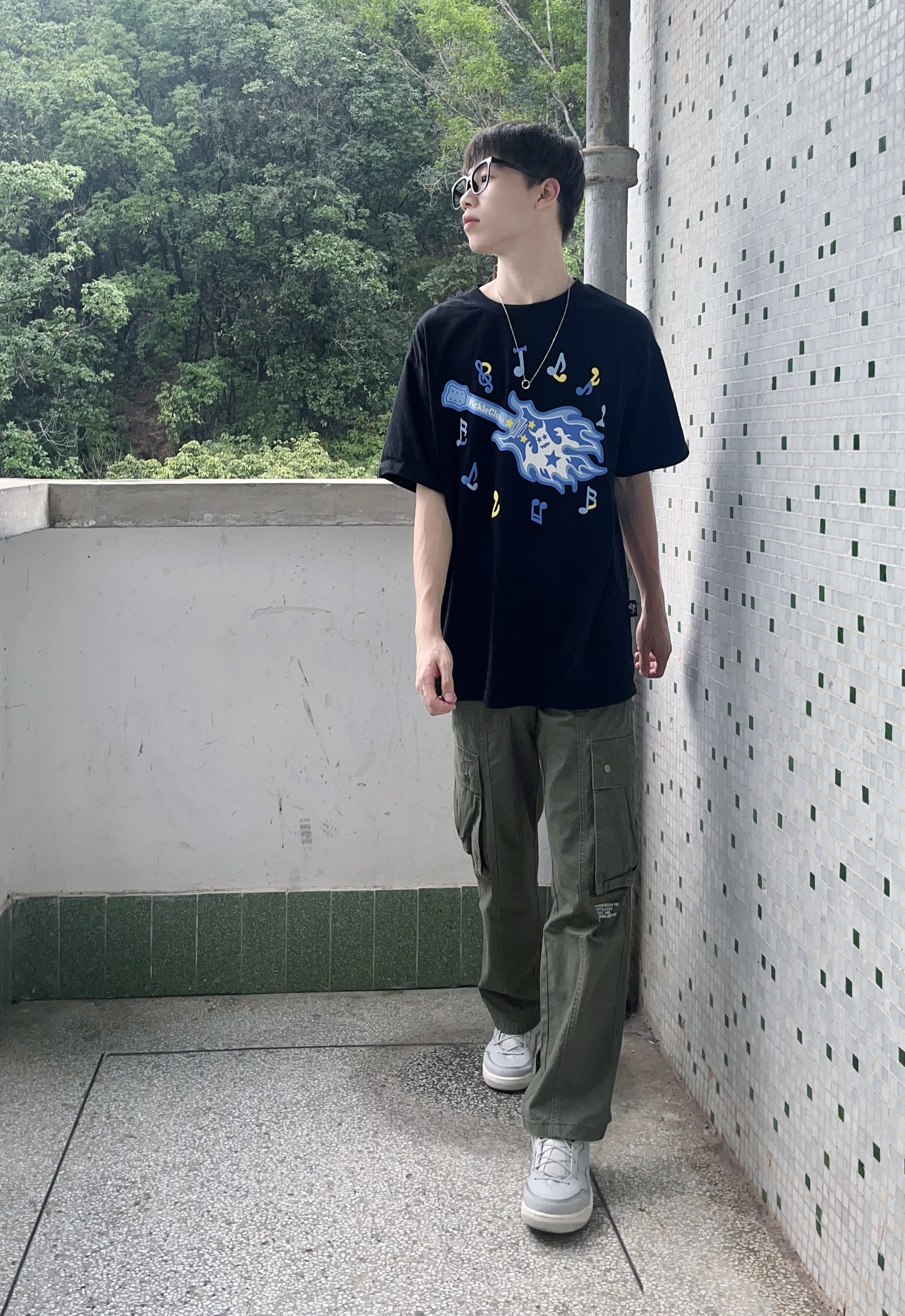 今天带来的是情侣项链穿搭分享 - 衣服是黑色美式风格的印花短袖 搭配上军绿色的直筒工装裤和灰色复古板鞋 / 脖子上戴的P&N家的莫比乌斯环情侣项链 男款是黑色碎钻 女款是白色 设计精美 环环相扣 戴上去很有质感 送人自戴都非常合适 - 一套下来 百搭又好看