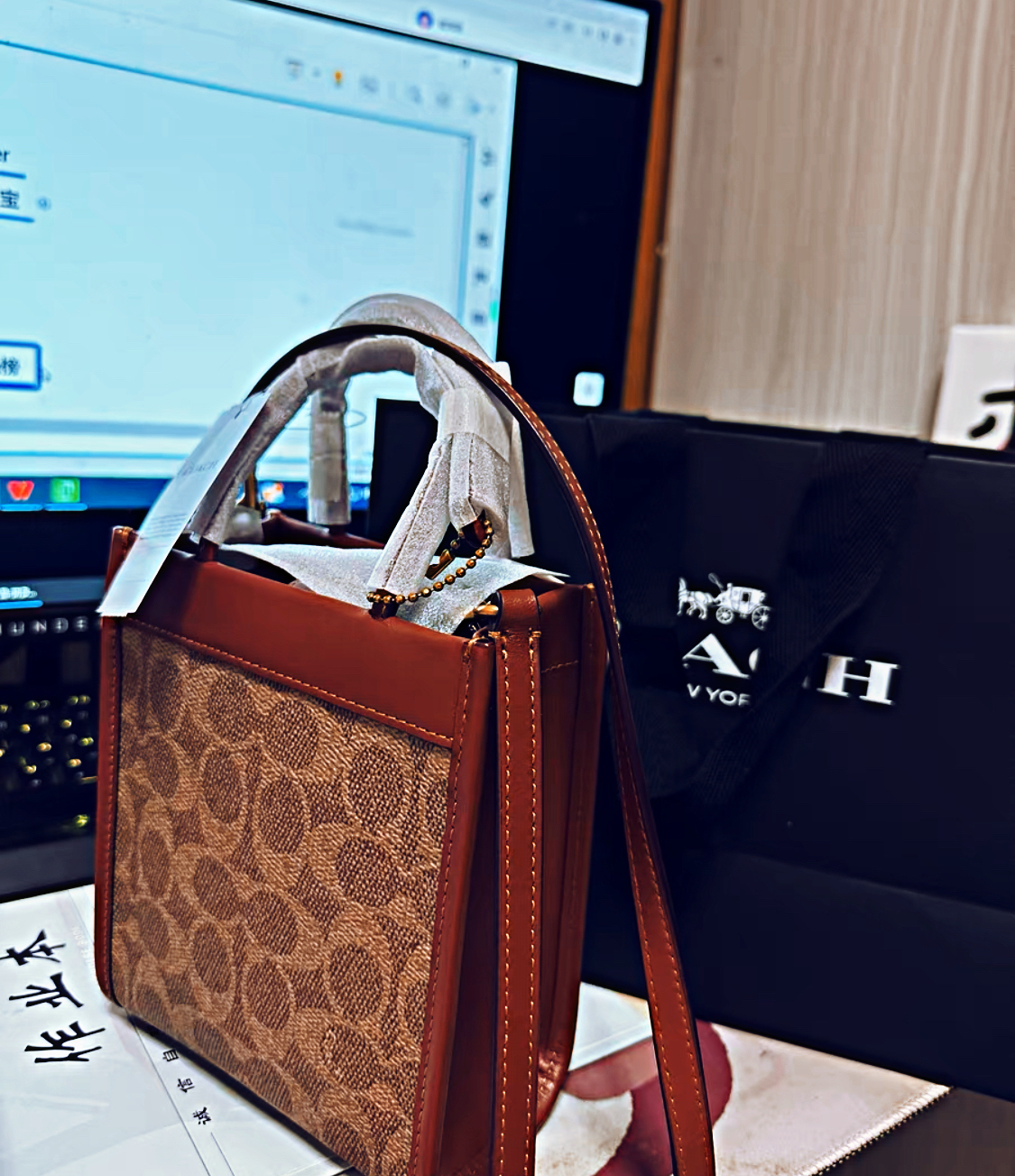 本篇笔记关联了Coach Cashin 14 小号 经典标志皮革托特包手提单肩斜挎包 卡其色拼色等商品,为用户提供真实的使用体验和购买参考。