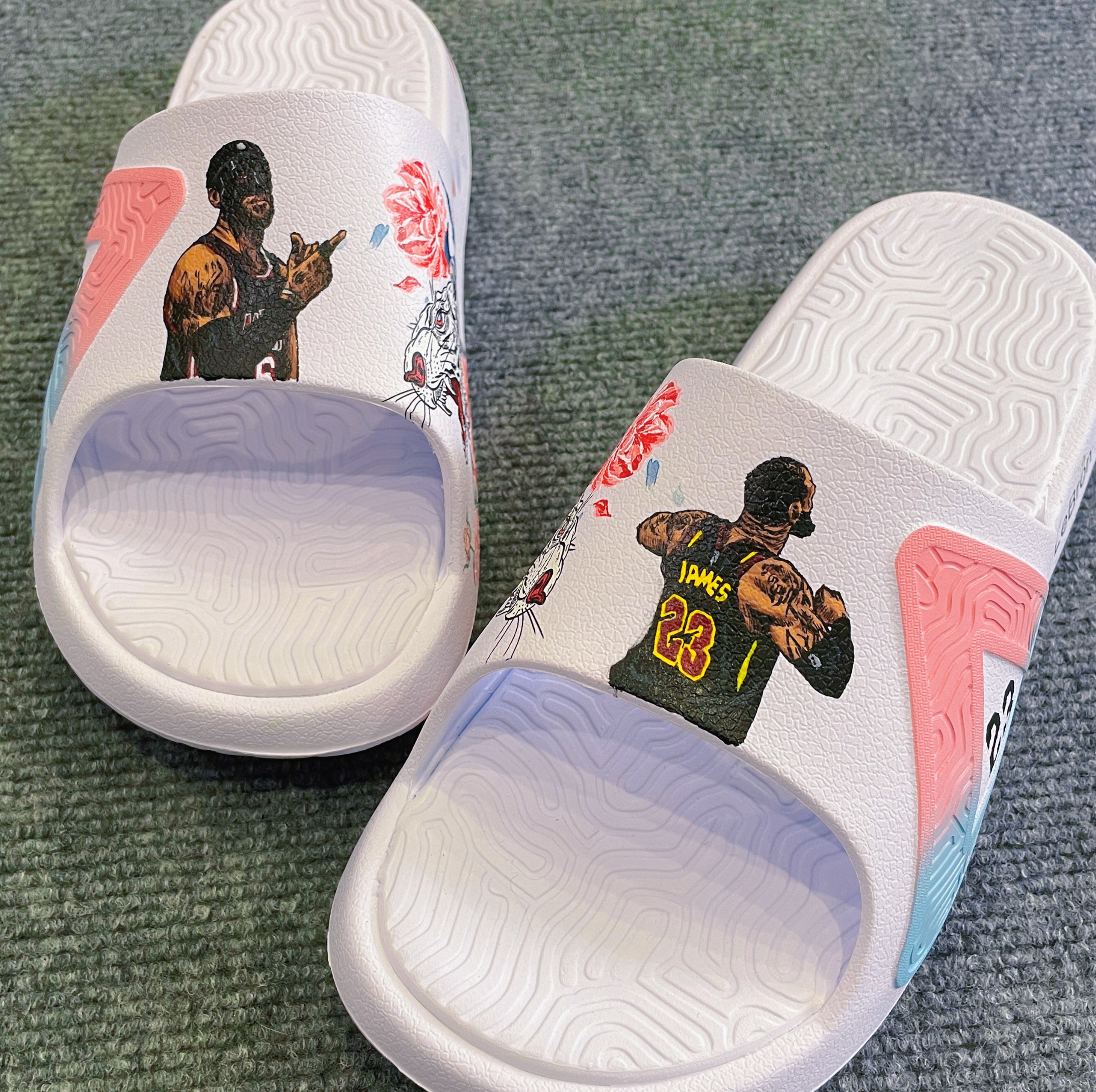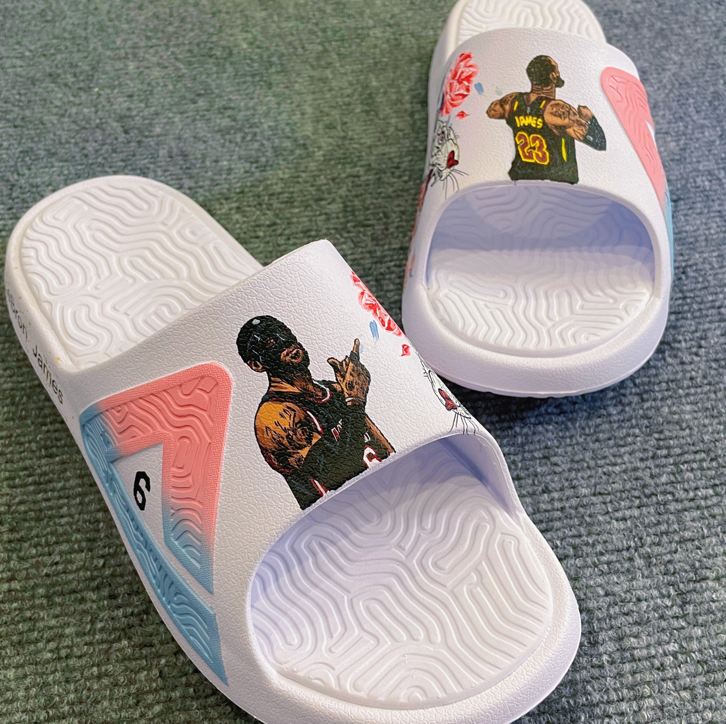 🎁七夕快到了,你是否正在为送什么礼物而烦恼呢?不妨试试手绘一双涂鸦拖鞋吧!今天我来分享一下关于詹姆斯主题的涂鸦拖鞋diy,让你的七夕礼物更加特别! 📝首先,准备好一双拖鞋和图画工具。然后,开始画图啦!在左脚的拖鞋上,我们可以画上23号骑士队时期詹姆斯所,右脚的拖鞋则可以画上詹姆斯曾经效力过的热火队6号时期的。 ✌🏻完成之后,在整个图案周围填加些简单但有趣的小涂鸦泼墨元素和写上“LeBron Ja...