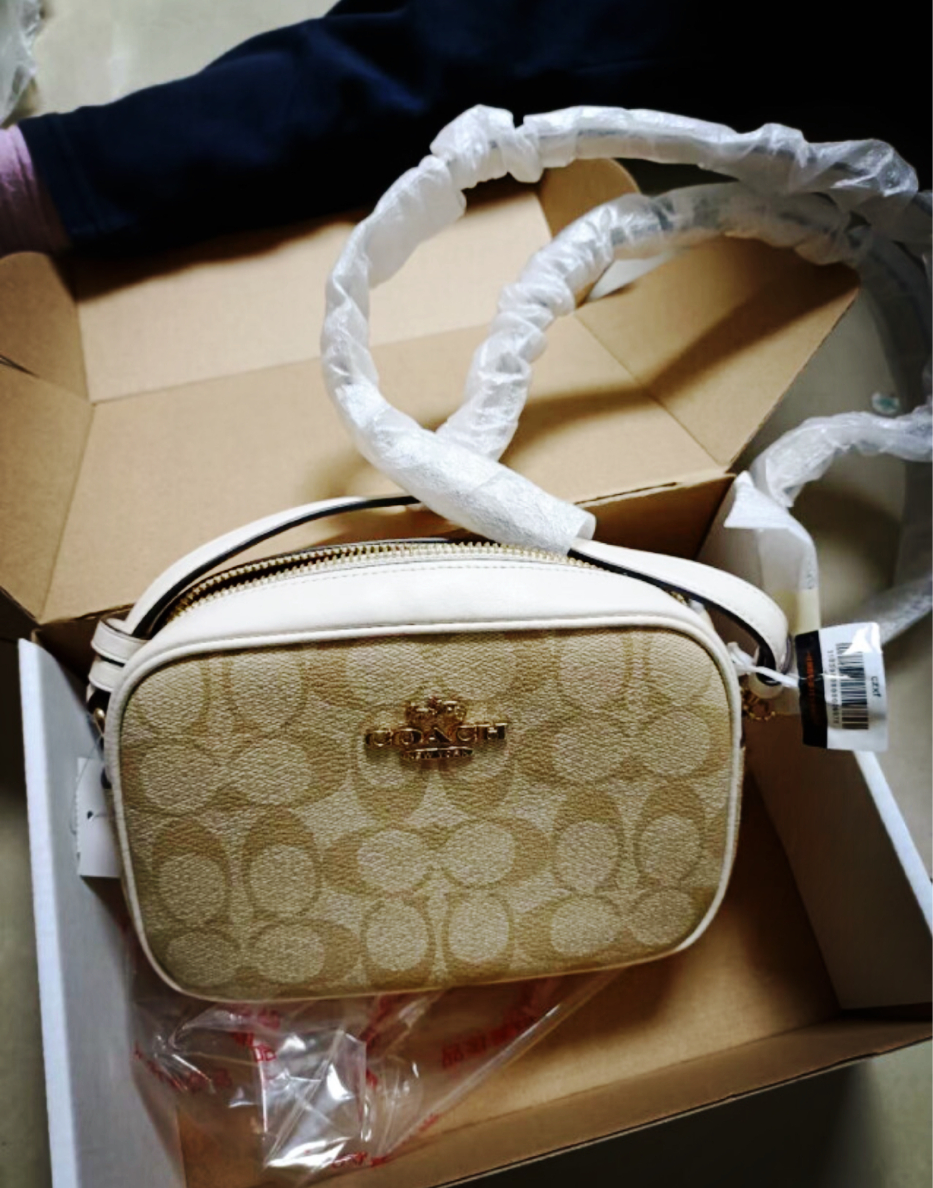 本篇笔记关联了Coach Camera 19 小号 经典标志性老花涂层帆布配皮拉链开合皮革满印单肩相机包斜挎包 白色配卡其 等商品,为用户提供真实的使用体验和购买参考。