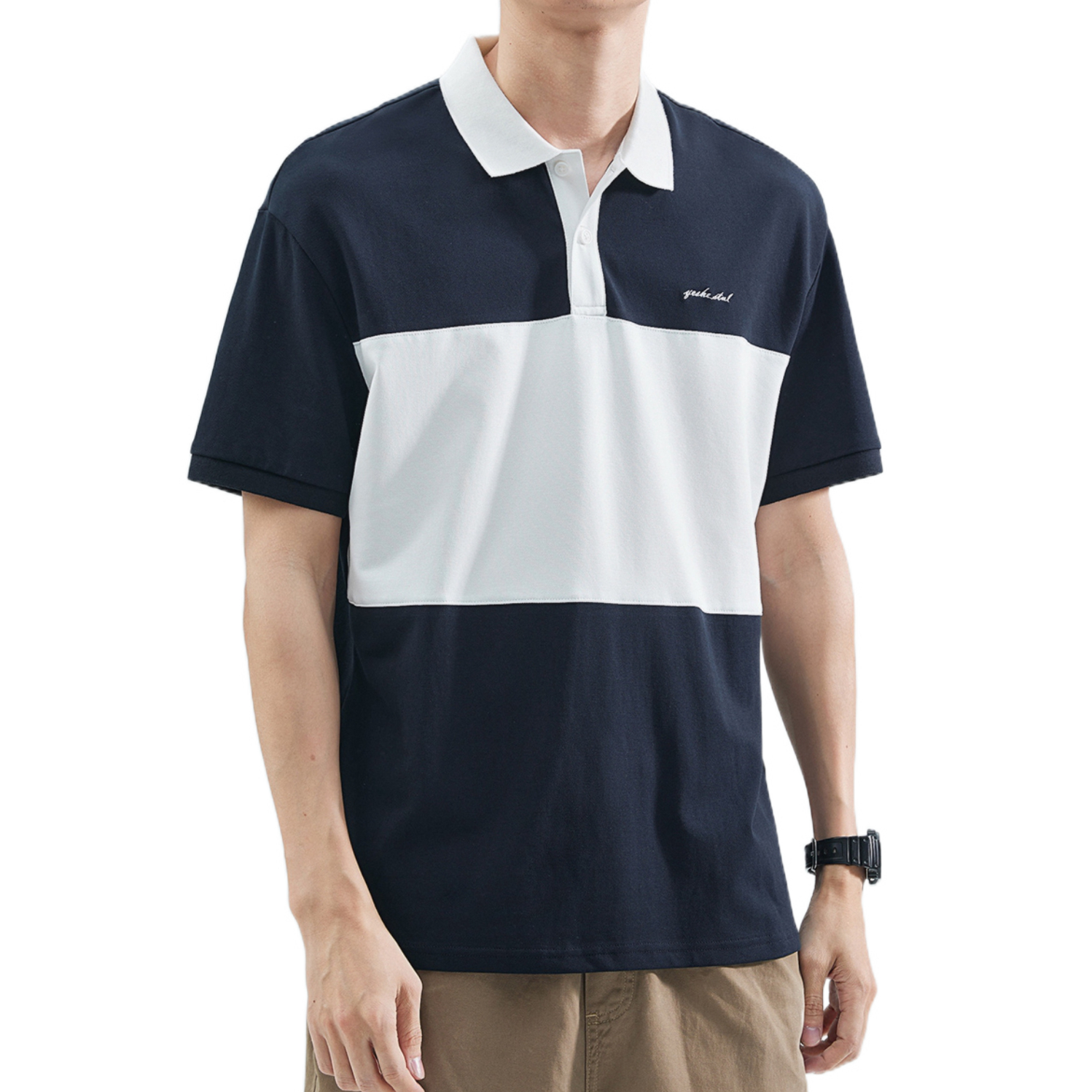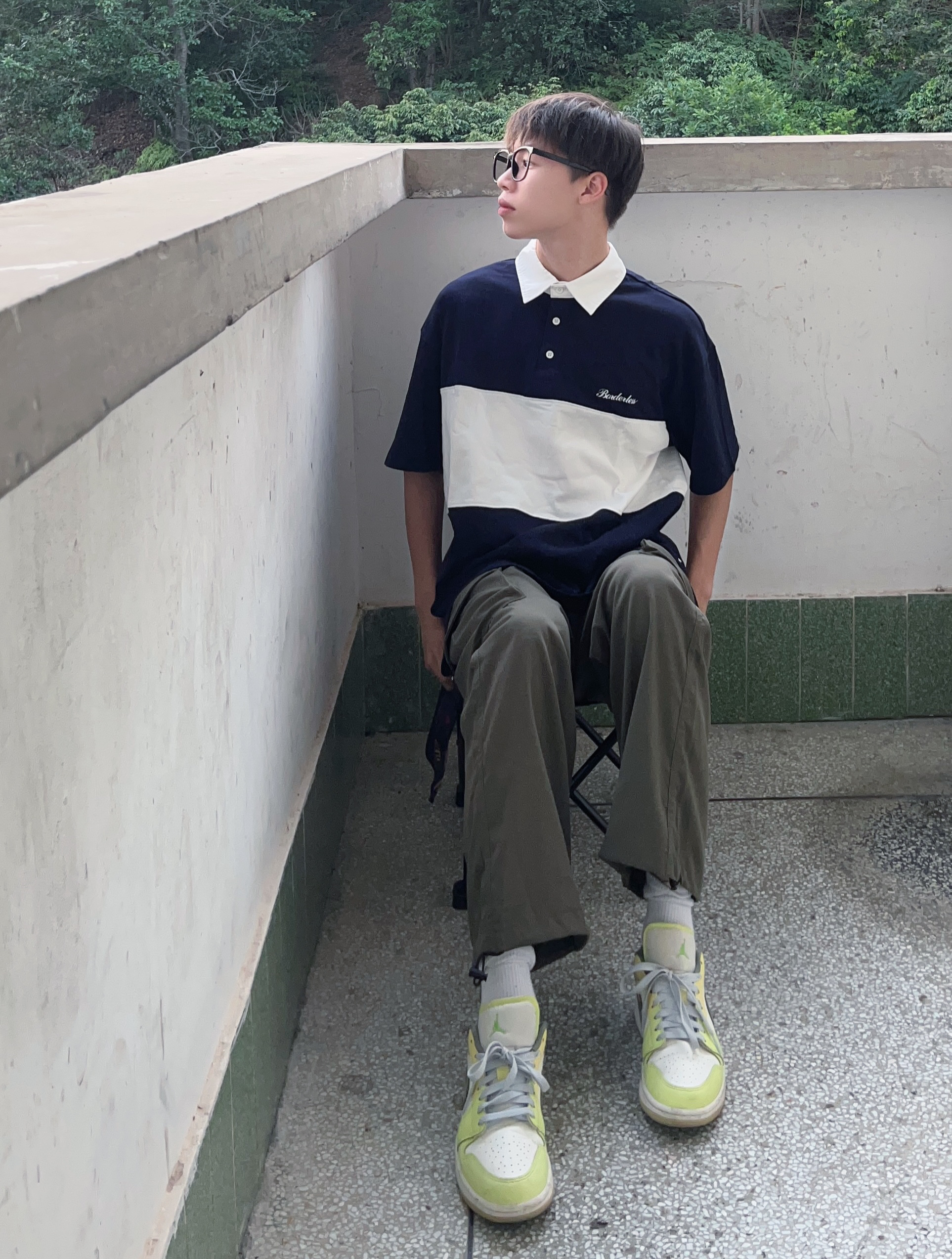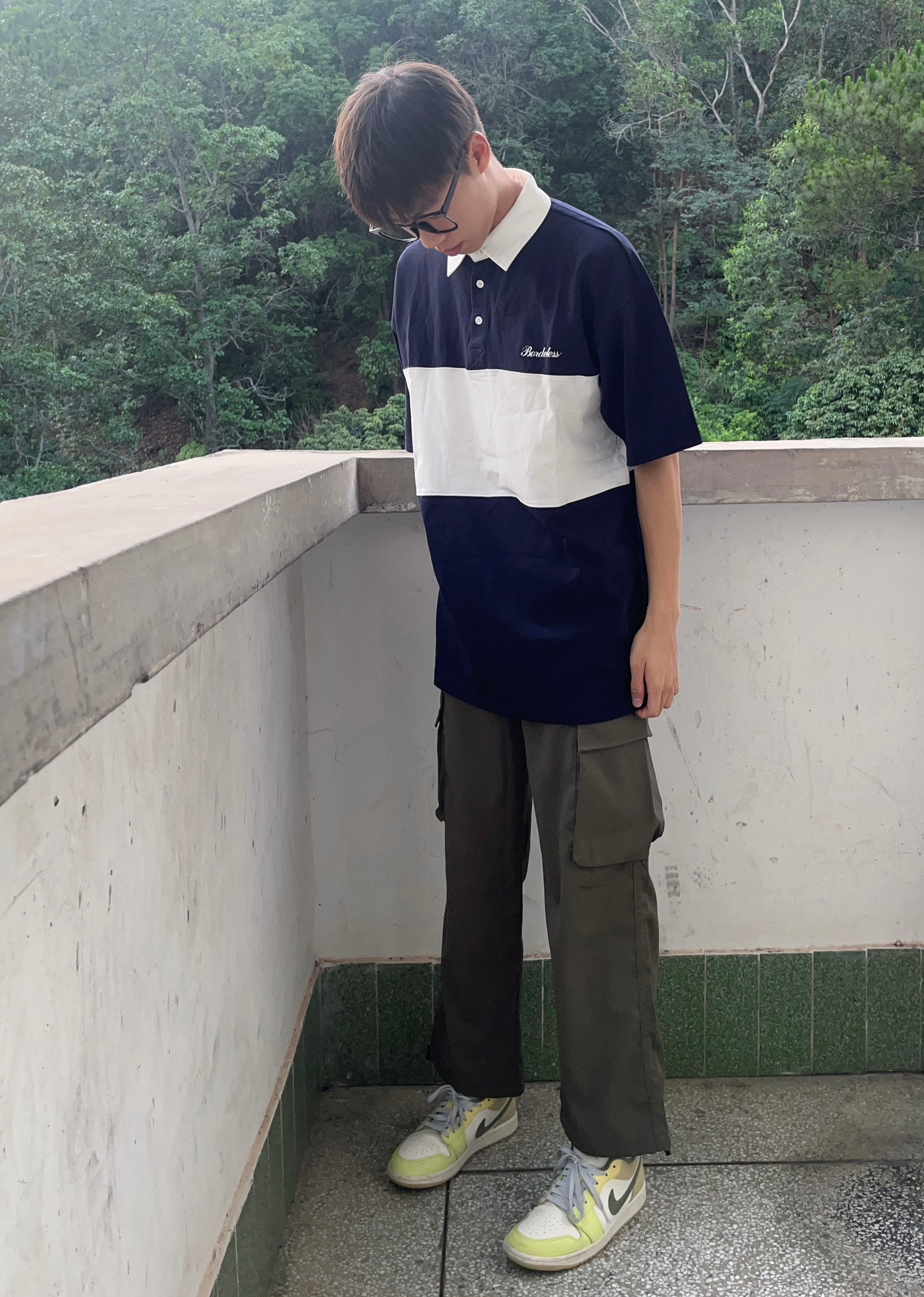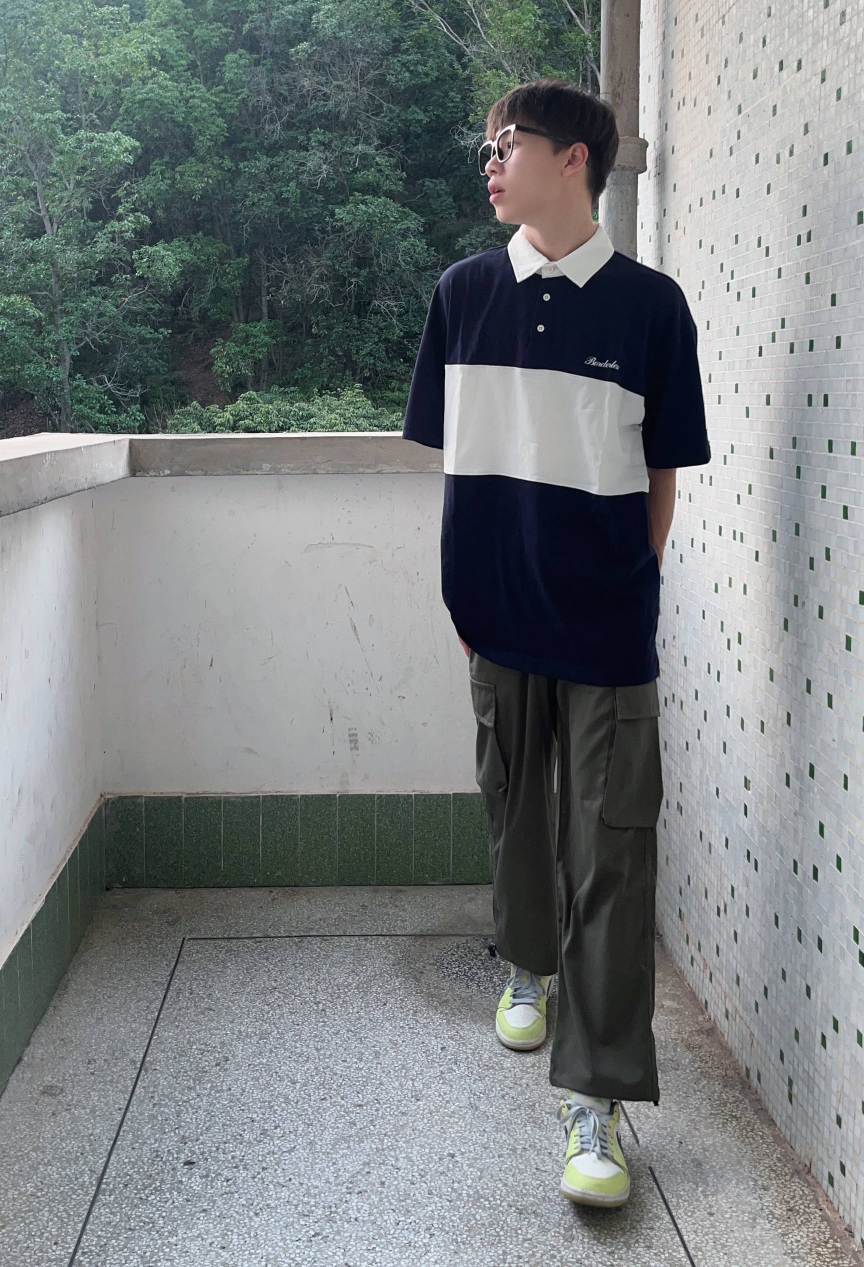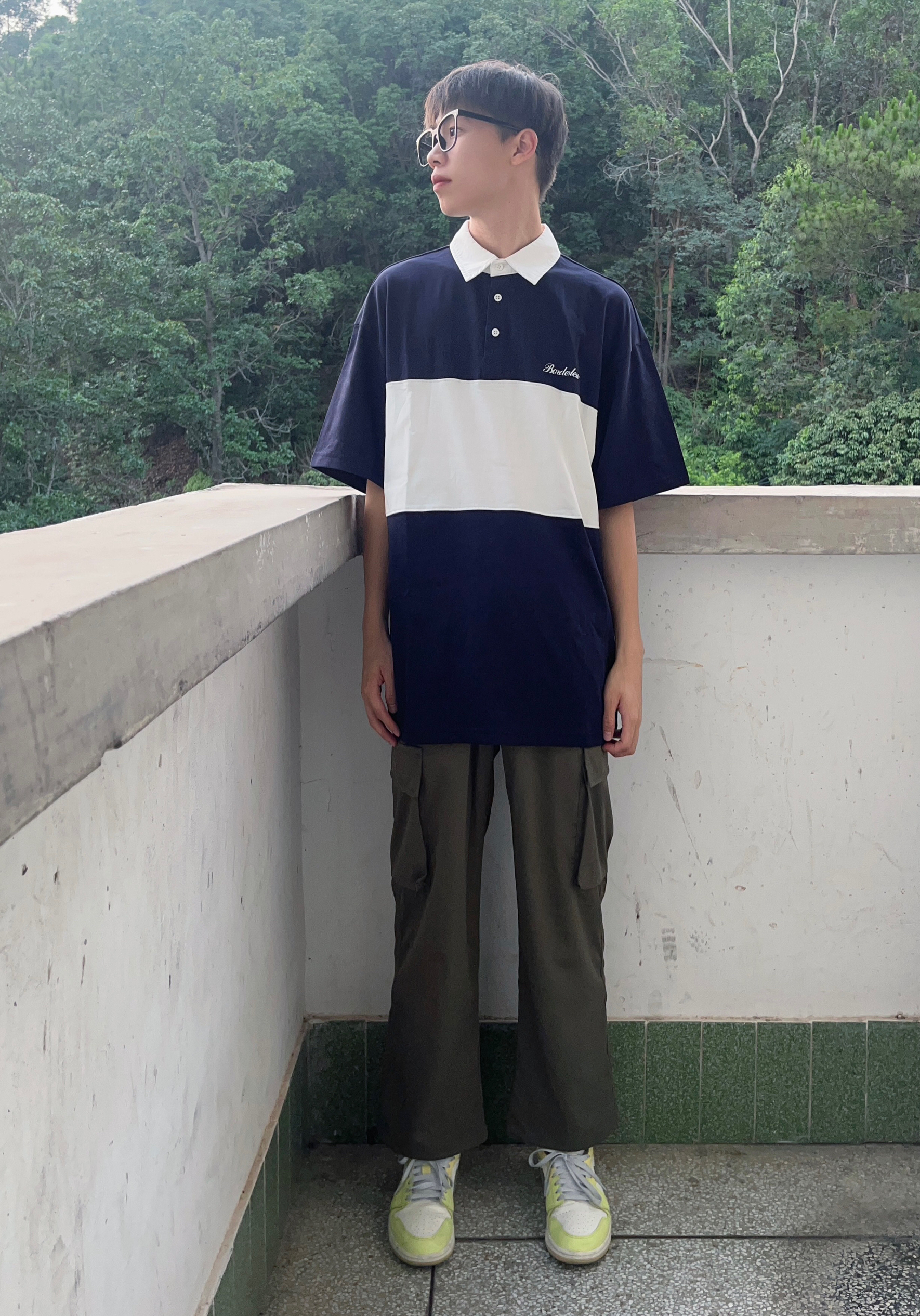 - 日系宽松Polo衫搭配军绿色工装裤 再上脚一双黄绿色百搭板鞋 一套下来百搭又好看 很难不爱 -