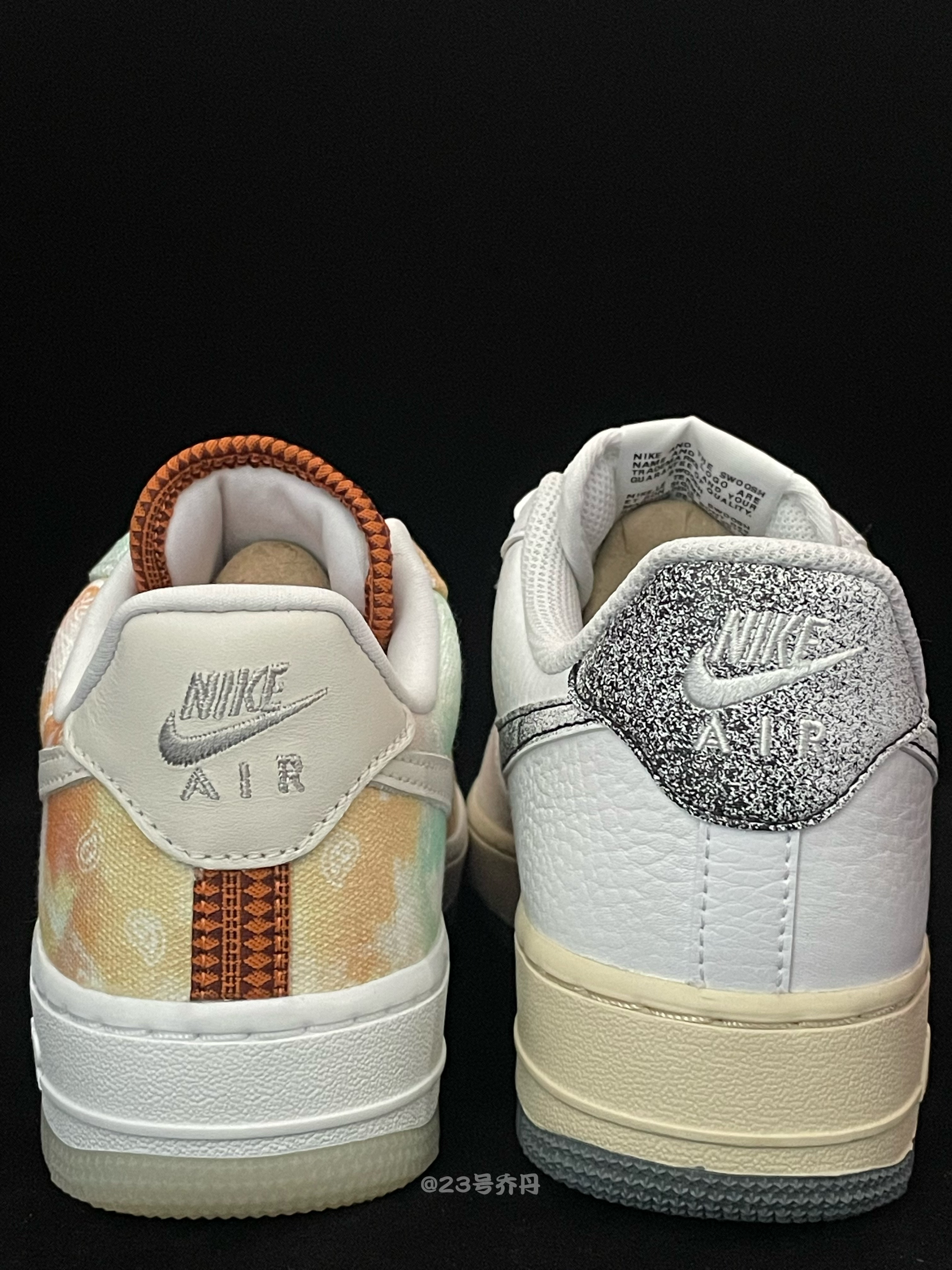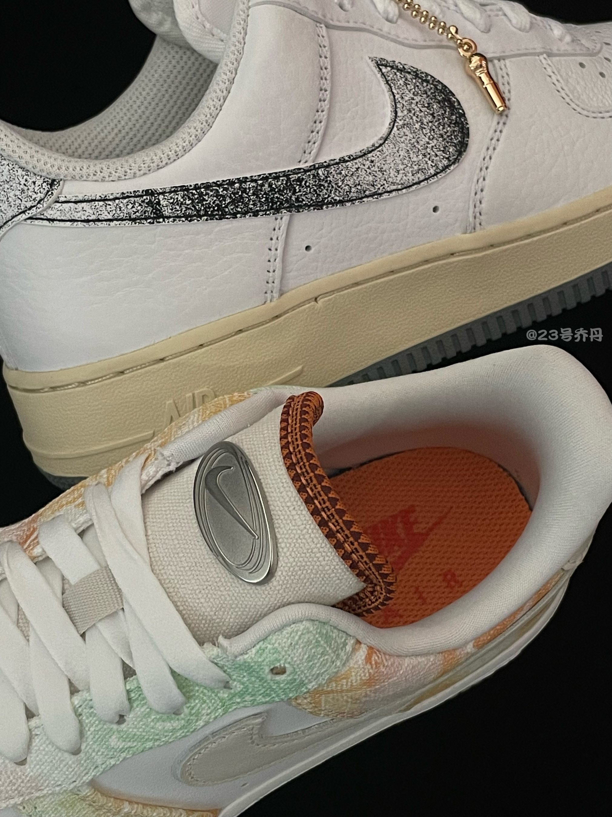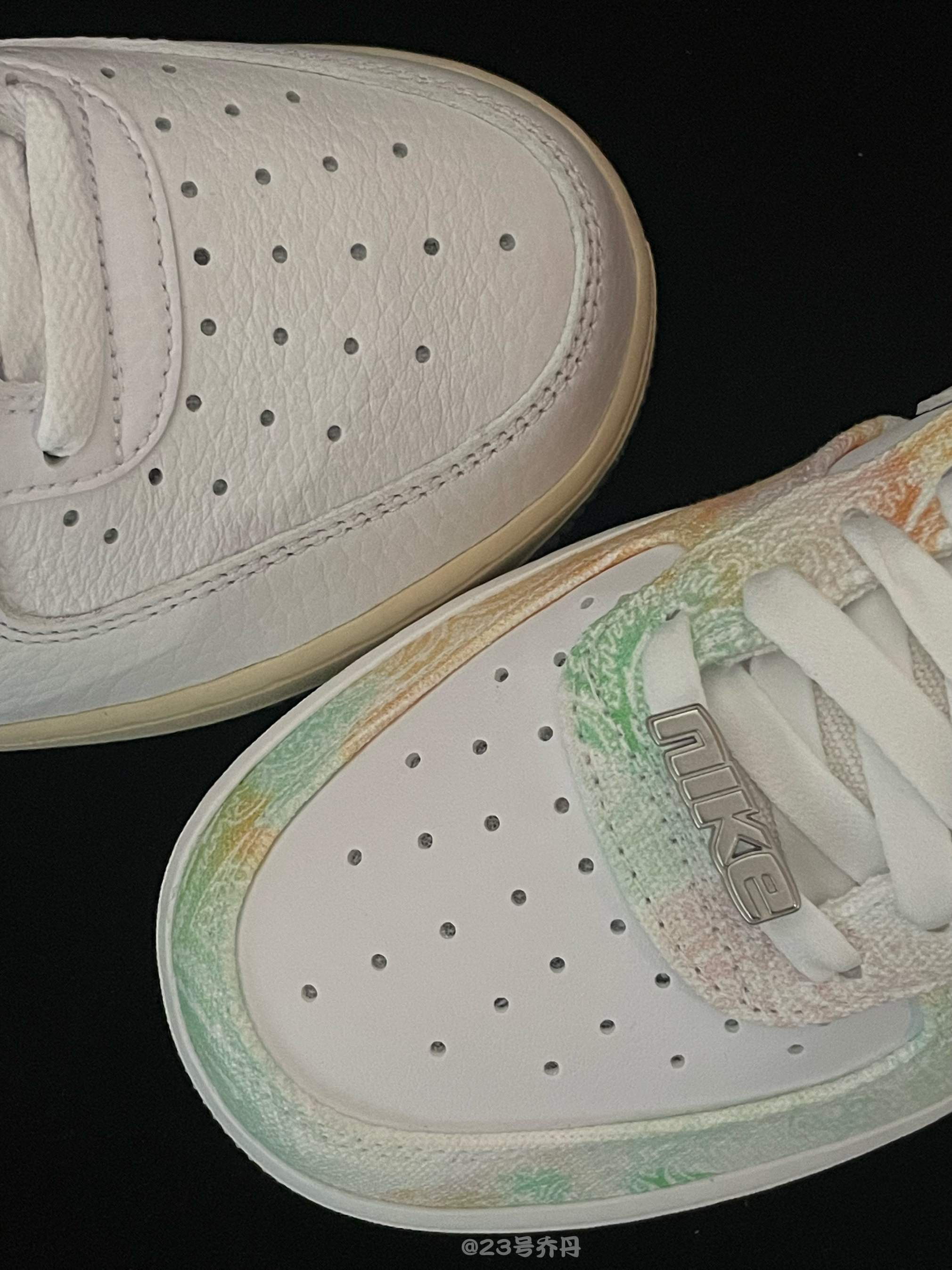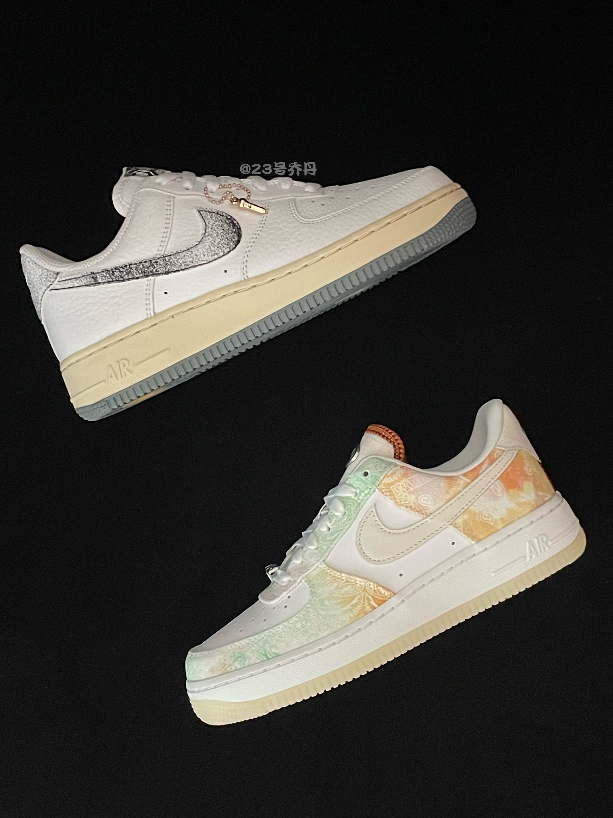 今天给大家分享两双颇有艺术感的板鞋 Air Force 1 Low『白色』&『白灰』 🌟『白色』板鞋鞋面以白色为主色调 鞋身框架选用了水洗霓虹色调的织物材质 并且还设计有腰果花和Swoosh等图案 鞋带扣和鞋舌标签都使用了银色金属材质 白色的中底和淡黄色半透明水晶大底收尾 🌟『白灰』板鞋鞋面运用了白色荔枝纹路皮革 鞋侧Swoosh与鞋尾呈现出烟灰色...