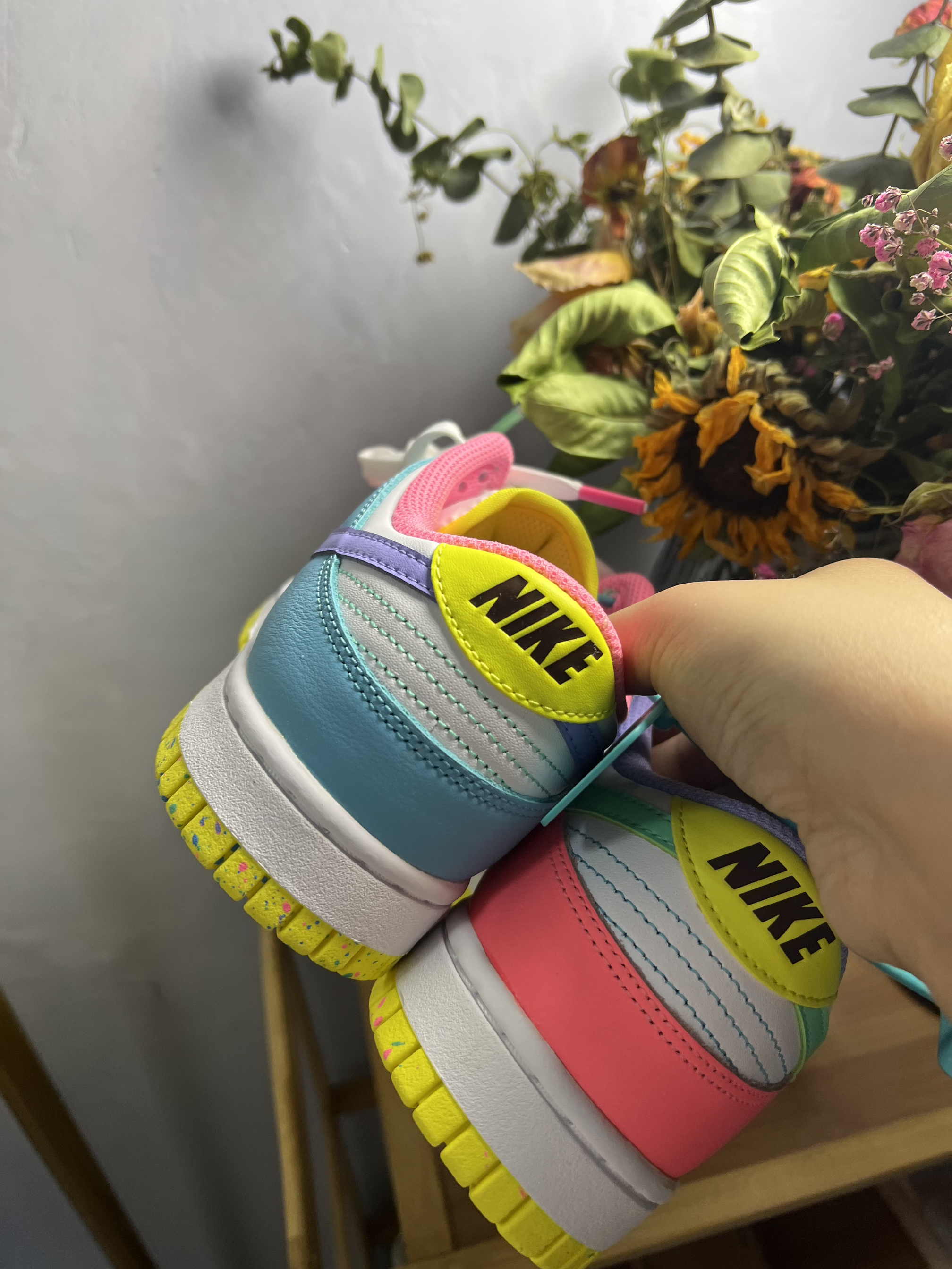 Nike Dunk Low SE“easter candy”彩蛋糖果防滑轻便 低帮板鞋女款粉白蓝 整体鞋型轮廓酷似当年的 Air Force 1,但又有自己独特的设计风格,复古中透露着青春与活力,同时也有不少小女生会喜欢这种配色。在配色方面,这双 Dunk采用了白、蓝、粉三种颜色,其中最亮眼的就是蓝色部分。鞋面由白色、蓝色和粉色拼接而成,在鞋身内侧的 Swoosh、后跟和内衬位置采用了淡蓝色,非常...