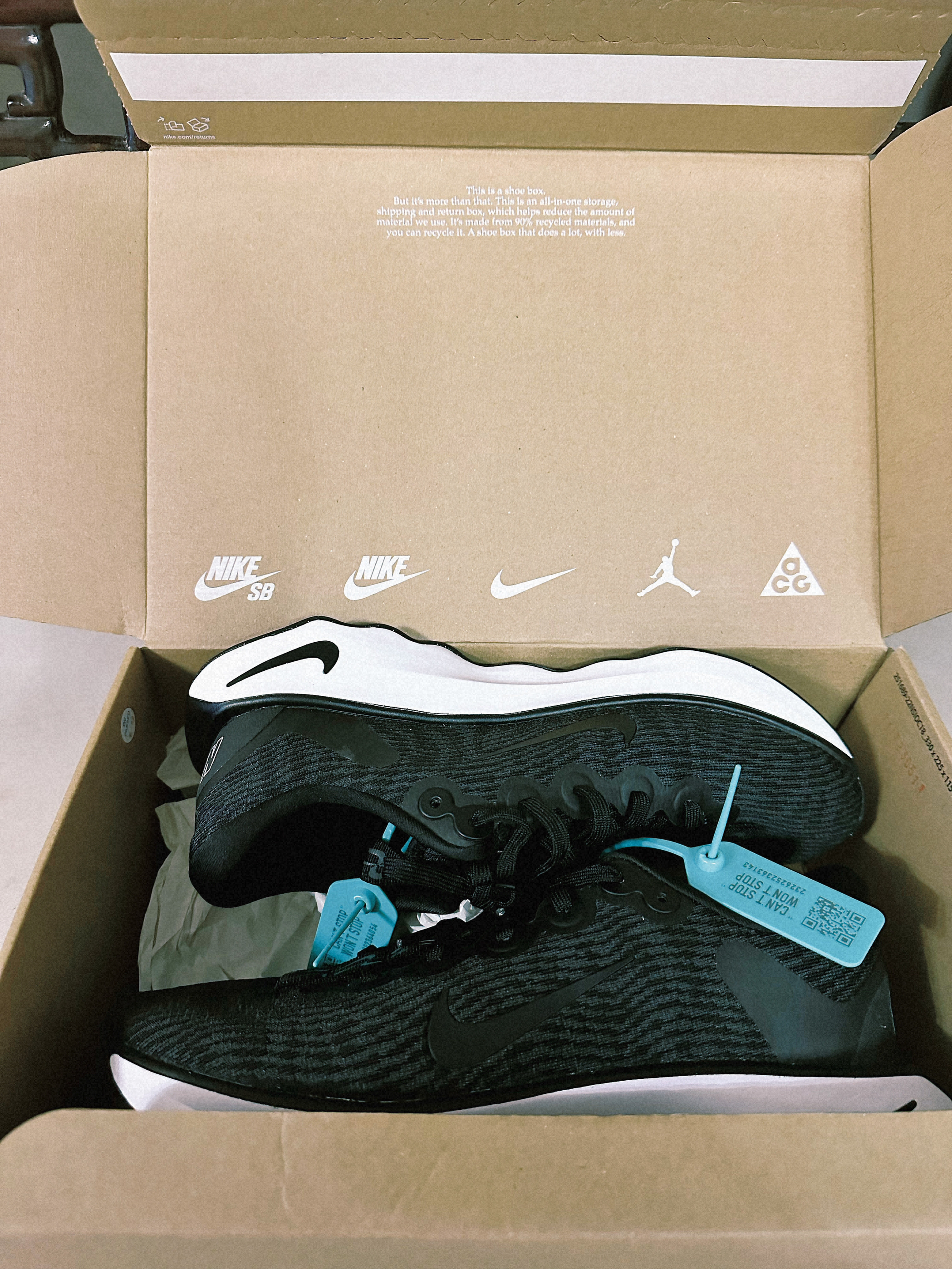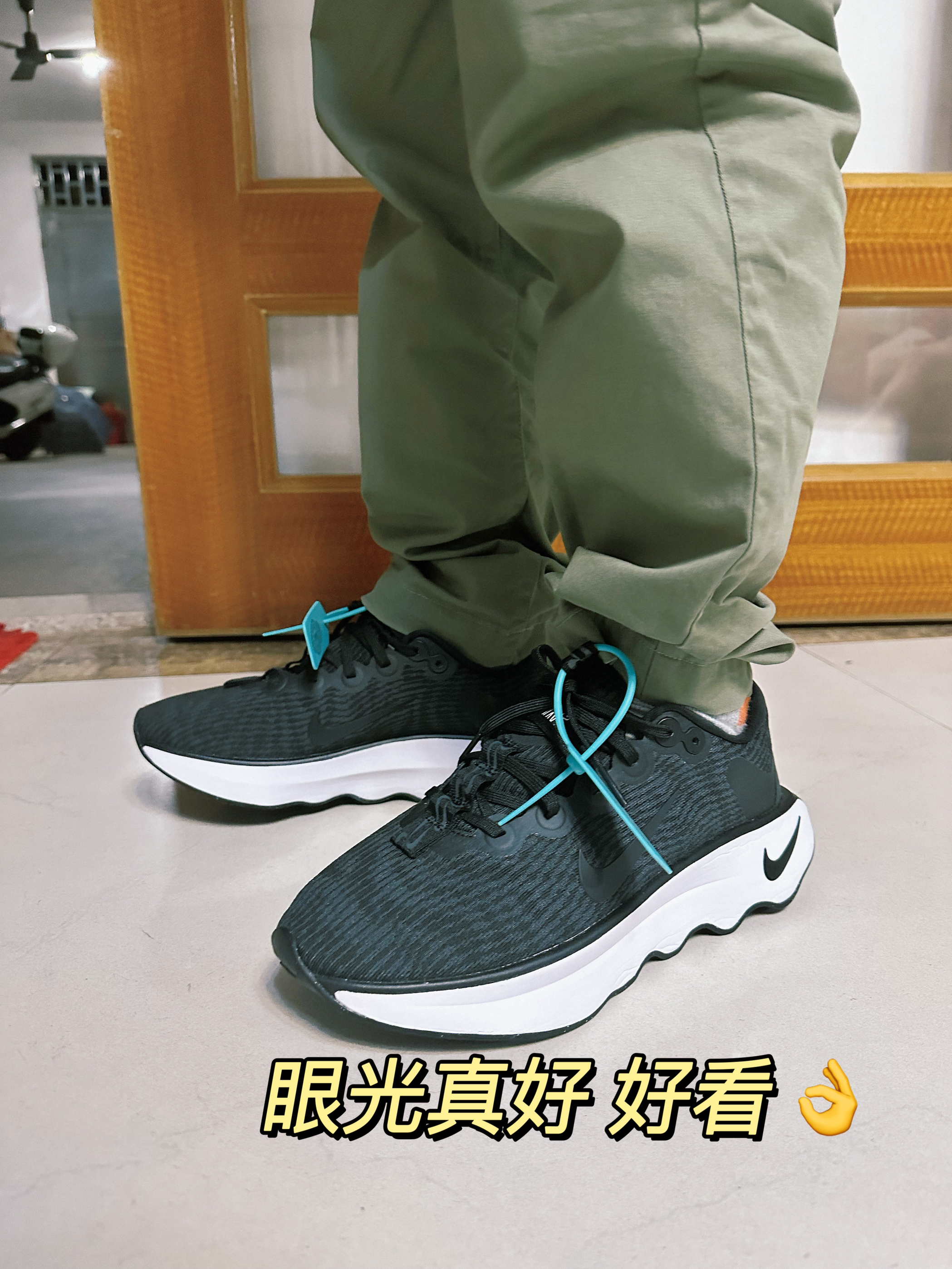 🧩nike motiva 👉第一次买鞋给爸爸 看了看 这对nike motiva最合适了 虽然是全黑 但是低部是白色 黑白搭配 尾巴也有勾勾特出重点 看起来简单利落 也不会老土 ◾微翘的鞋头 可以保护脚趾 鞋底是防滑底纹设计 不易打滑 ✍黑色不怕弄脏 这个鞋子也很轻很透气 夏天穿也很适合