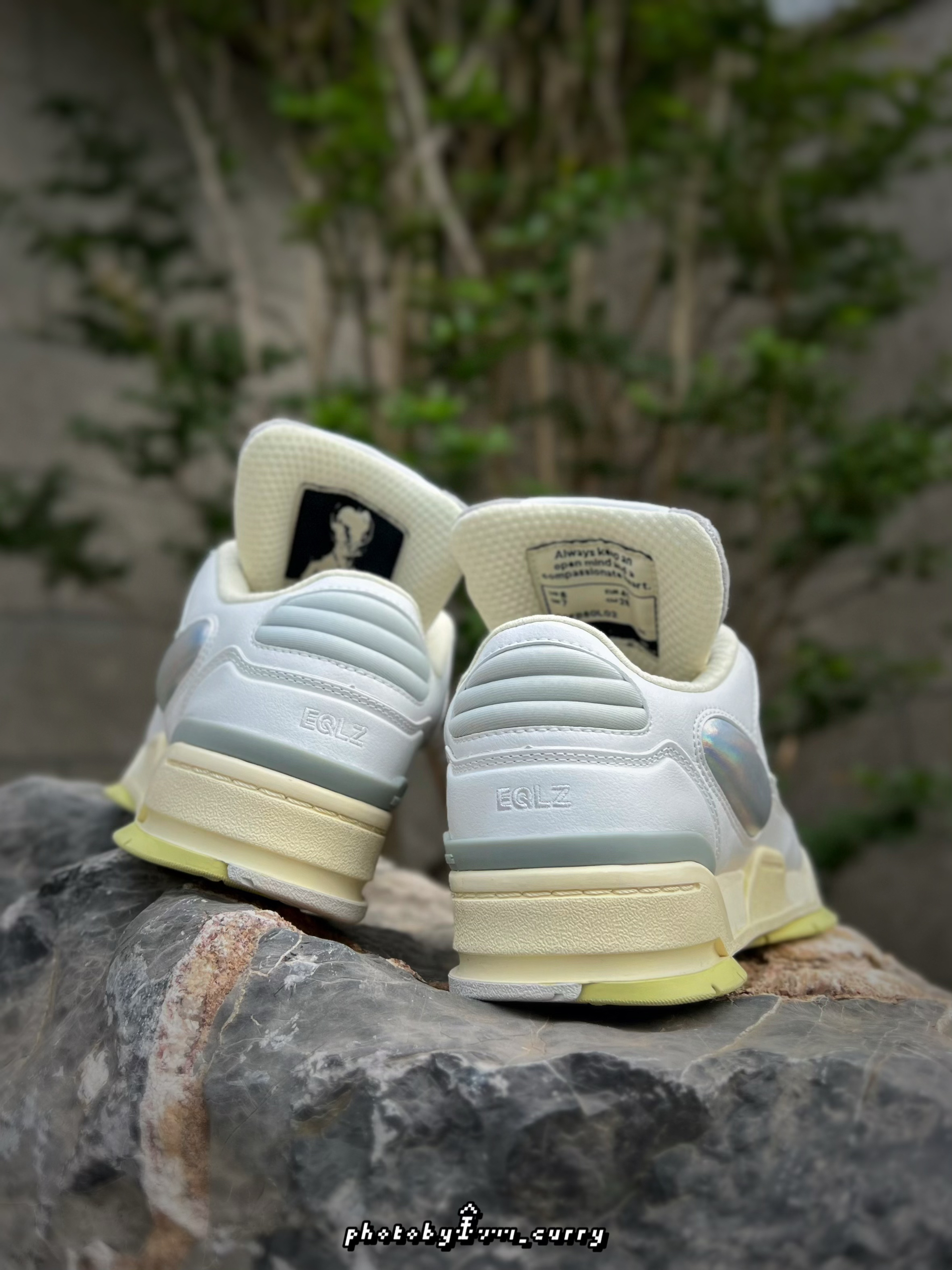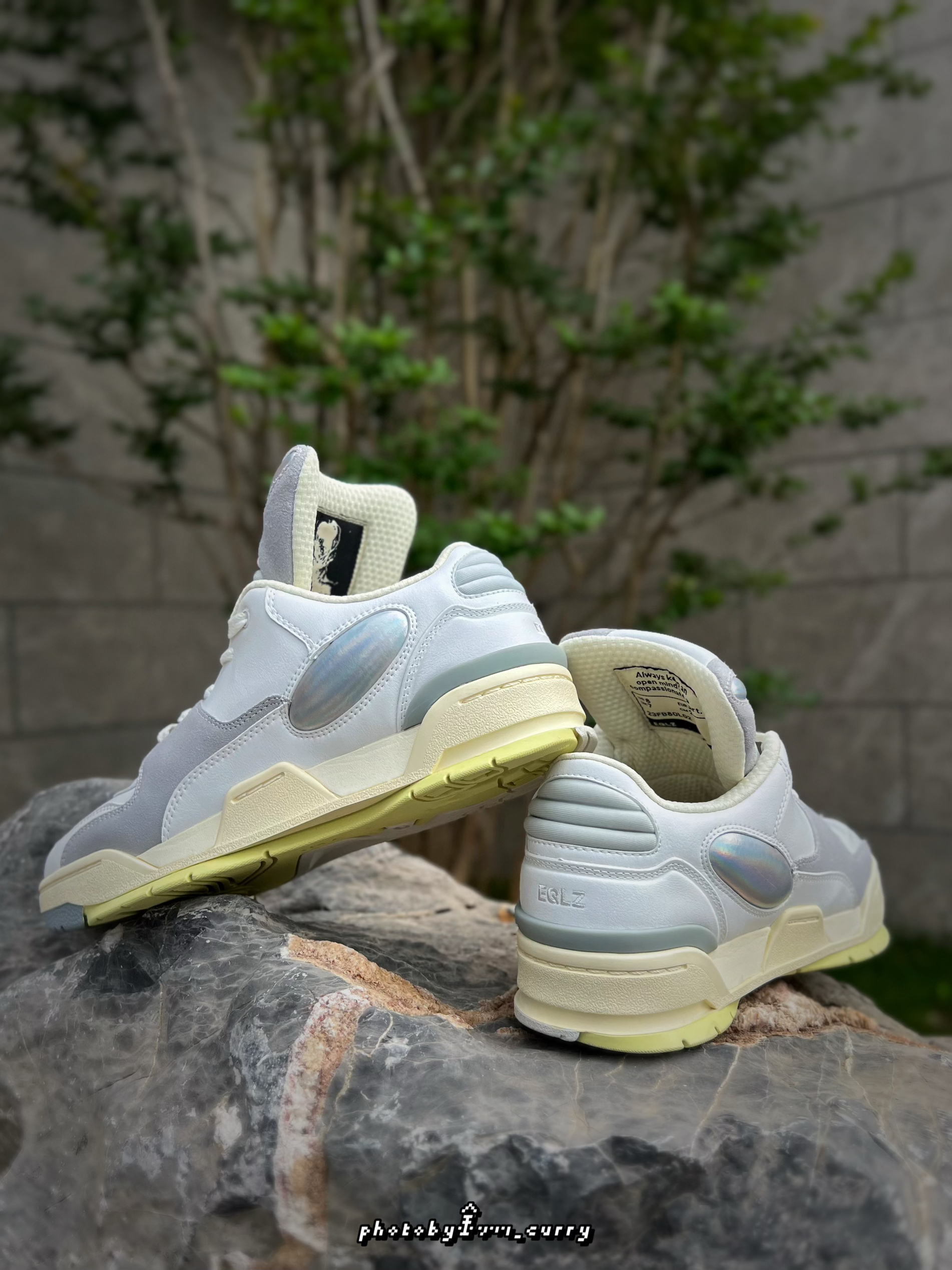 要说创意感还得是EQLZ !之前就有入手过它家的拖鞋及板鞋,其天马行空的想象力真的拿捏住了我的心!这次的1980 Lo当然也不例外,这么有创意的设计实在让人心动不已~ 灰白色的鞋身再加上鞋底一点柠檬黄的点缀,带来十足的复古气息又不失时尚感!最引人注目的还是这超大的鞋舌!上面有着类似于外形生物的小细节!鞋身侧面银色的椭圆蛋按上去软软的,在灯光的照射下还会呈现出炫彩般的效果,实在是吸引眼球! 超长...