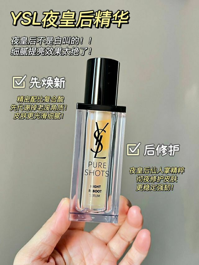 一直好希望能实现YSL夜皇后自由!! 如果你像我一样经常凶猛地熬夜!! 那一定一定#YSL夜皇后精华[话题]# 和#YSL抚纹精华[话题]# 要一起入!!! - 无论用过多少熬夜精华 你皇后还是你皇后!!细腻提亮效果简直绝了! 最大的区别在于先焕新!! 经常熬夜脸都是糙的,精密配比复合酸,先把老废角质代谢掉,吸收通道打开!! 在这基础上,夜皇后仙人掌精萃彻夜去修护皮肤! 你会发现脸上的肉都快细腻的...
