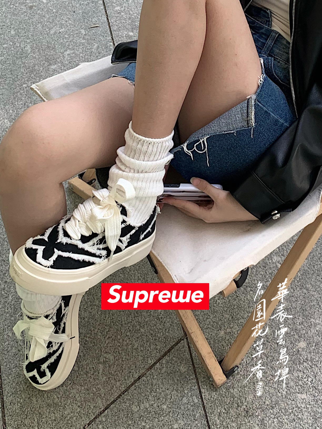 VEEMES x GRKC联名款手工毛边小碎花经典帆布鞋:黑色 毛边很有设计感 鞋码标准 小众又独特 Veemes品牌热销系列 穿搭利器 整个夏天最爱的鞋子单品! 鞋头的蝴蝶结是亮点~超级好看附有设计感 厚底增高 矮个子的姐妹也可以放心冲啦! 买👟认准:VEEMES