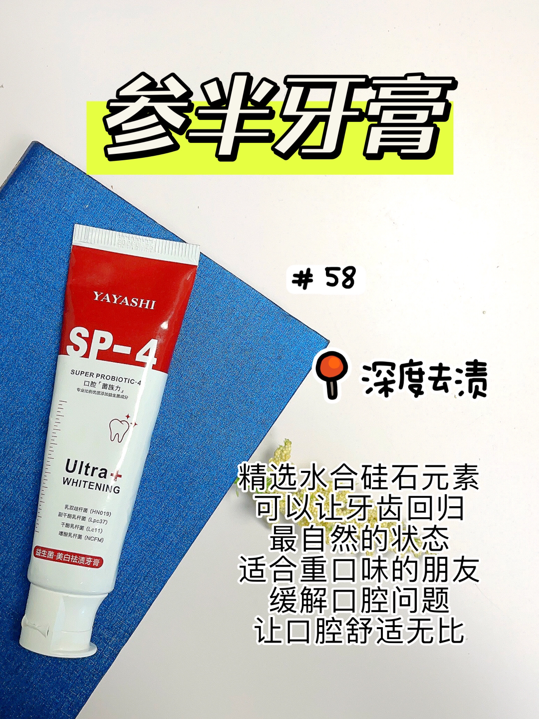 本篇笔记关联了【华晨宇同款】NYSCPS/参半 SP4口腔鲨鱼牙膏 美白清新口气改善口臭 美白、高露洁 红管无水酵素清新口气牙膏 去烟渍深层去黄活性亮白含氟 闪耀亮白101g*1支、狮王 去渍防蛀清新WHITE美白含氟牙膏 去口臭改善牙黄 小苏打葡萄柚等商品,为用户提供真实的使用体验和购买参考。