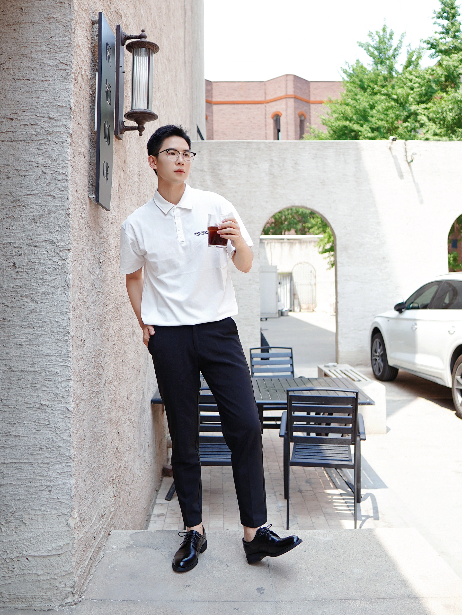 上衣搭配一件休闲Polo衫,裤子穿上黑色西装直筒九分裤,上脚一双黑色小牛皮鞋鞋,戴上书生气质的眼镜,吹爆了这款王源同款朋友们觉得有没有很好看! 我真的太爱这个通勤装了,出门逛街约会旅行都可以穿,朋友们看看效果觉得怎么样吧?