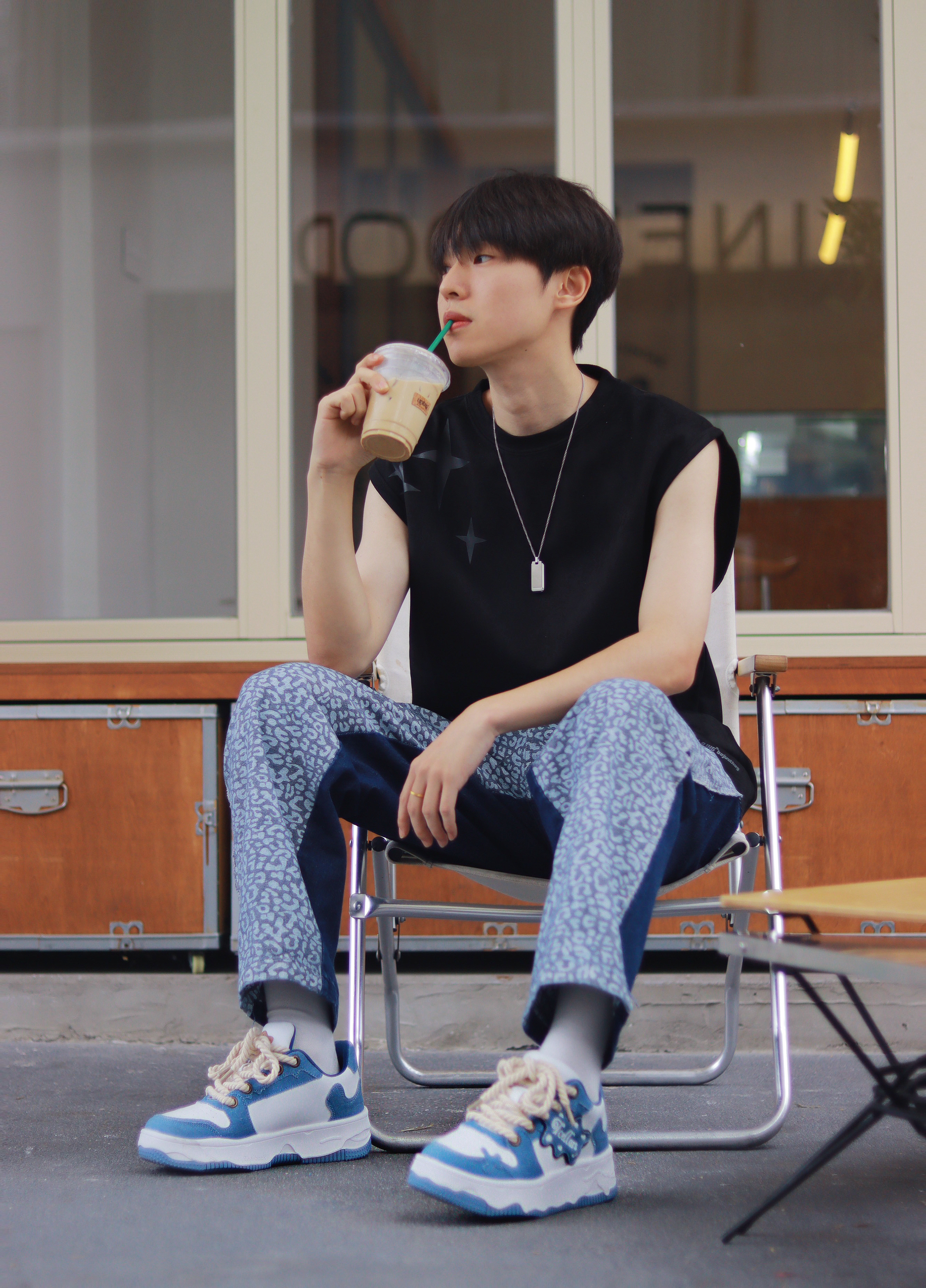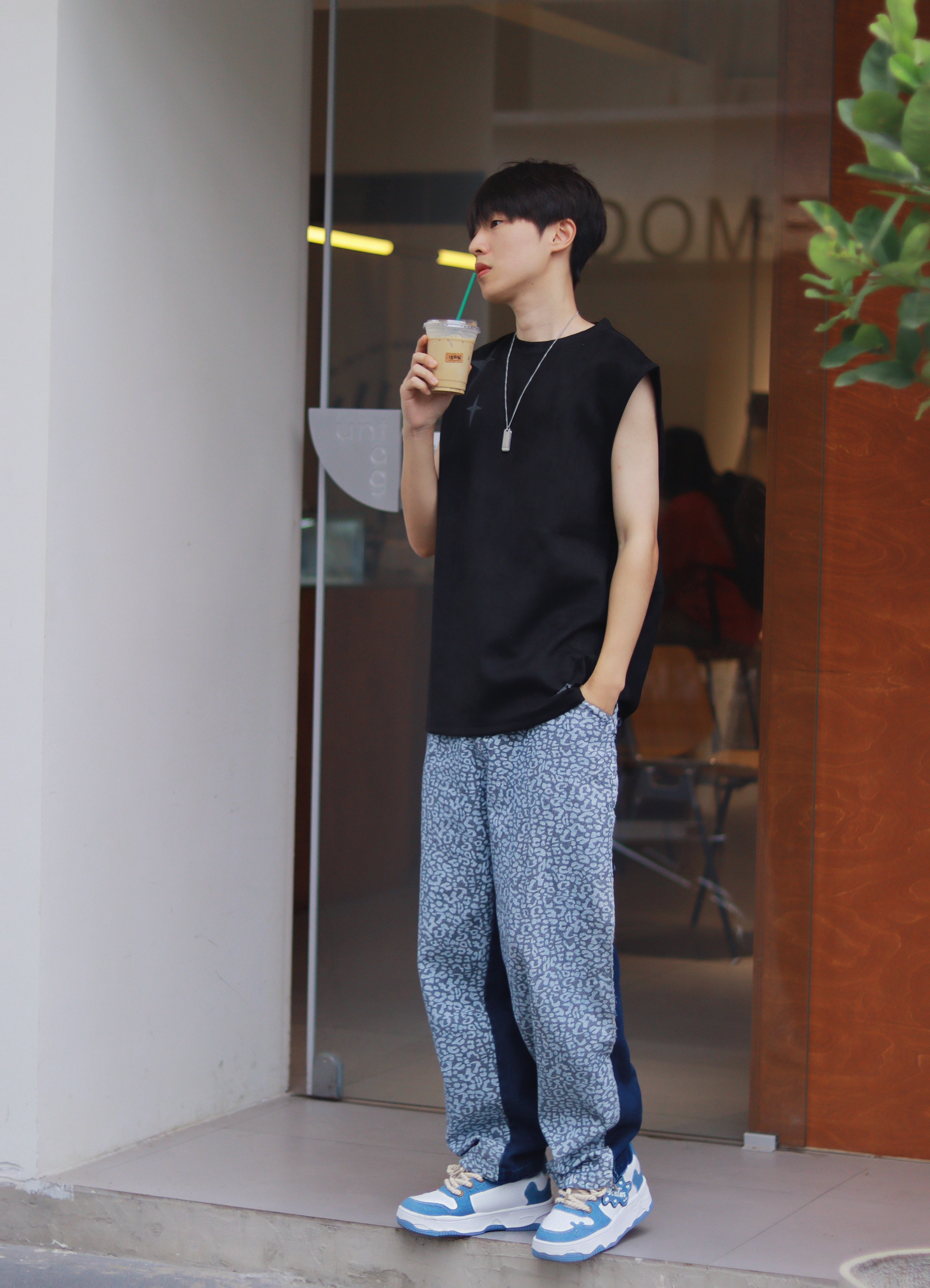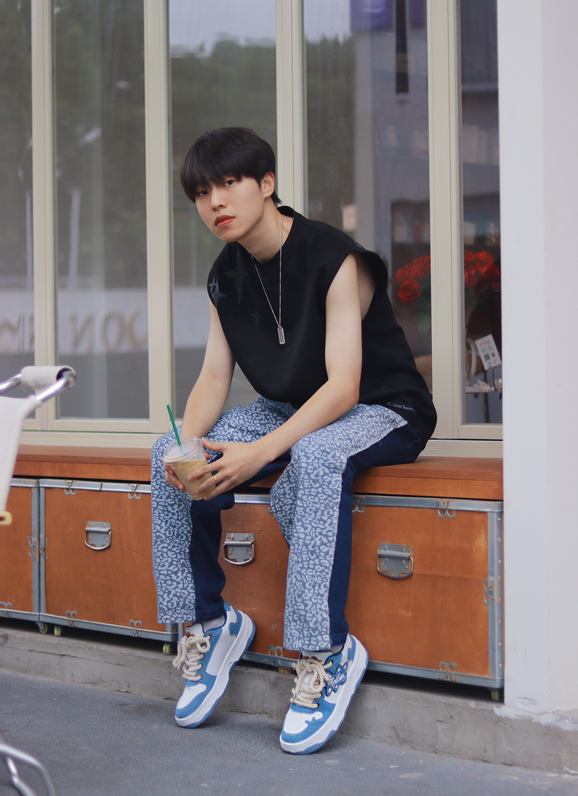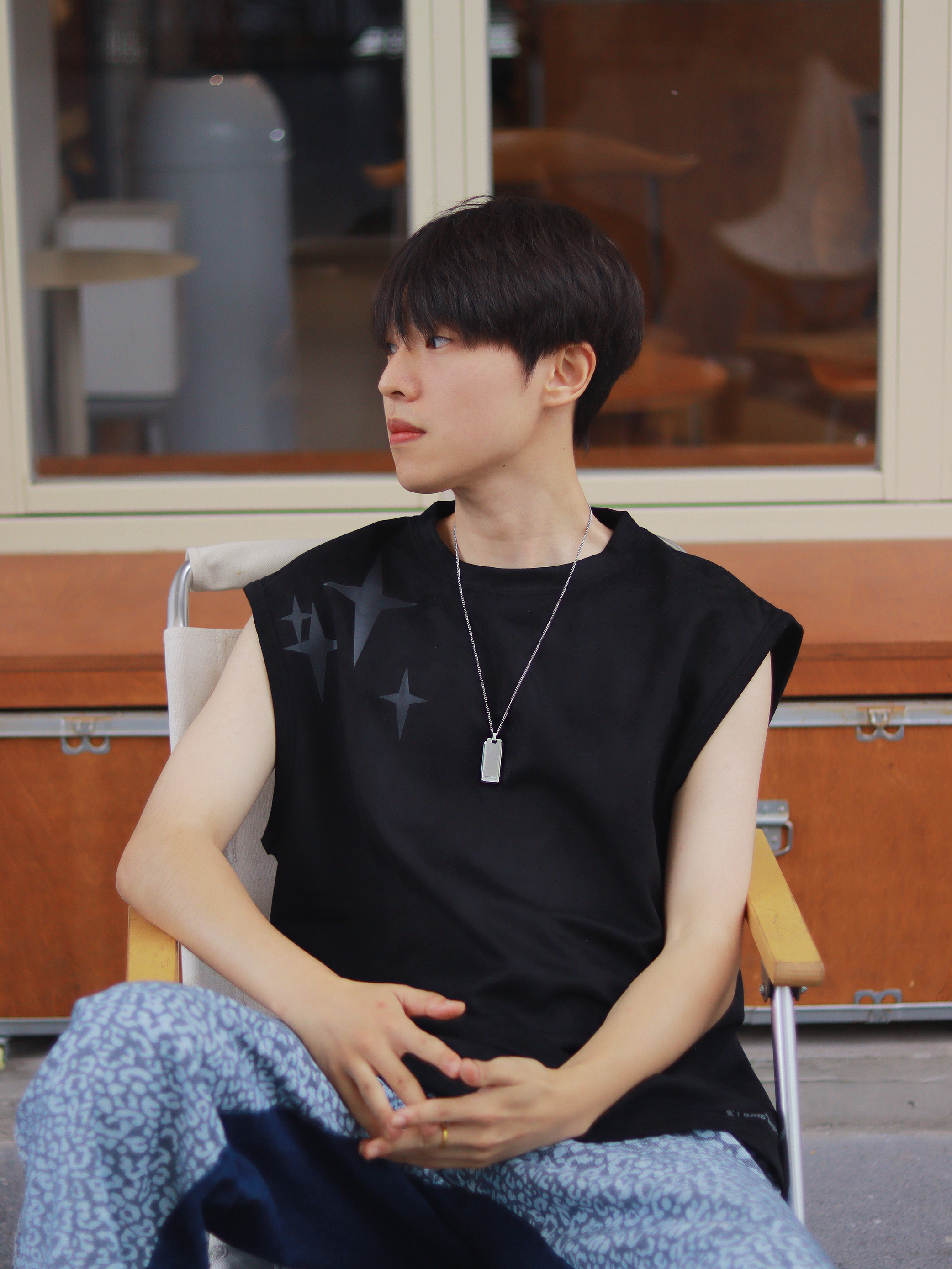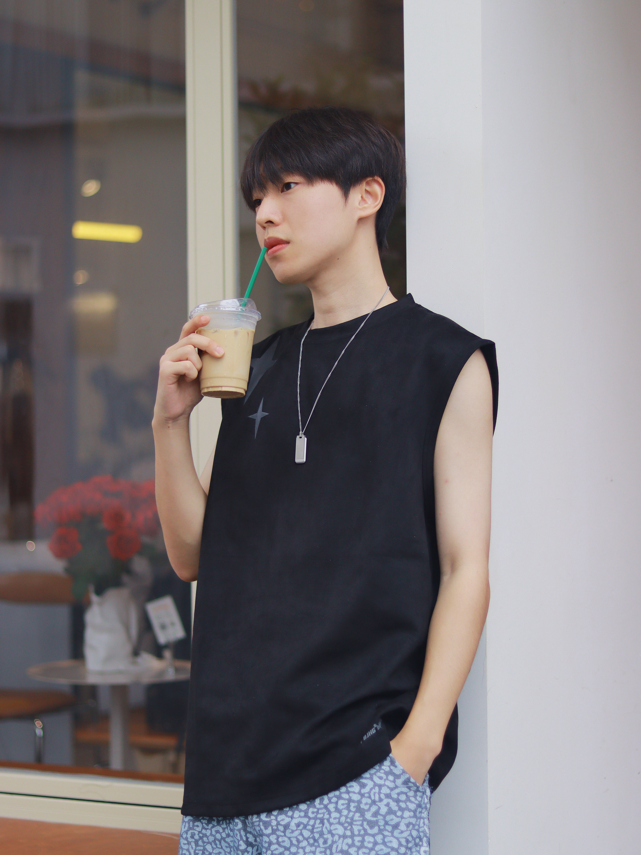 理想中的男友穿搭,我家这位帮你们安排了! 简约的黑色背心搭配潮流牛仔裤,有一种美式街头纯粹的高级感。 不过为了避免单一感,搭配了一条ck银色吊坠项链,千净简约的小10g0,不会显的特别复杂!在日常搭配很有轻奢的质感,也比较百搭! 🔗:ck 👟: tcellars 👔:bjhg