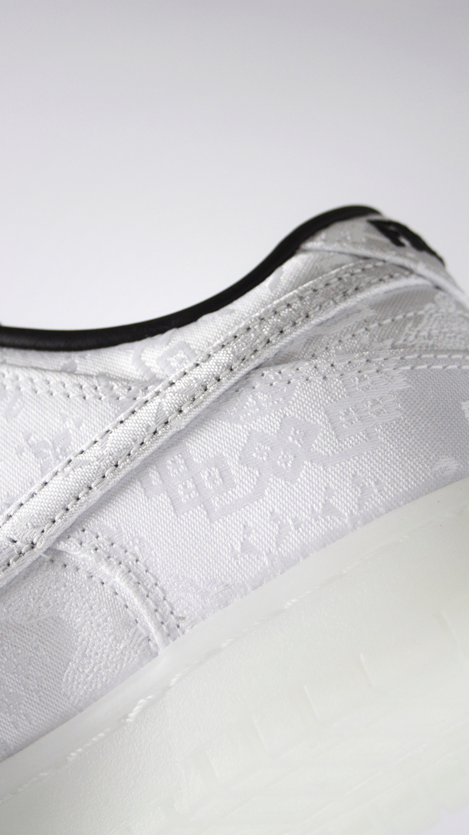 四十四,十是十… 这次的白丝绸回归可以说出乎意料,但现在回归,对于喜欢丝绸的人来说,也算是一件好事。在大热的Dunk上做文章,白丝绸➕三方联名,Nike总不能一直看着陈冠希联名的鞋子进奥莱吧。现在的价格又不会炒的过于离谱,2开的价格还算可以接受。 这次丝绸底下不是镭射的花纹了,取而代之的是三方联名的刺绣Logo。 还有一点想说,20周年有20周年的图案,印在鞋盒上是很容易,但鞋子上的丝绸为啥...